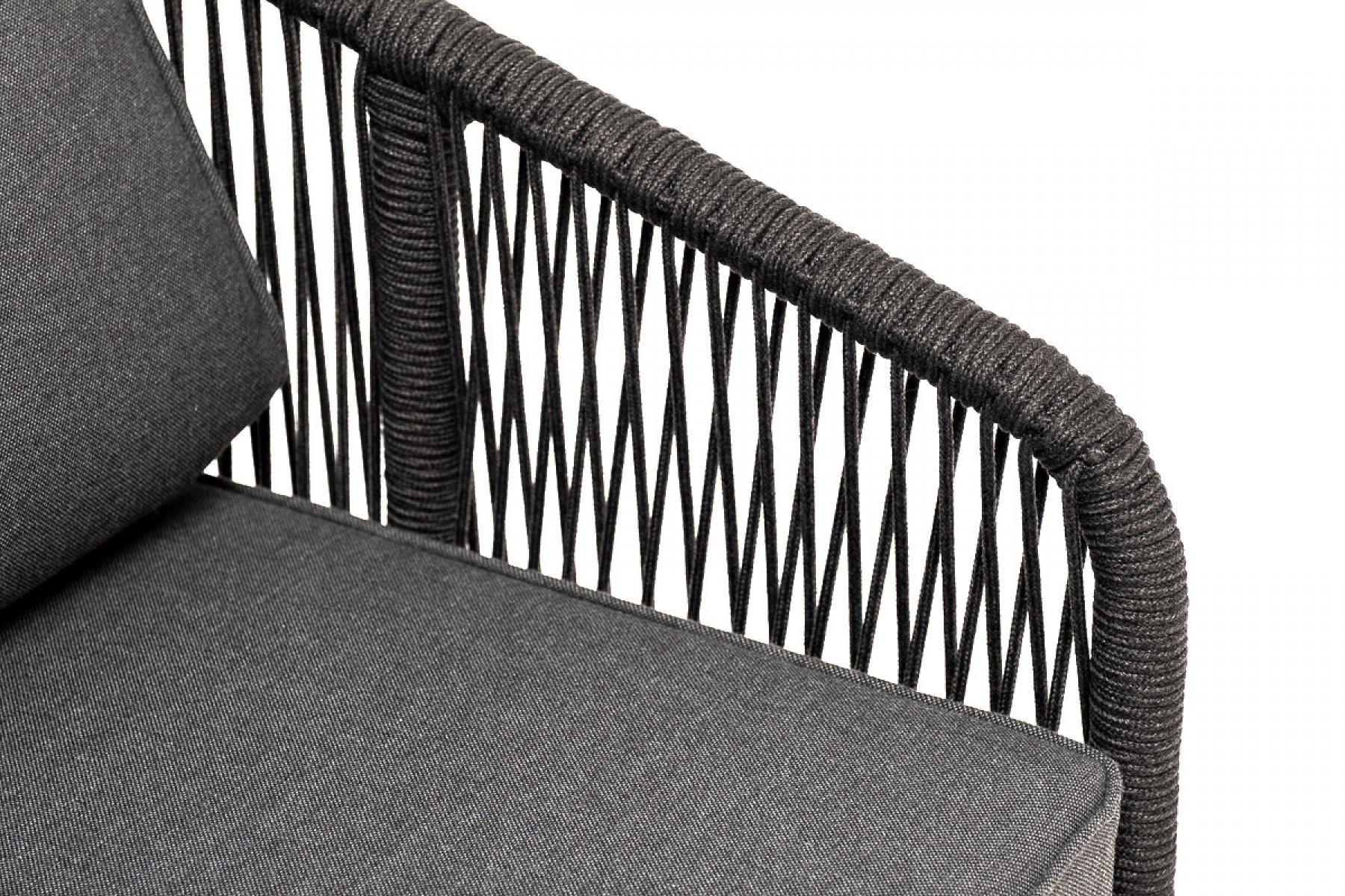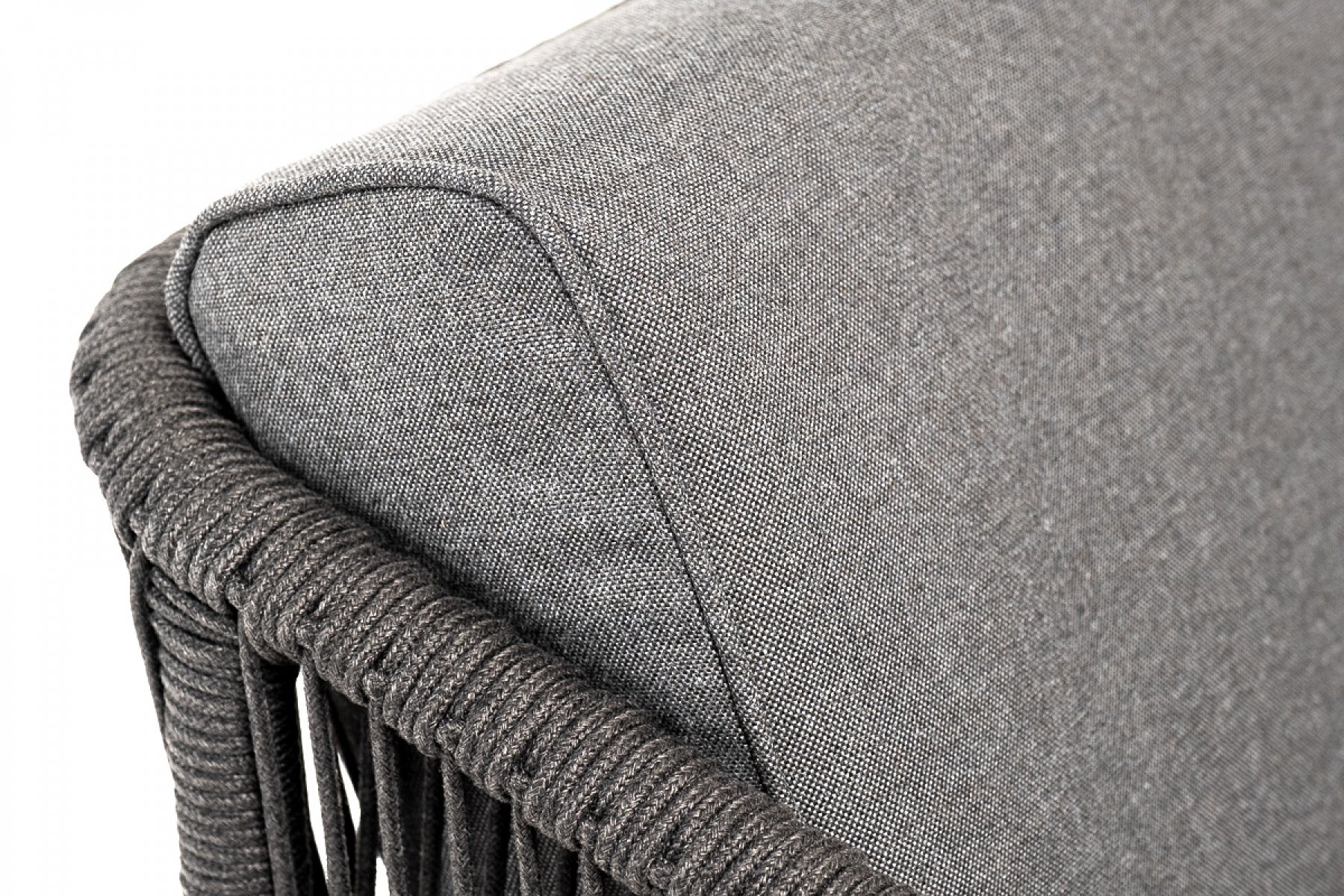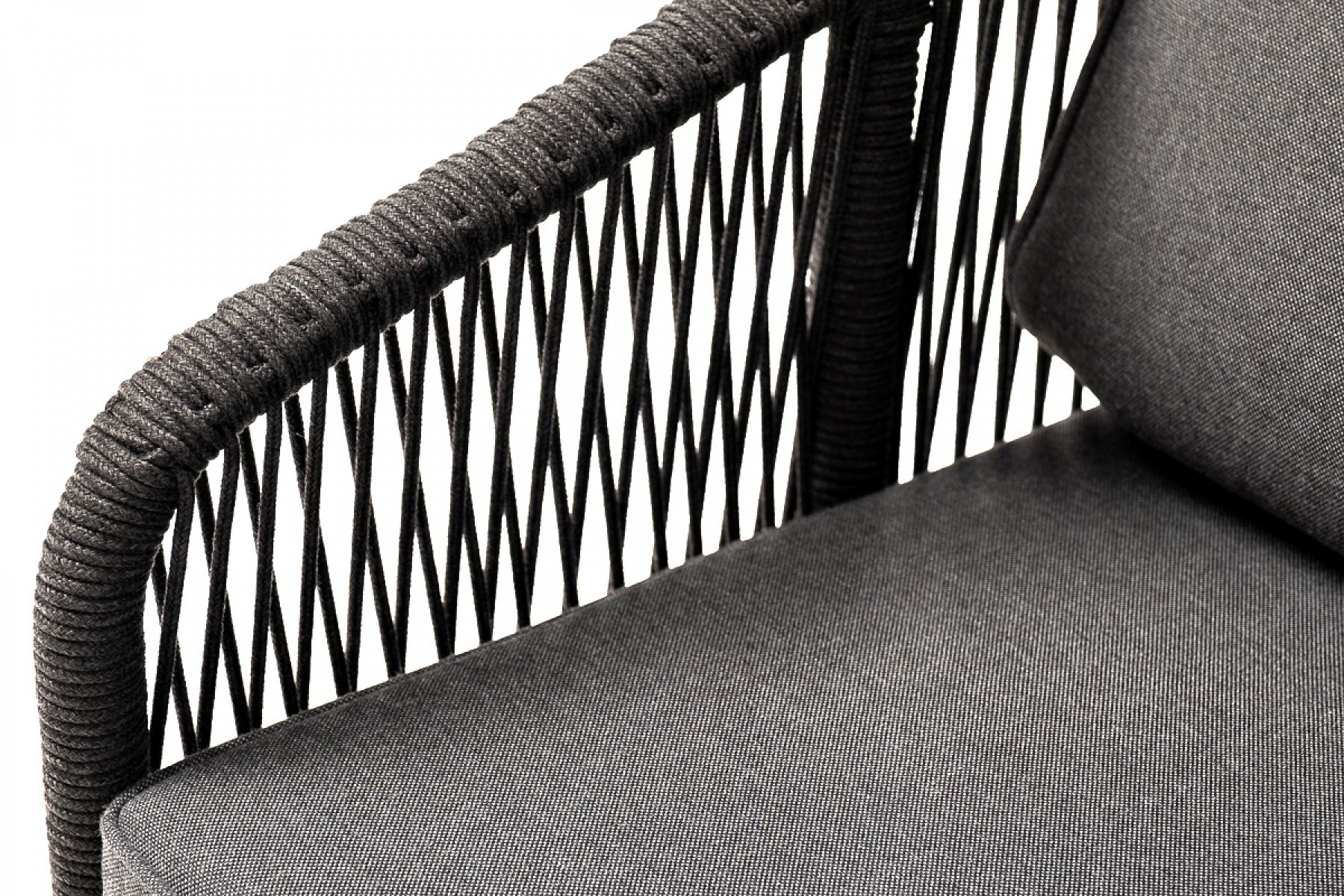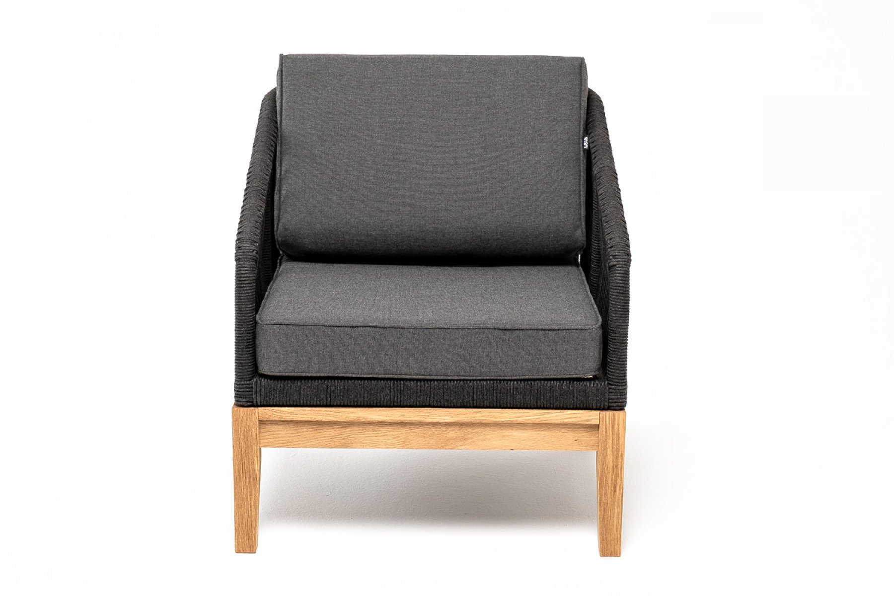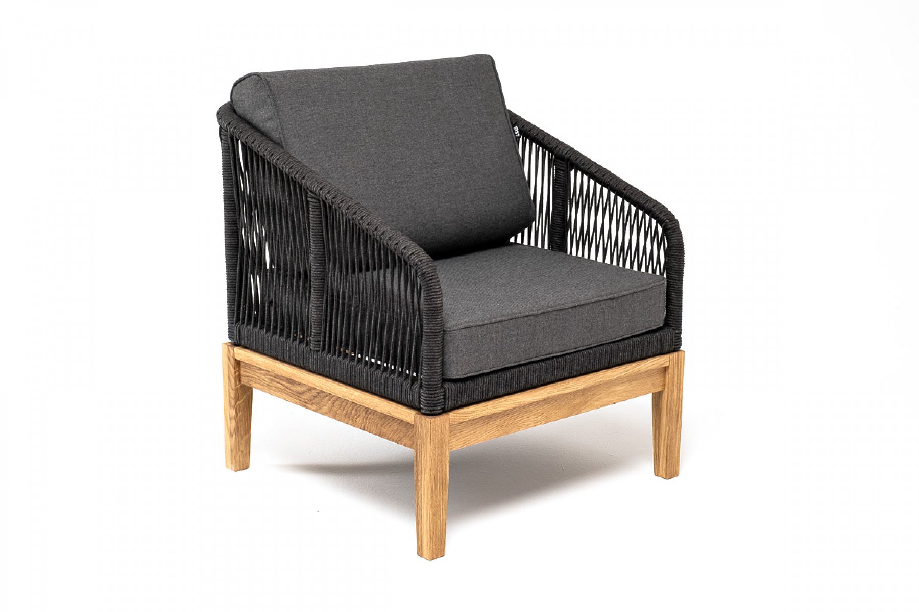 "Канны" кресло плетеное из роупа, основание дуб, роуп темно-серый круглый, ткань темно-серая 027