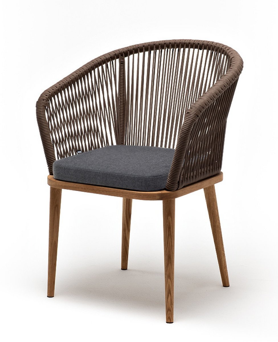 "Марсель" стул плетеный из роупа, основание дуб, роуп коричневый круглый, ткань темно-серая 027