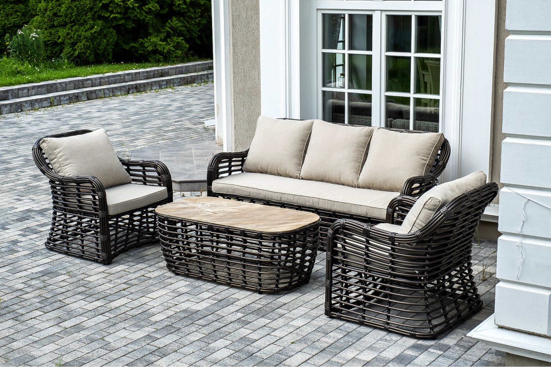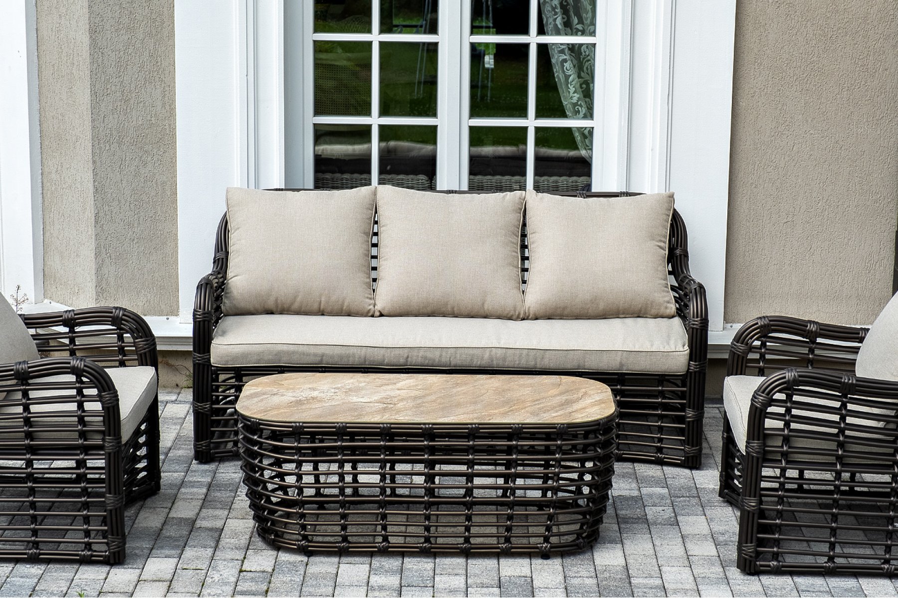 Журнальный столик выполне "Ницца" журнальный столик из искусственного ротанга, цвет бронзовый 1шт. 1 200Х600Х450, "Ницца" диван из искусственного ротанга трехместный, цвет бронзовый 1шт. 1 810Х850Х870, "Ницца" кресло из искусственного ротанга, цвет бронзовый 2шт. 770Х850Х870,