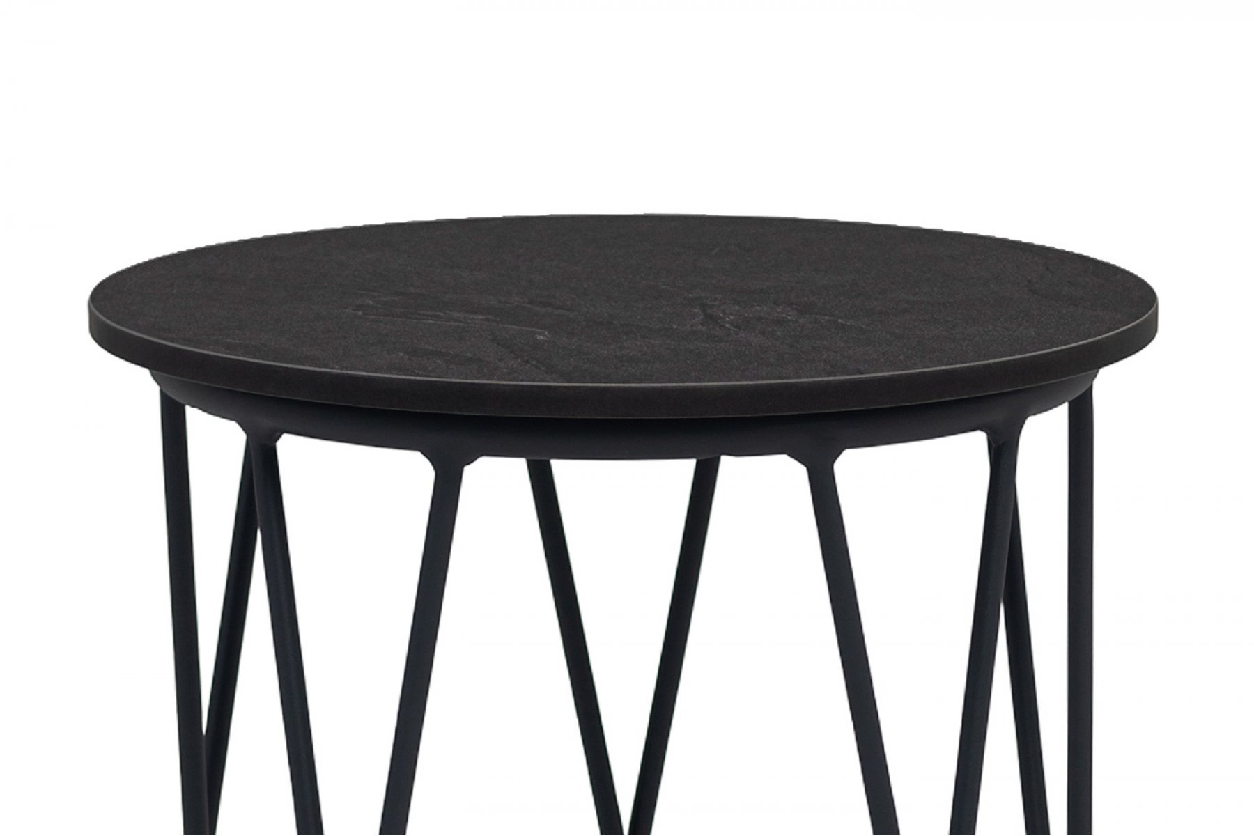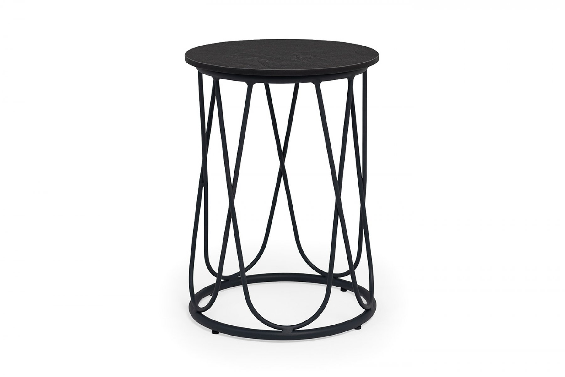 "Перу" журнальный стол из HPL круглый Ø40 H55, каркас из алюминия темно-серый (RAL 7024) муар, цвет столешницы "дуб"
