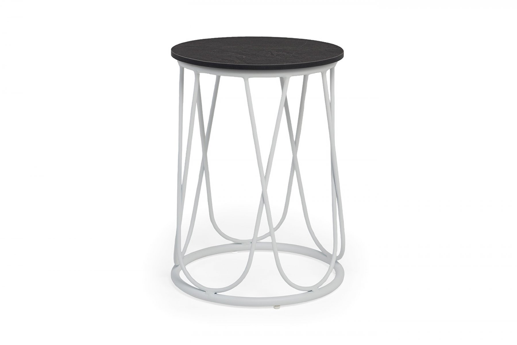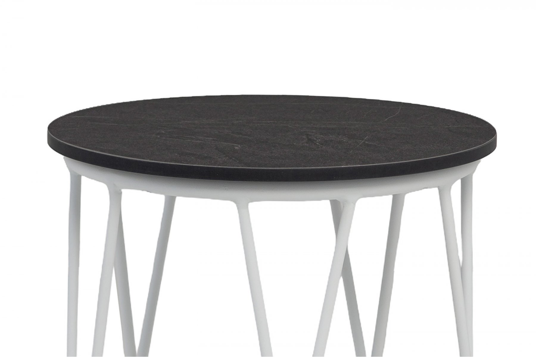 Круглый журнальный столик «Перу» каркас изготовлен из стали, окрашенного в белый цвет. Столешница выполнена из высококачественного монолитного компакт-пластика HPL, толщиной 12 мм. Цвет столешницы - «серый мрамор».