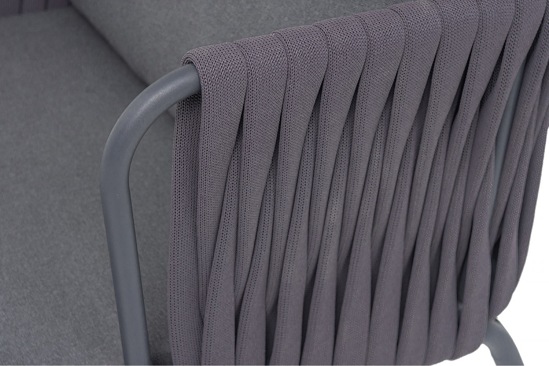 "Ронда" кресло плетеное из роупа, каркас алюминий темно-серый (RAL7024) муар, роуп серый 40 мм tex, ткань темно-серая 027