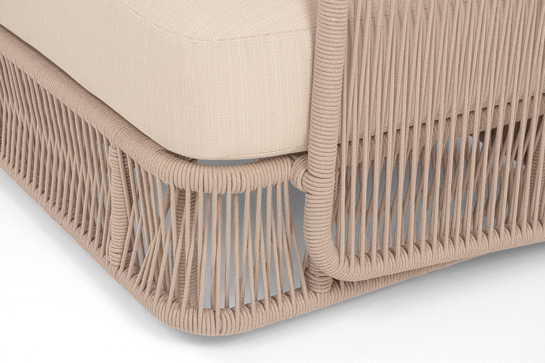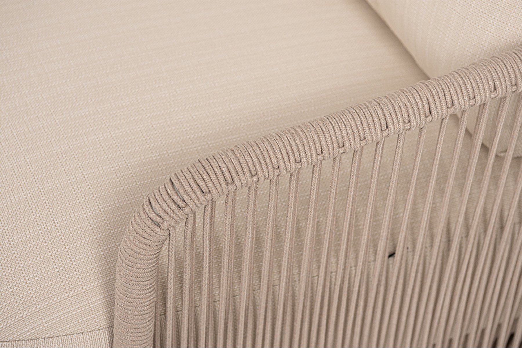"Альбано" диван 3-местный плетеный из роупа, каркас алюминий светло-серый (RAL7035) муар, роуп бежевый круглый, ткань Mossle светло-бежевая