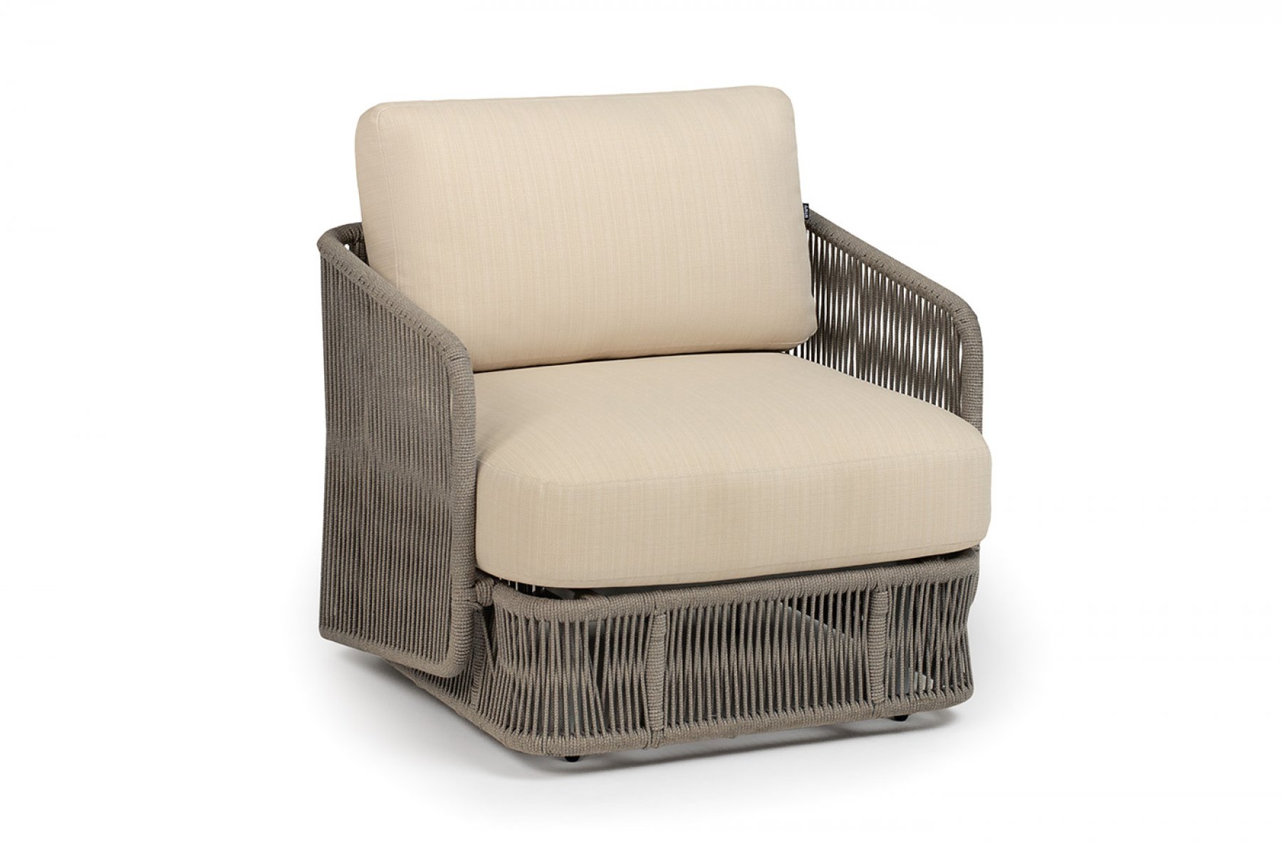 "Альбано" кресло плетеное из роупа, каркас алюминий светло-серый (RAL7035) муар, роуп серый меланж круглый, ткань Mossle светло-бежевая