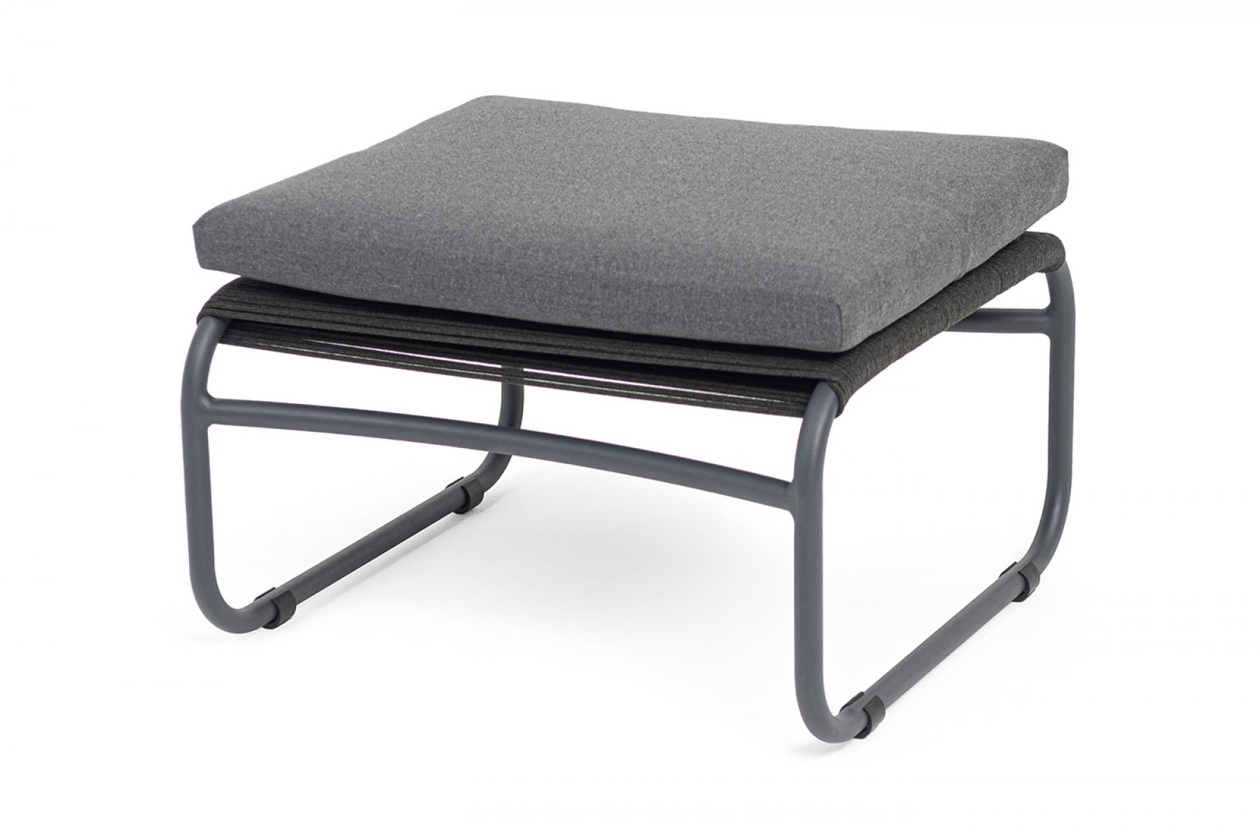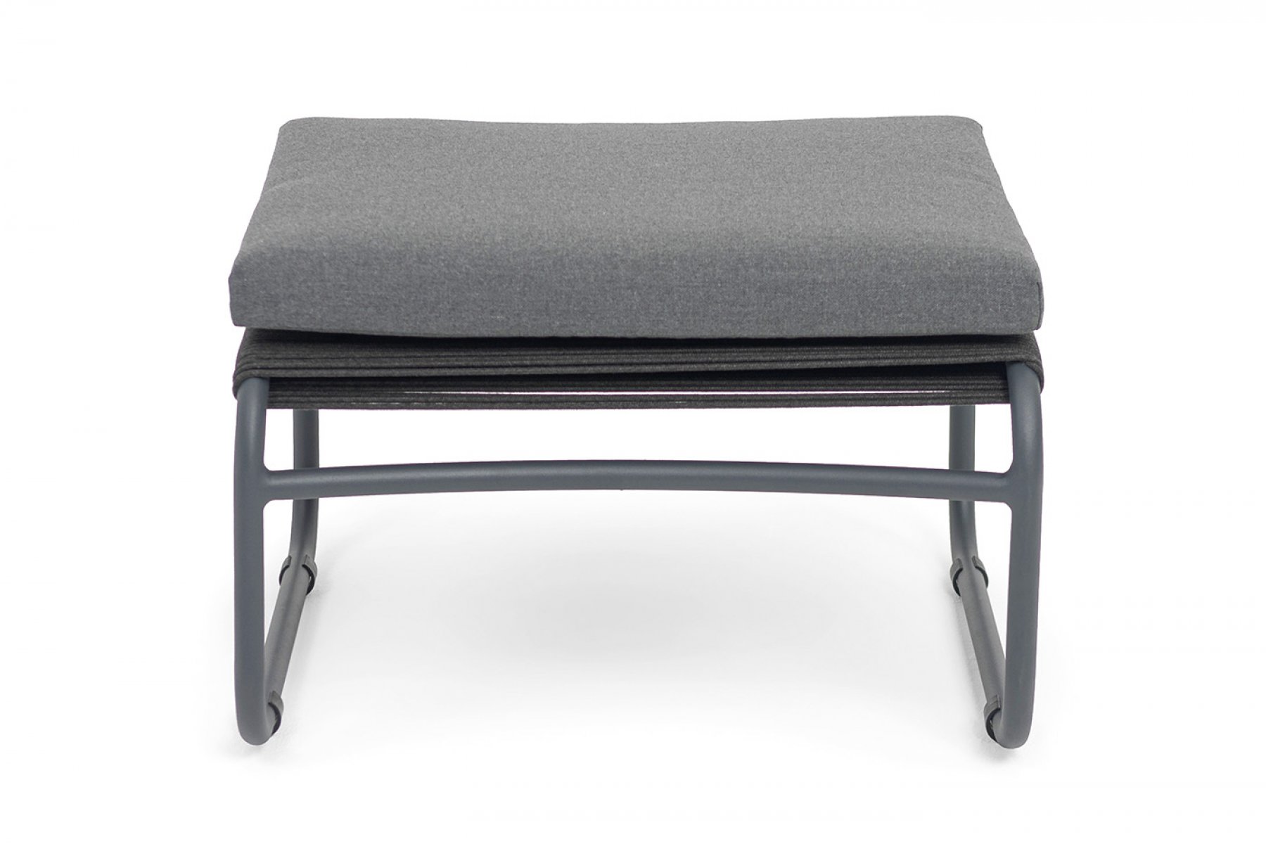 "Ането" пуф плетеный из роупа, каркас алюминий темно-серый (RAL7024) муар, роуп темно-серый круглый