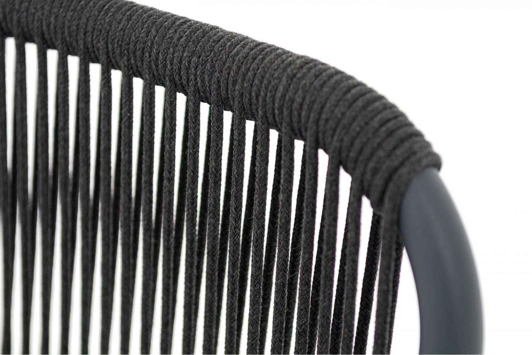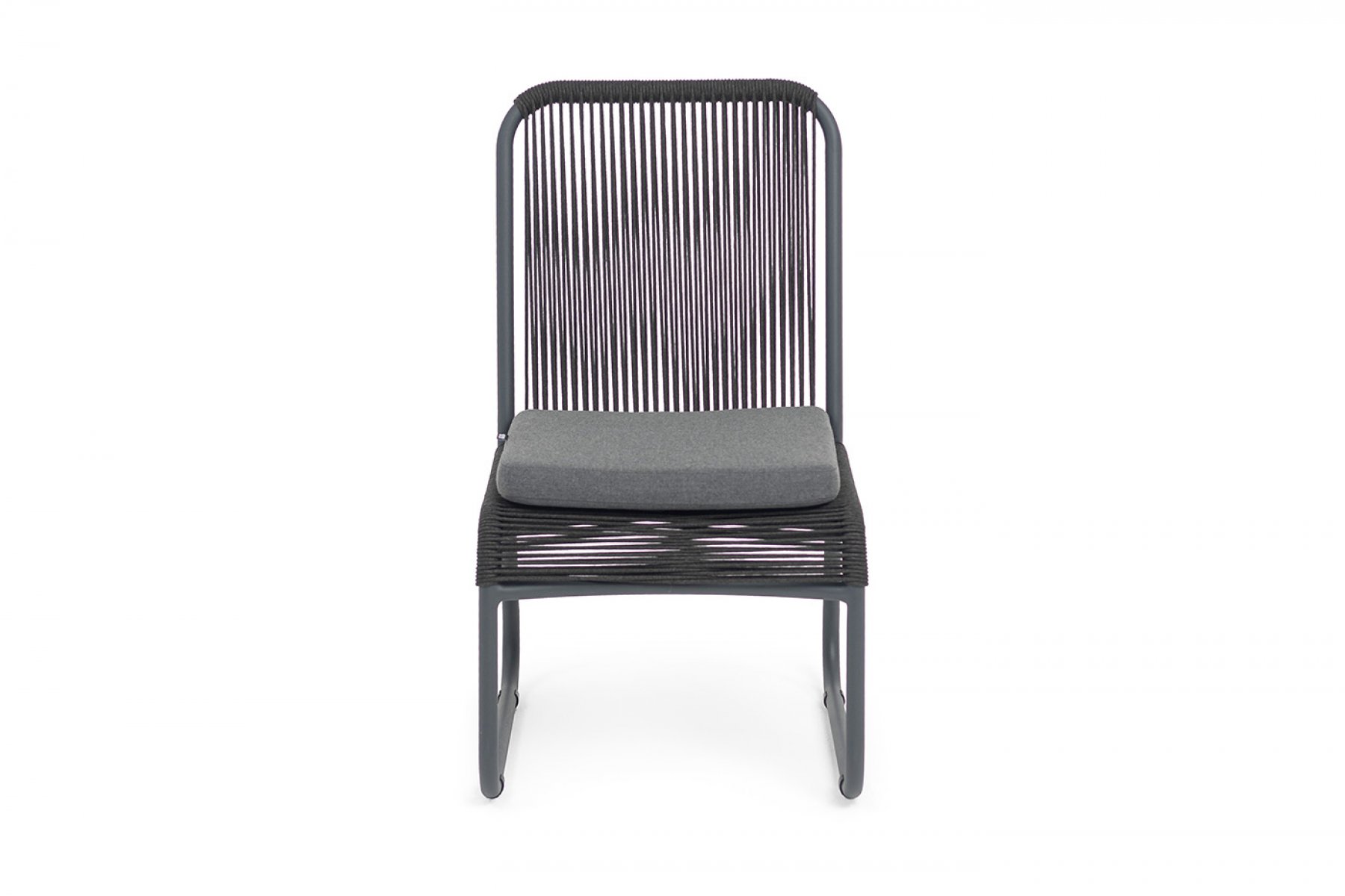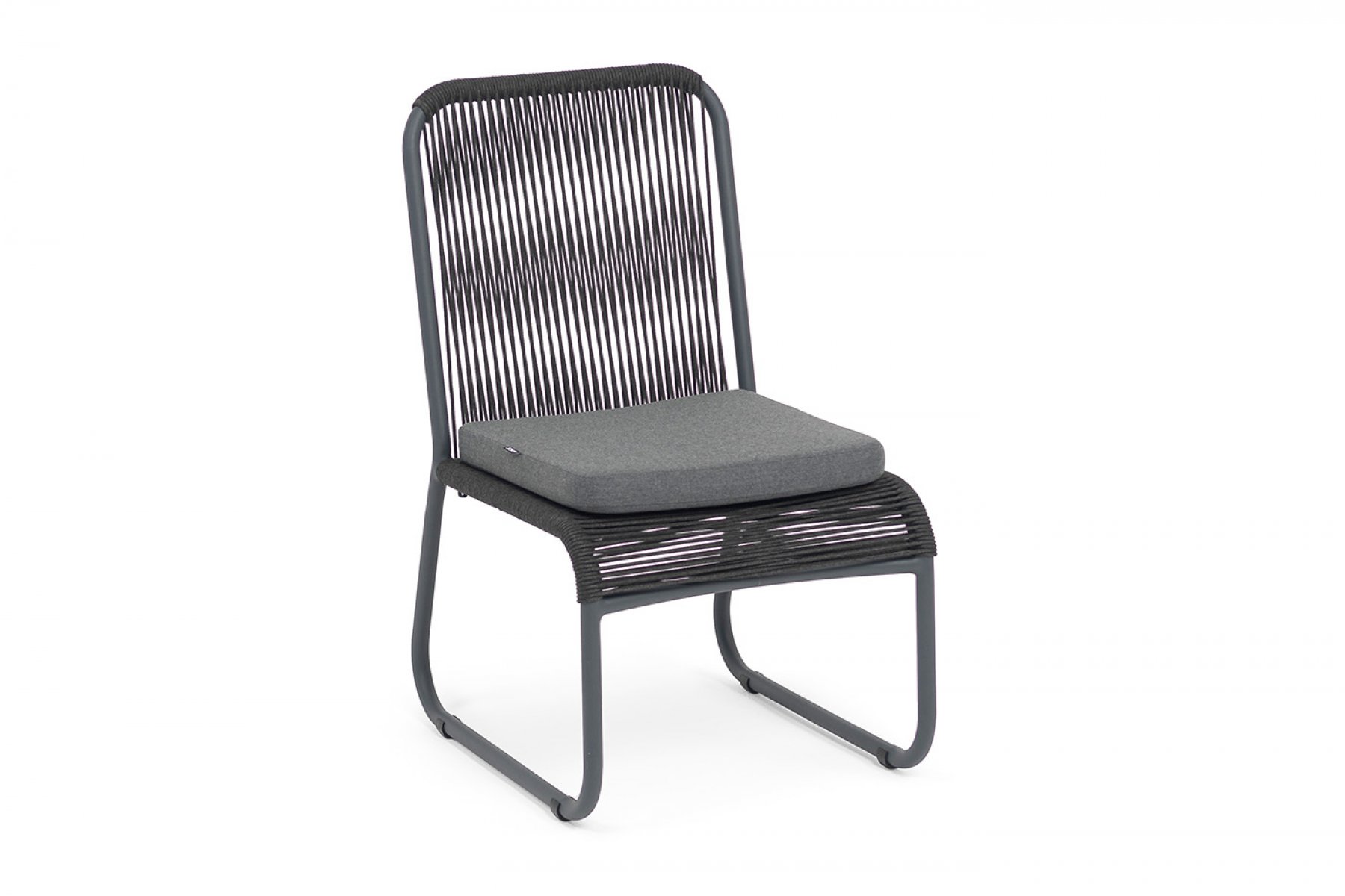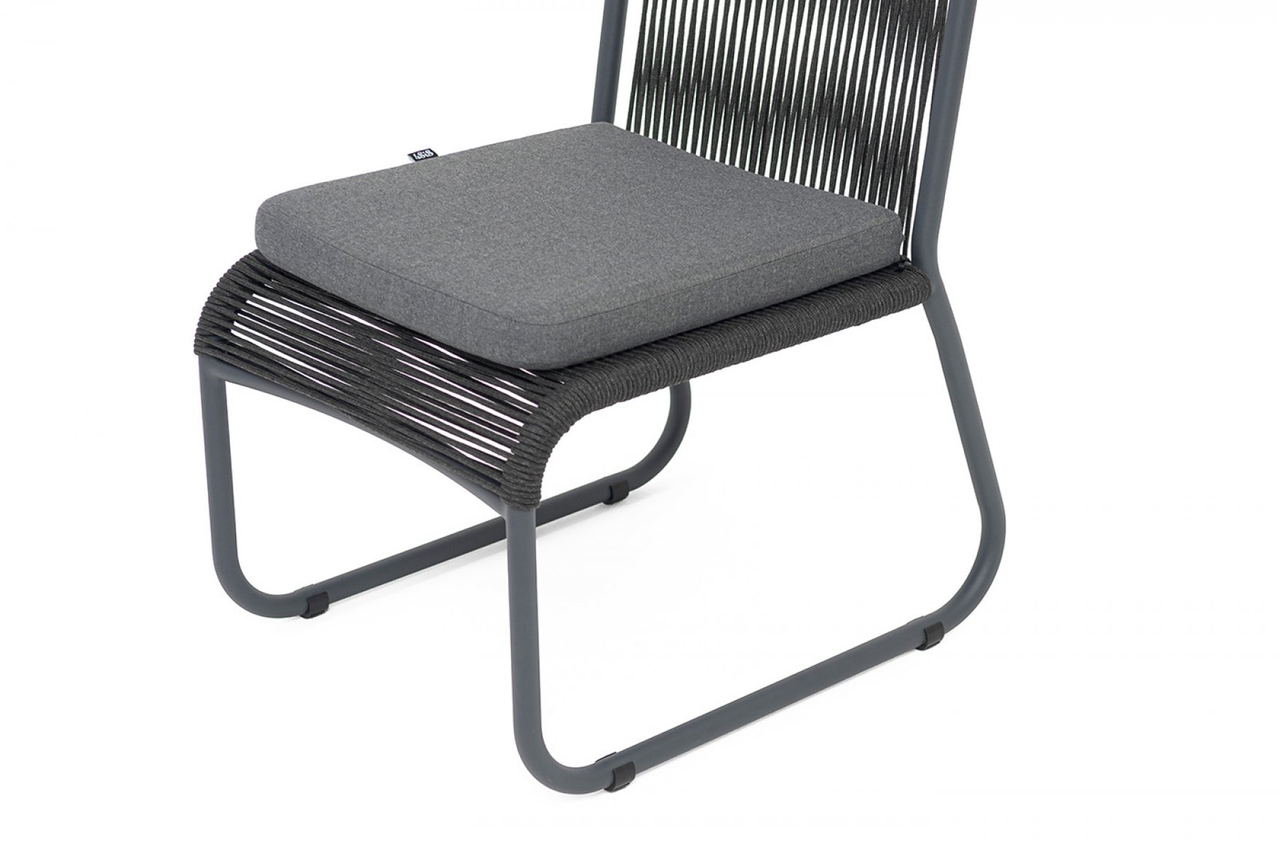 "Ането" стул плетеный из роупа, каркас алюминий темно-серый (RAL7024) муар, роуп темно-серый круглый, ткань темно-серая 027