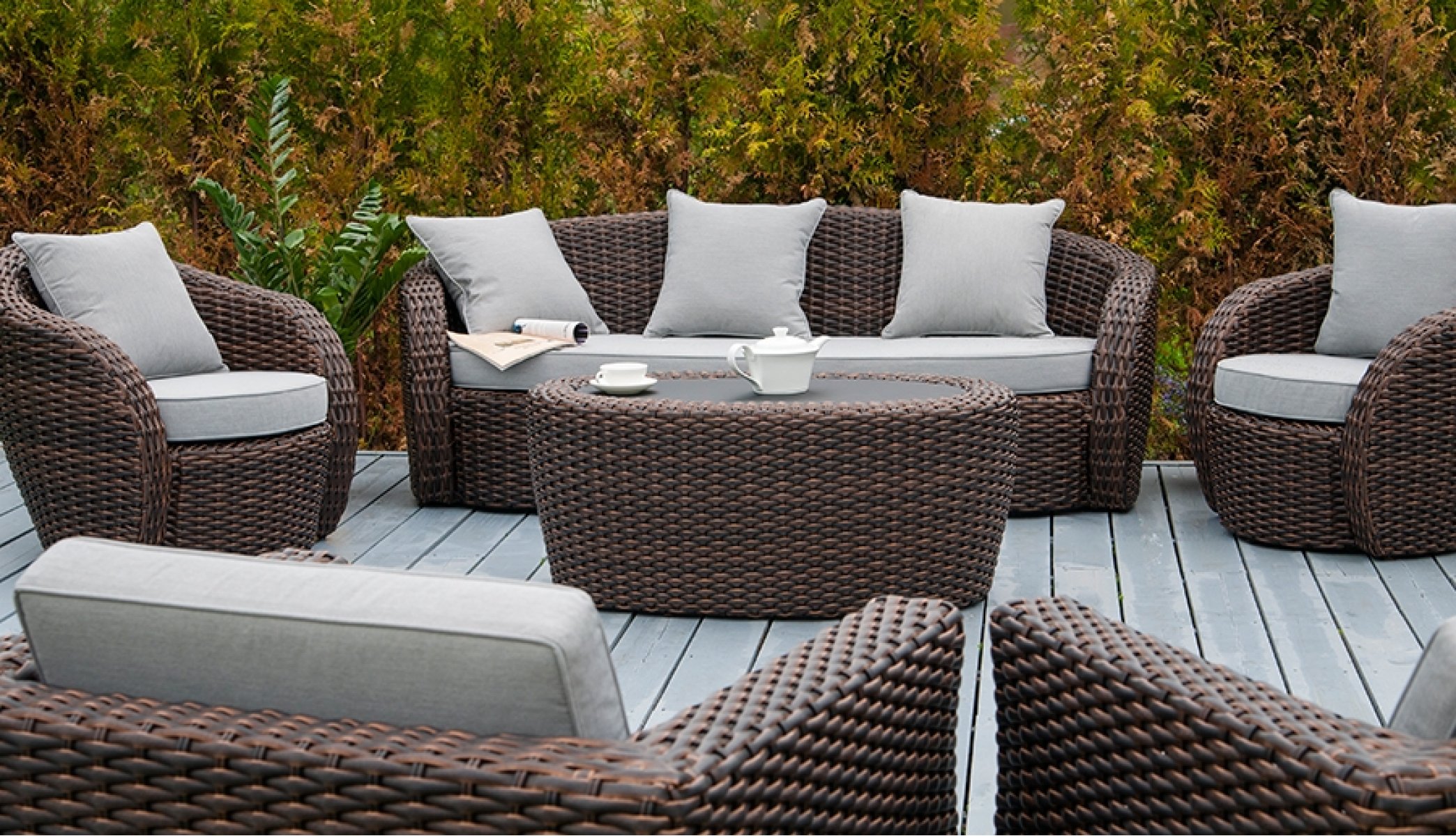 - Подушки выполнены из водостойкой полиэфирной ткани для защиты мебели от дождя и солнца