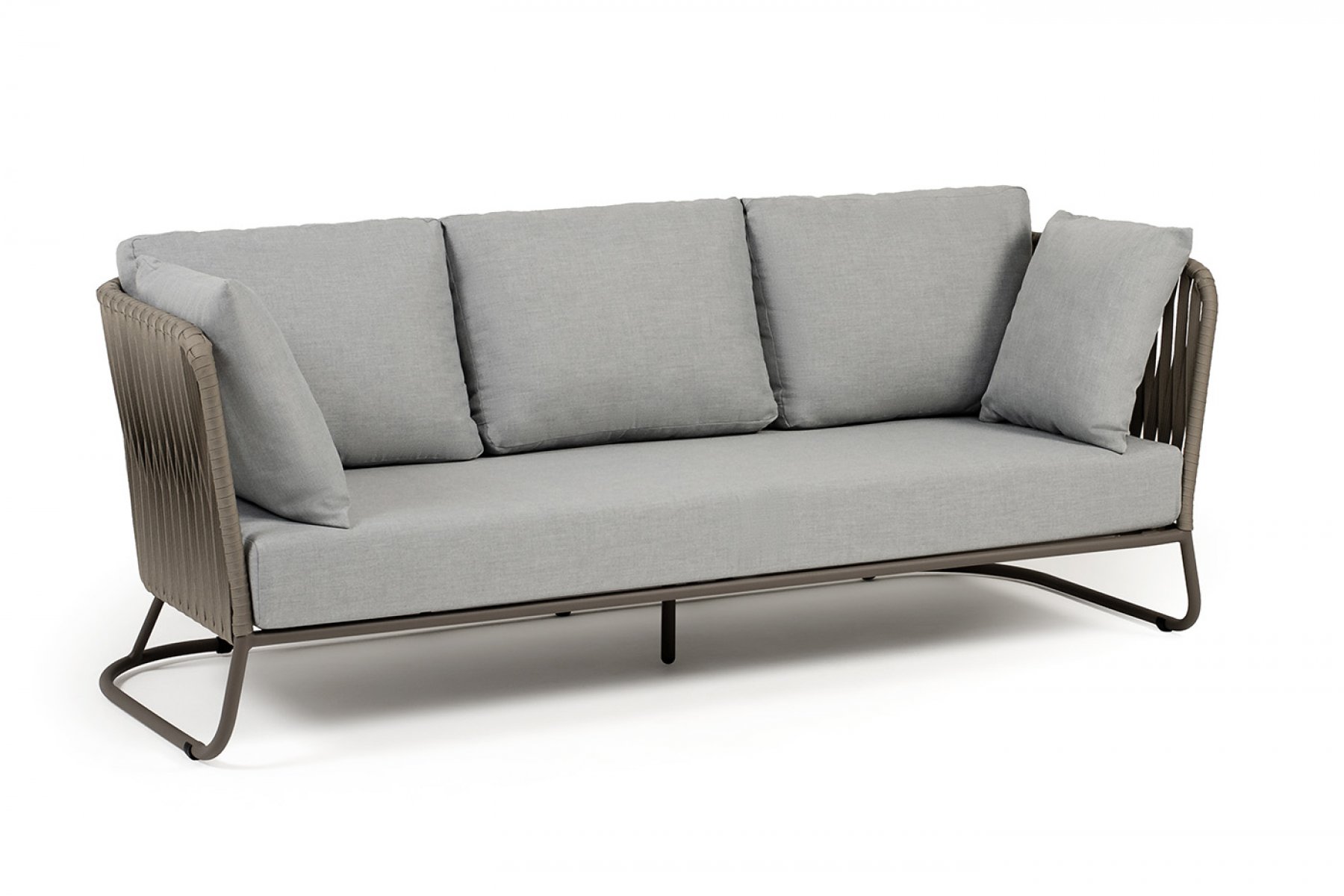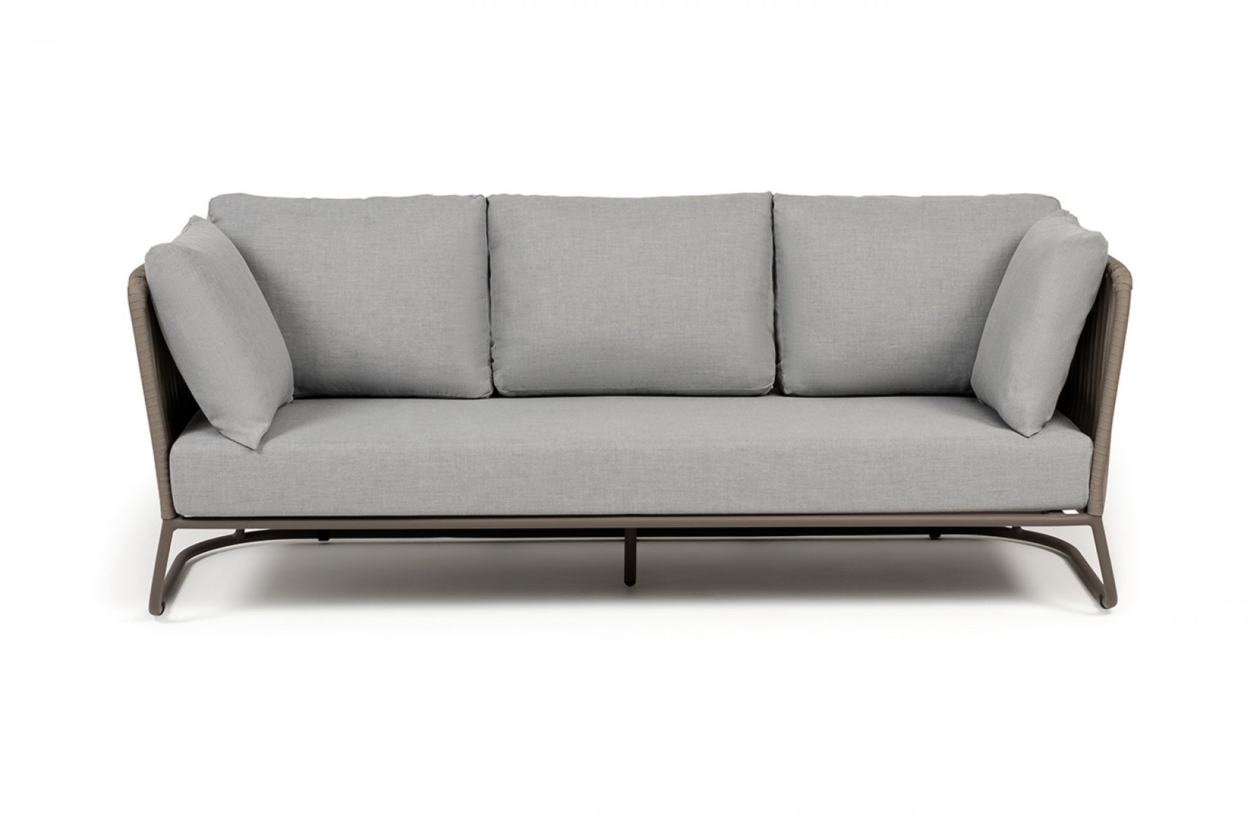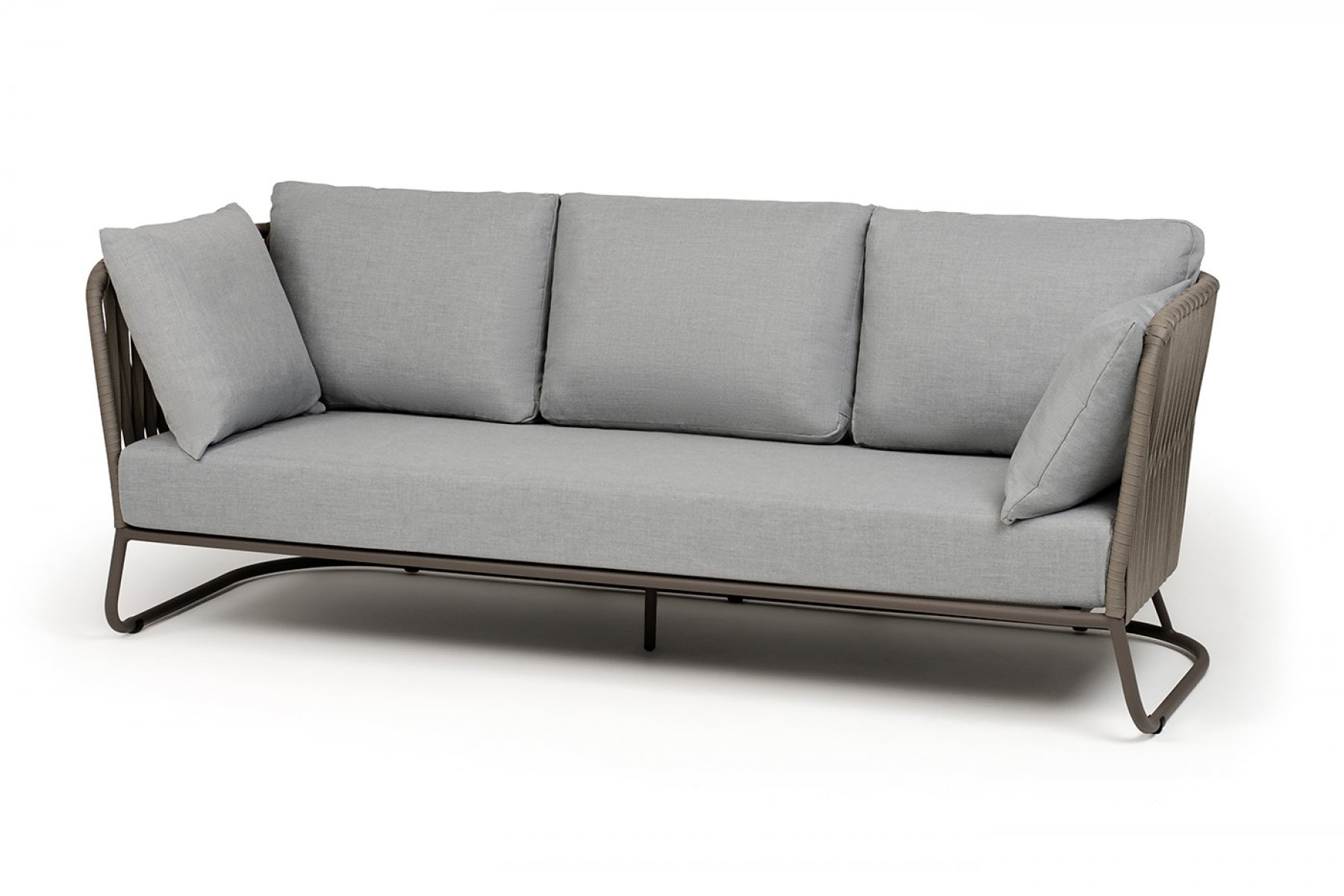 "Багамы" диван 3-местный плетеный из роупа, каркас алюминий бежево-серый (RAL7006) муар, роуп серо-коричневый 23мм, ткань светло-серая
