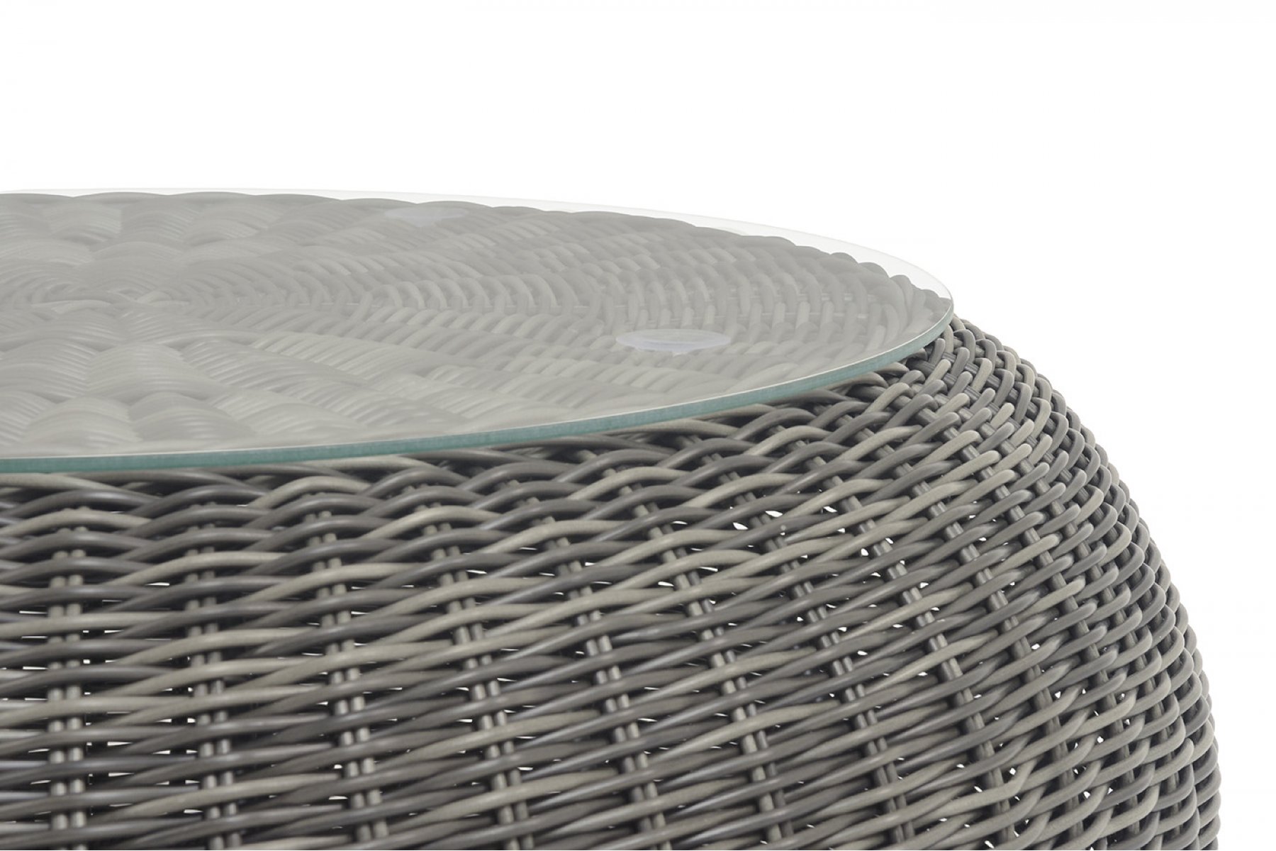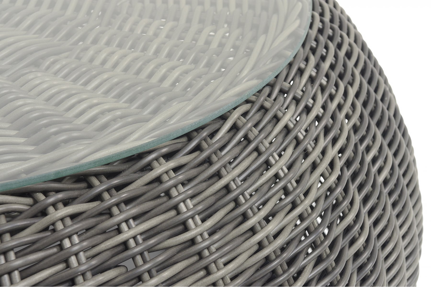 Каркас столика изготовлен из алюминия, вручную оплетенного круглым искусственным ротангом.