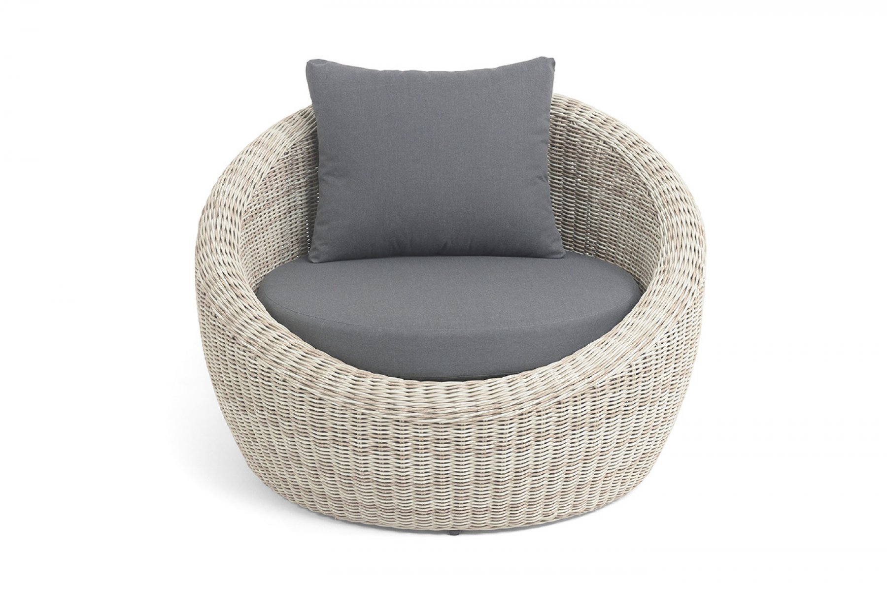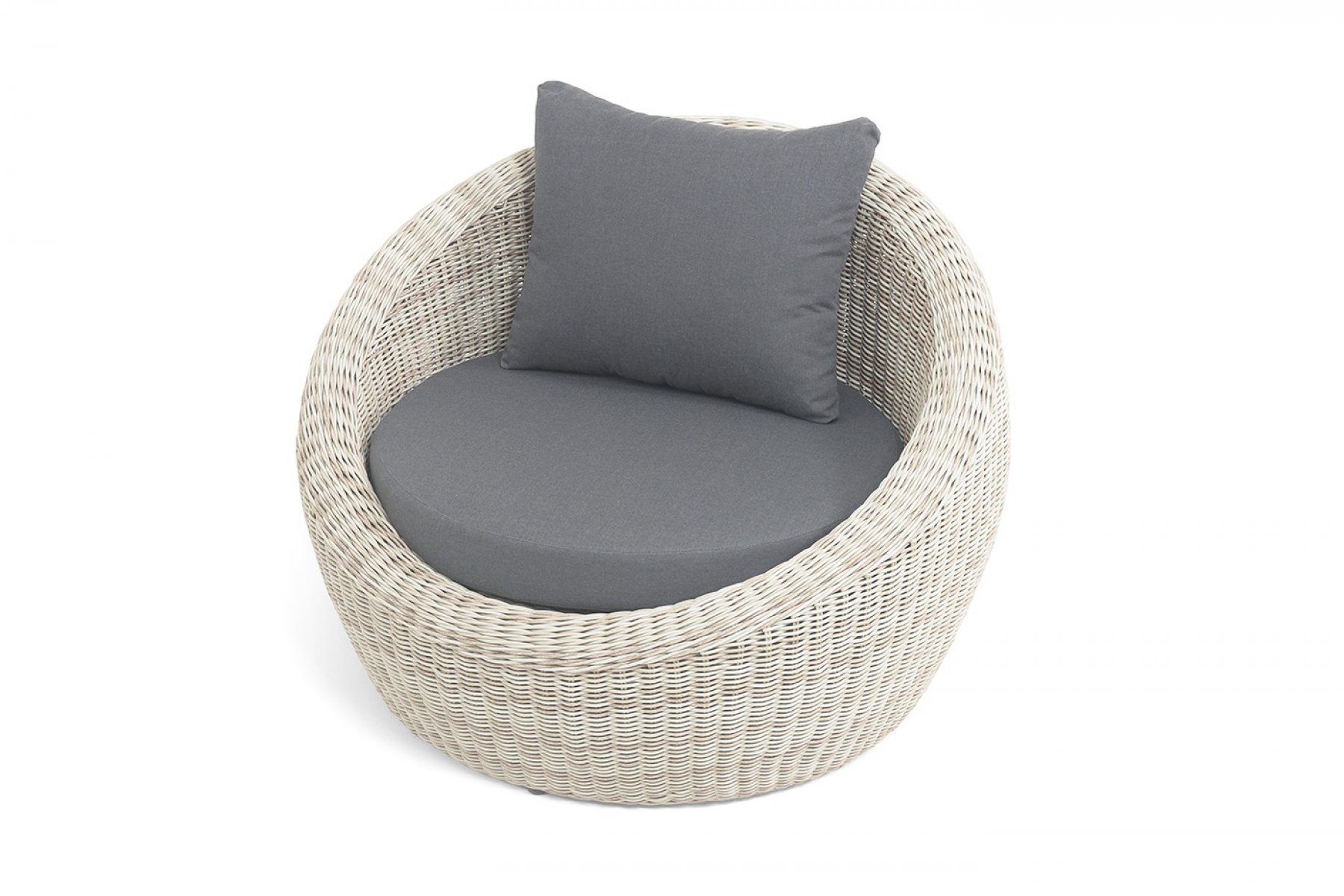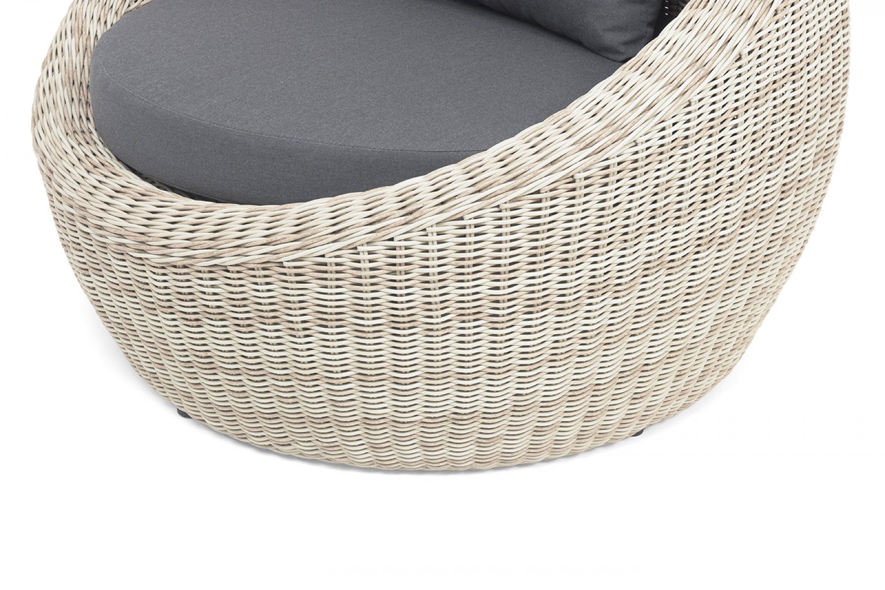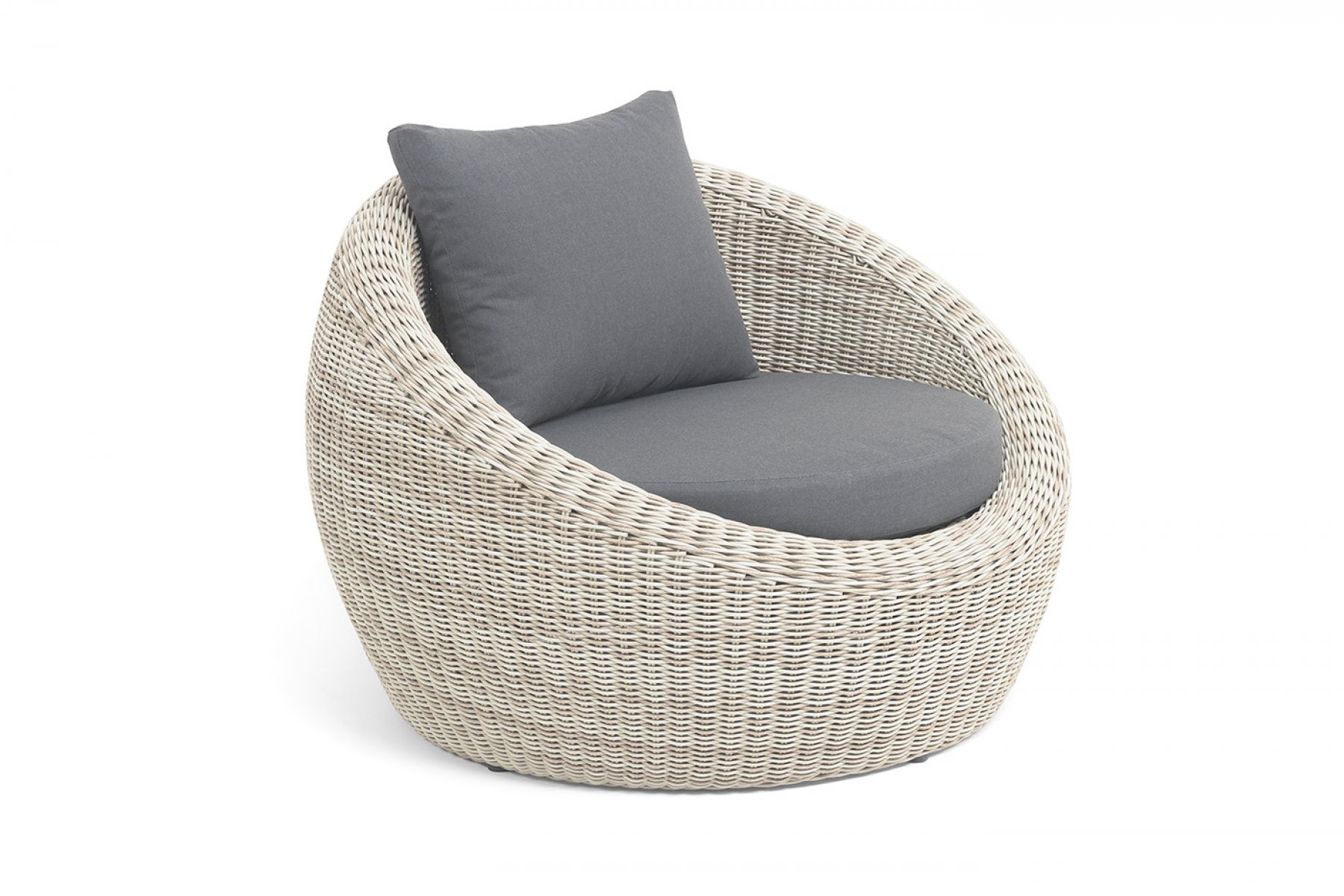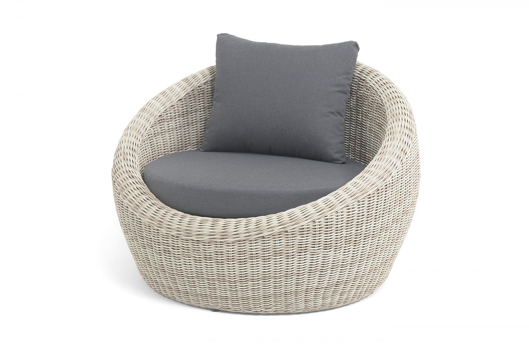 В комплекте с уличным ротанговым креслом идут мягкие подушки со съёмными чехлами серого оттенка.