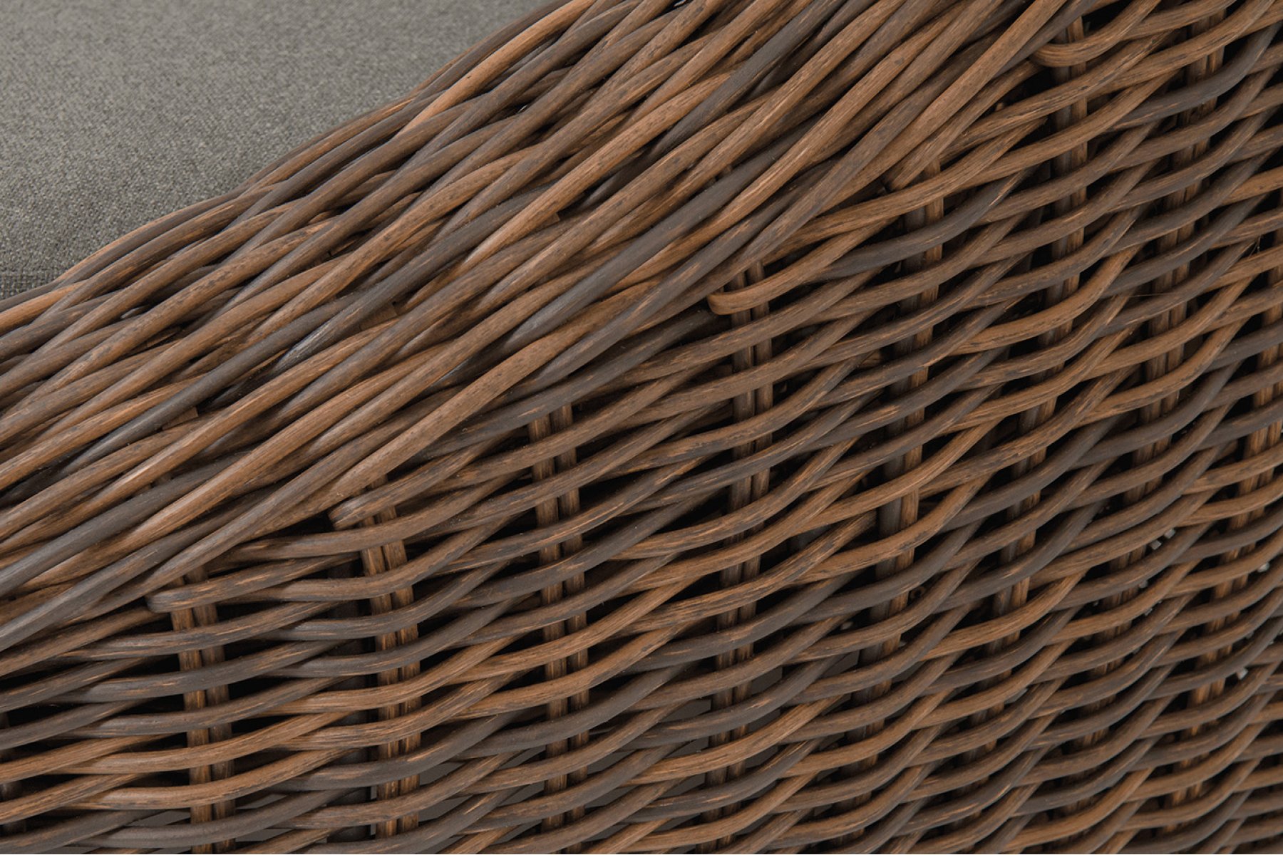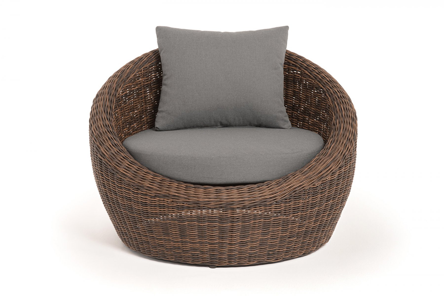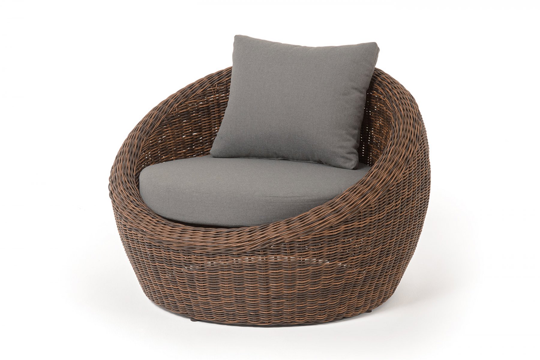 В комплекте с уличным ротанговым креслом идут мягкие подушки со съёмными чехлами серого оттенк
