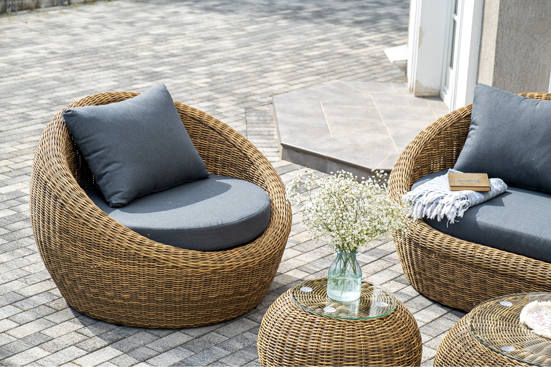 Комплект «Барселона» с плетением из искусственного круглого ротанга для обустройства лаунж-зоны.