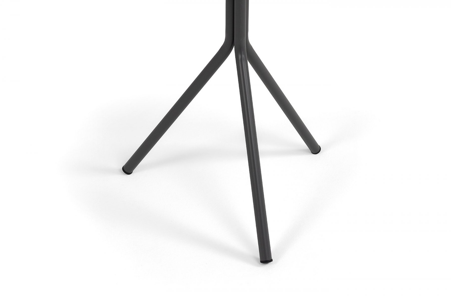 Стол круглый изготовлен из стали черного цвета, столешница - толщиной 18 мм, цвет темно-серый.