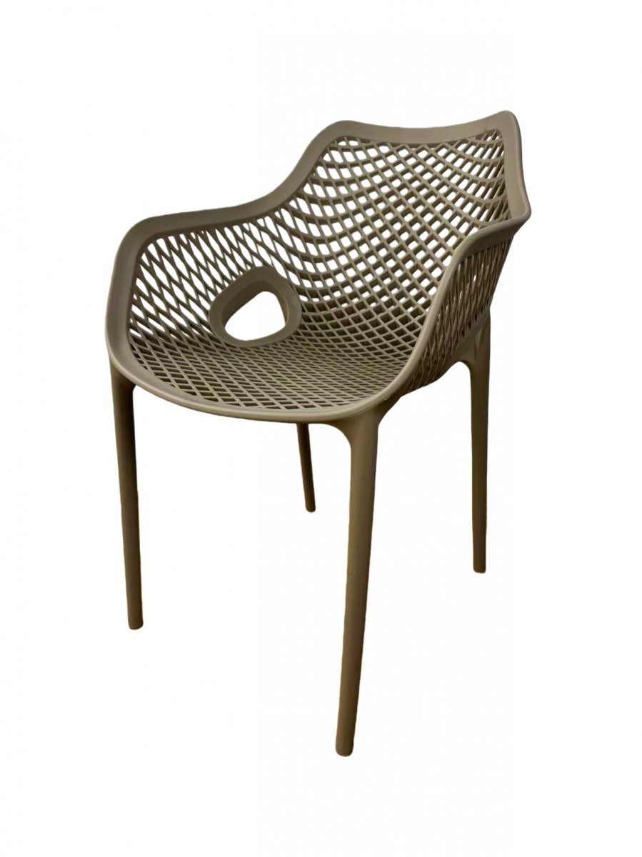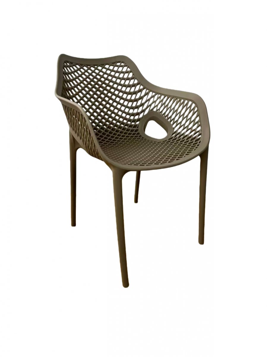 Изготовлен из полипропилена, прочного и стойкого пластика, устойчивого к УФ-излучению, благодаря этому стул сохраняет свой первоначальный вид и не выцветает на солнце даже несмотря на активную эксплуатацию. Цвет - бежево-коричневый.