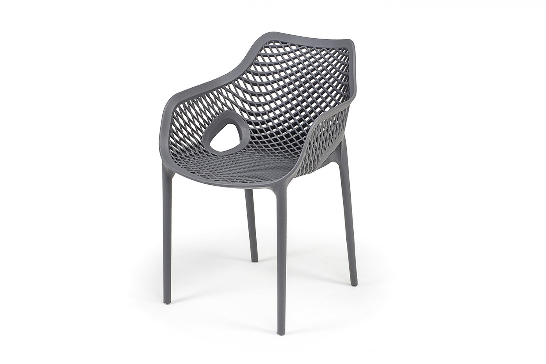 Изготовлен из полипропилена, прочного и стойкого пластика, устойчивого к УФ-излучению, благодаря этому стул сохраняет свой первоначальный вид и не выцветает на солнце даже несмотря на активную эксплуатацию. Цвет - темно-серый.