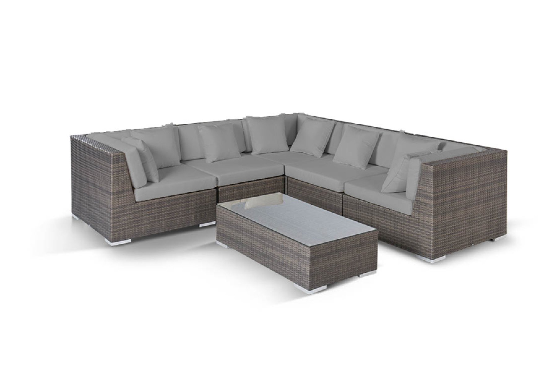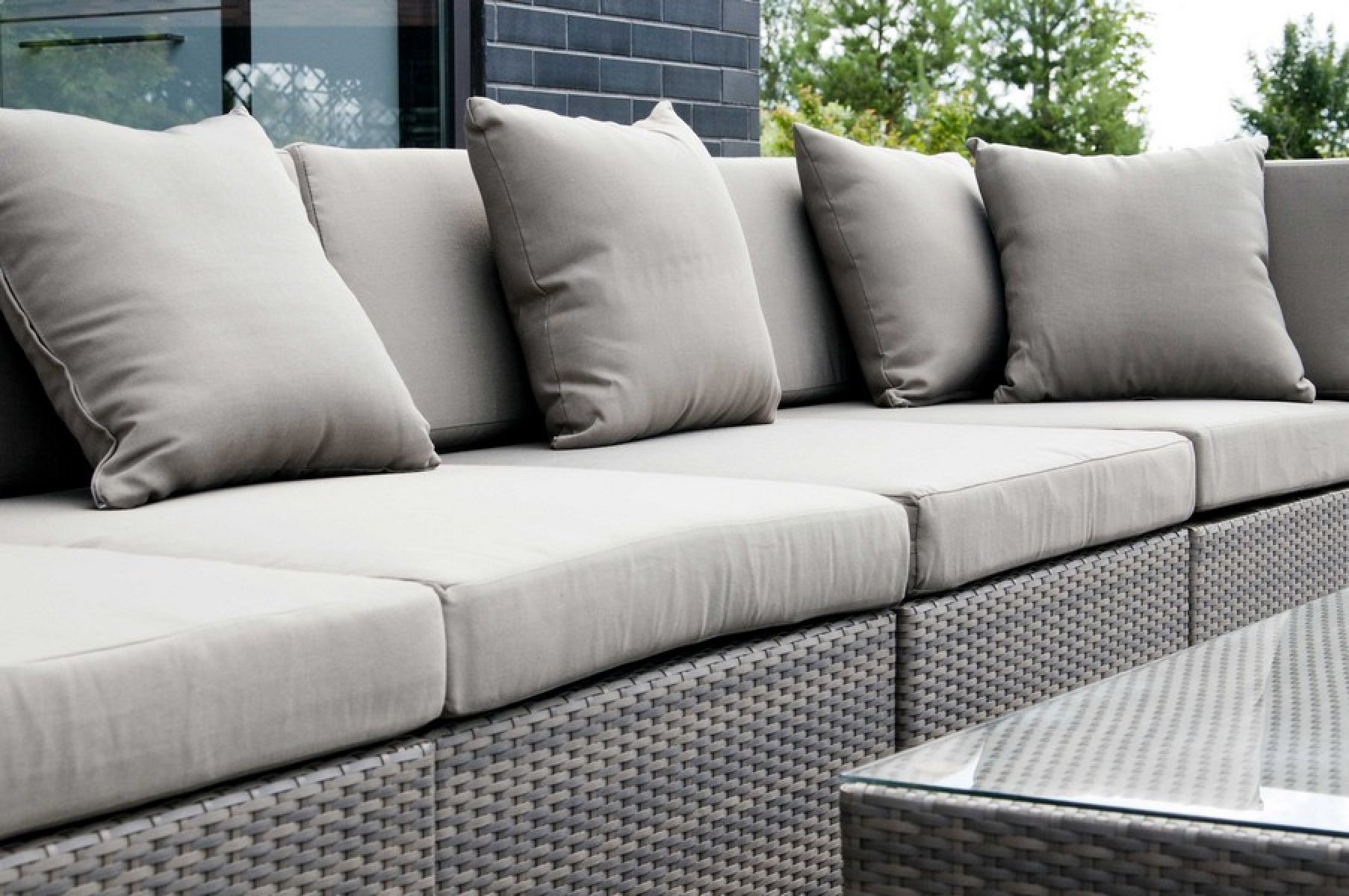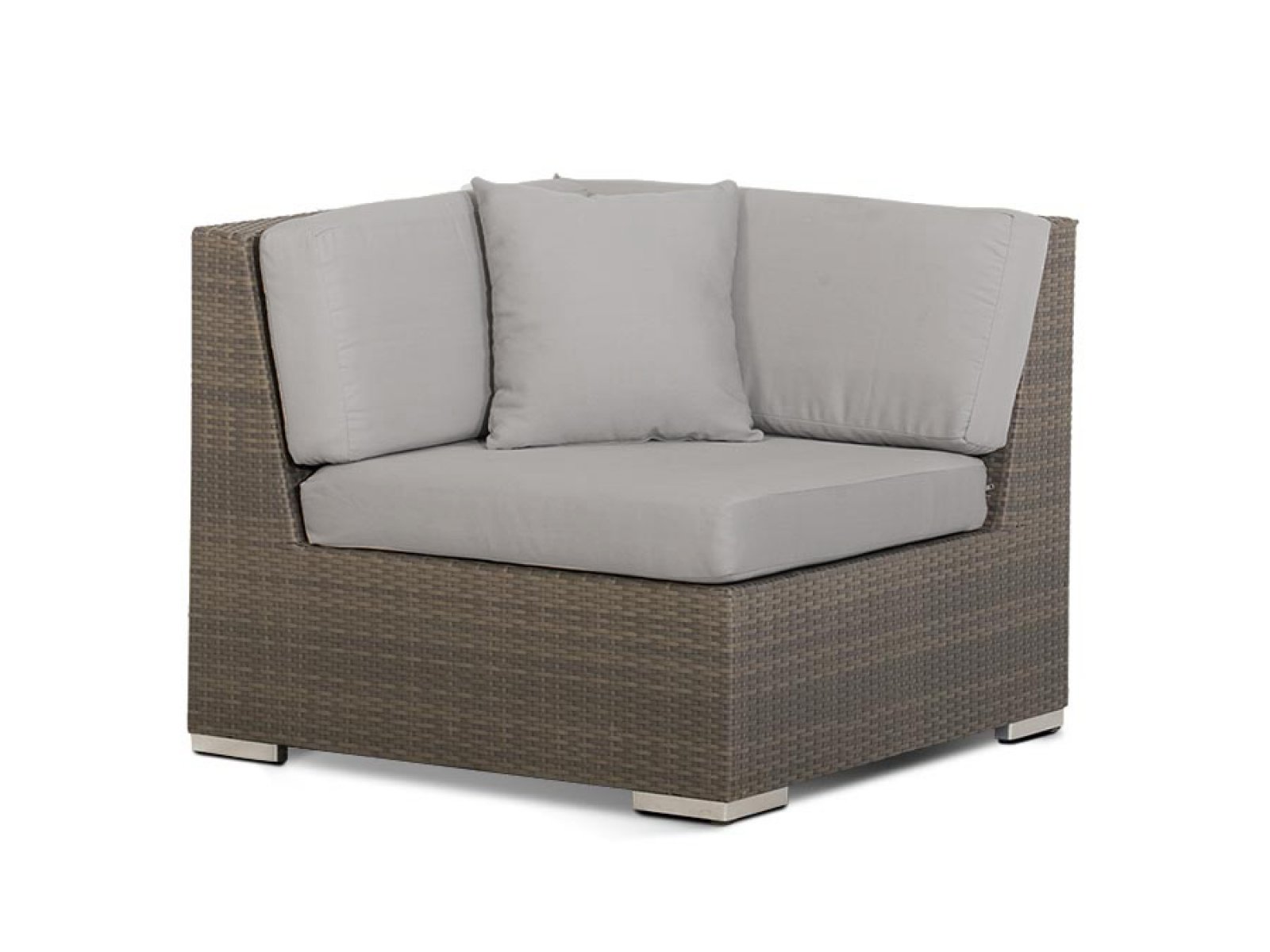 Модуль угловой в комплекте с подушками, алюминиевый каркас, искусственный ротанг, плетение плоское, размеры 900х900х730, цвет серо - коричневый, подушки темно-серые