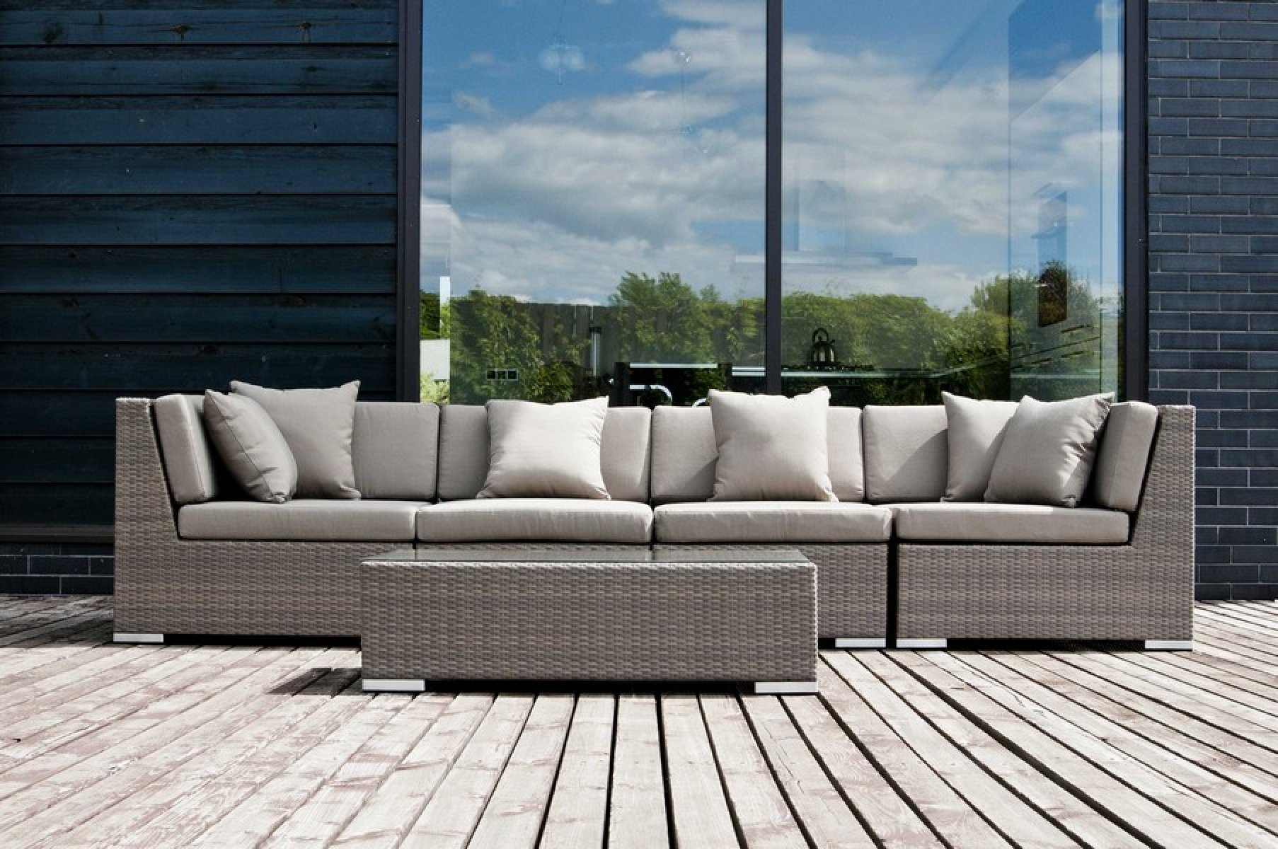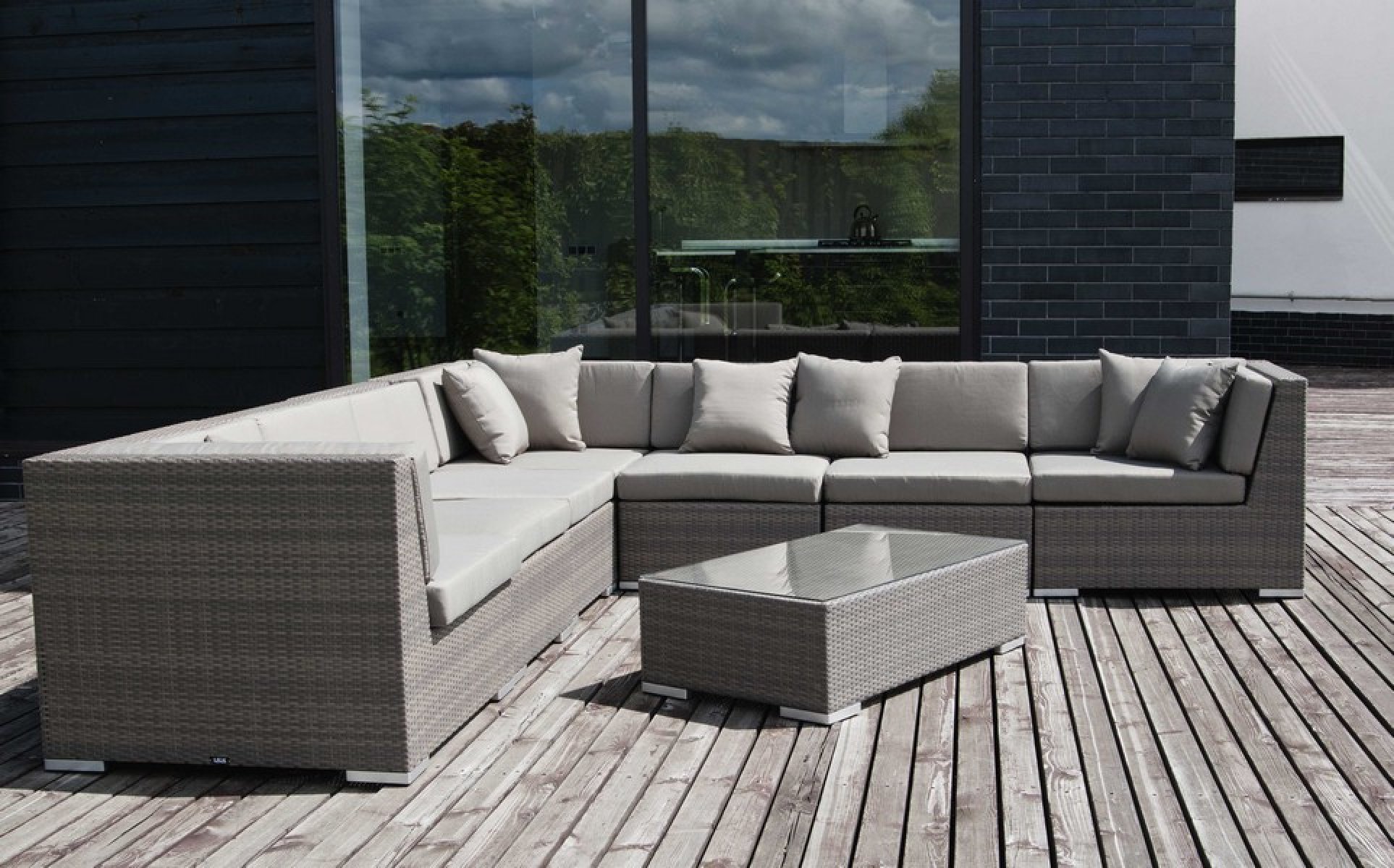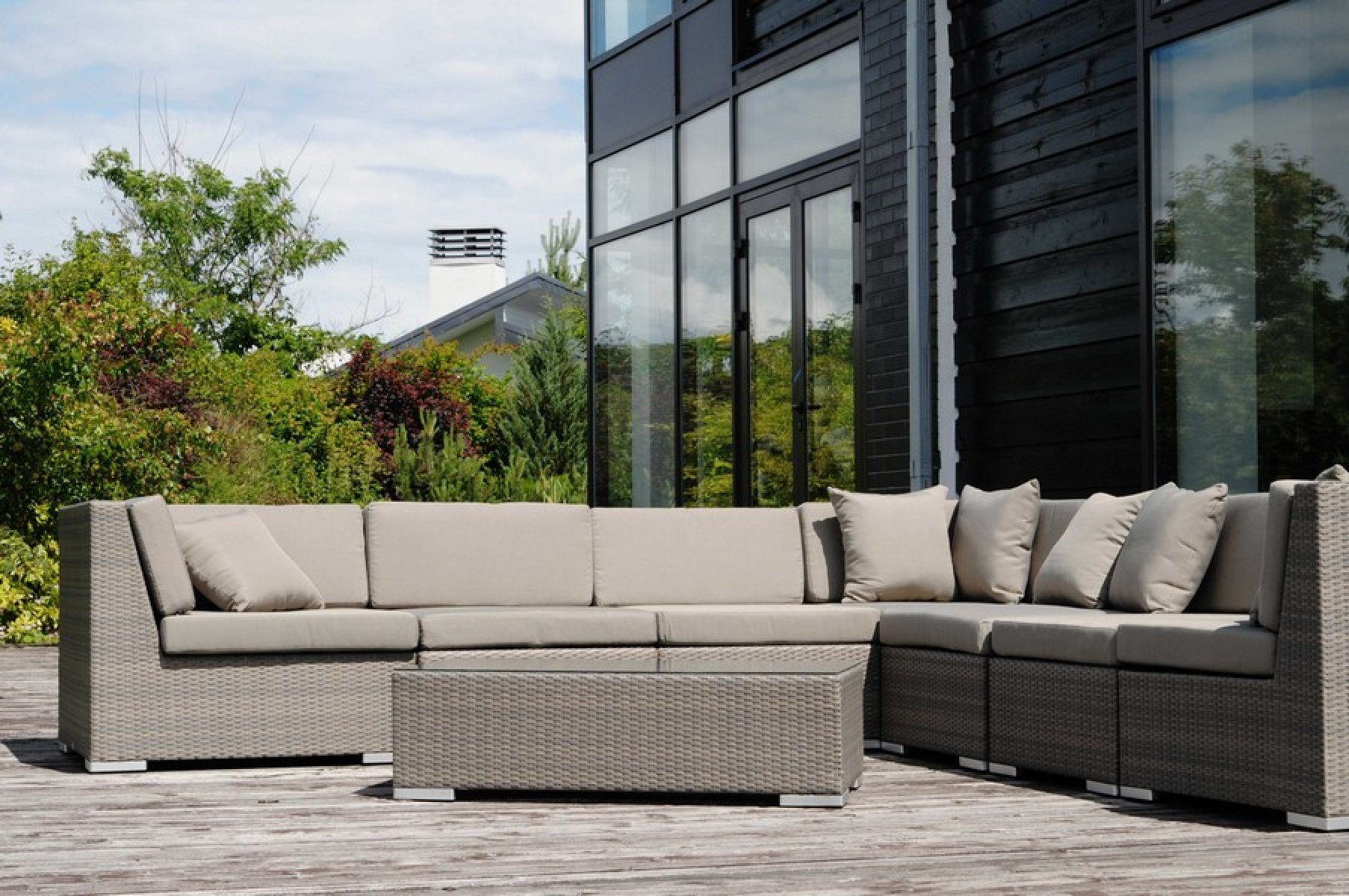 Модуль угловой в комплекте с подушками, алюминиевый каркас, искусственный ротанг, плетение плоское, размеры 900х900х730, цвет серо - коричневый, подушки темно-серые