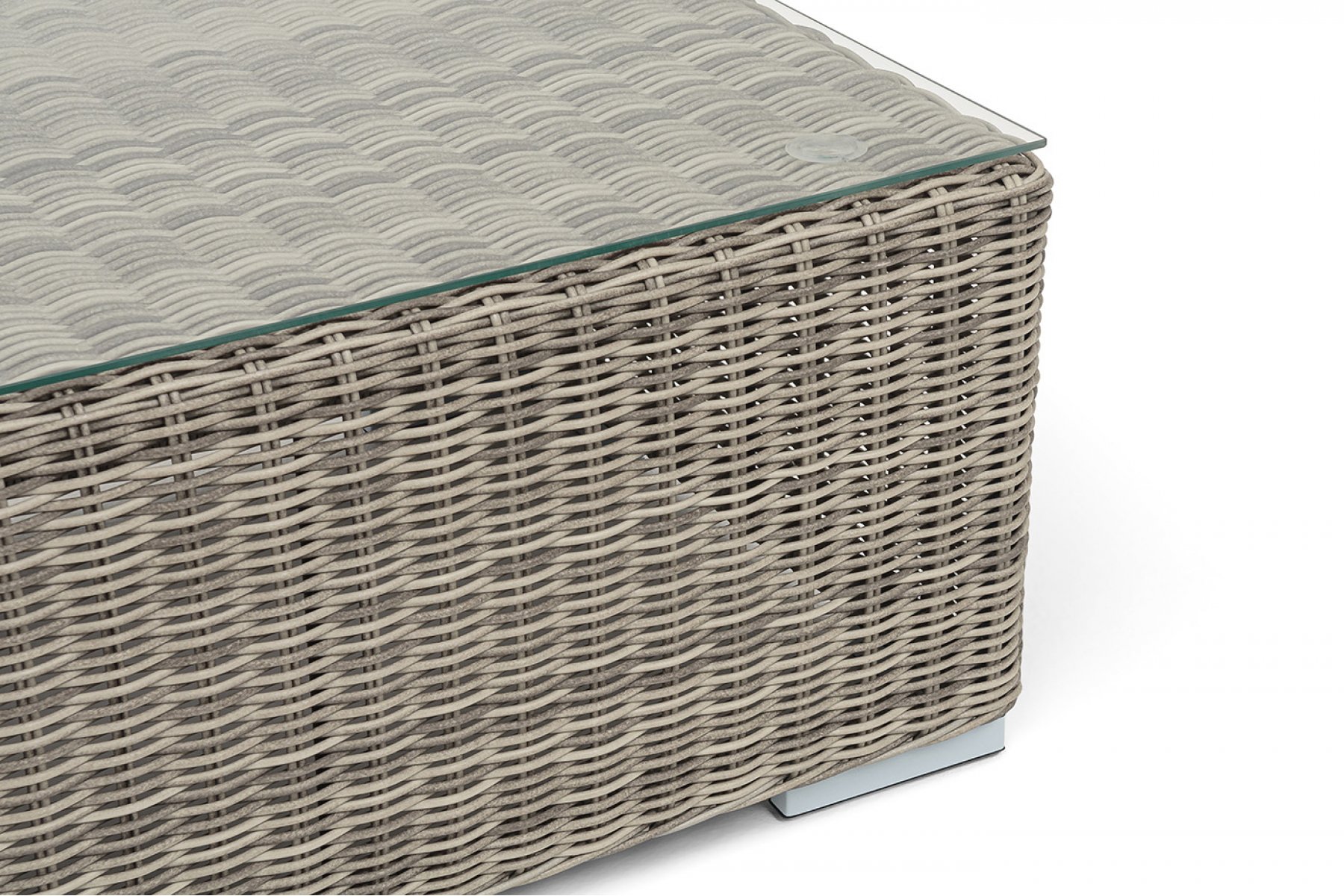 Каркас столика изготовлен из алюминия, вручную оплетенного круглым искусственным ротангом.