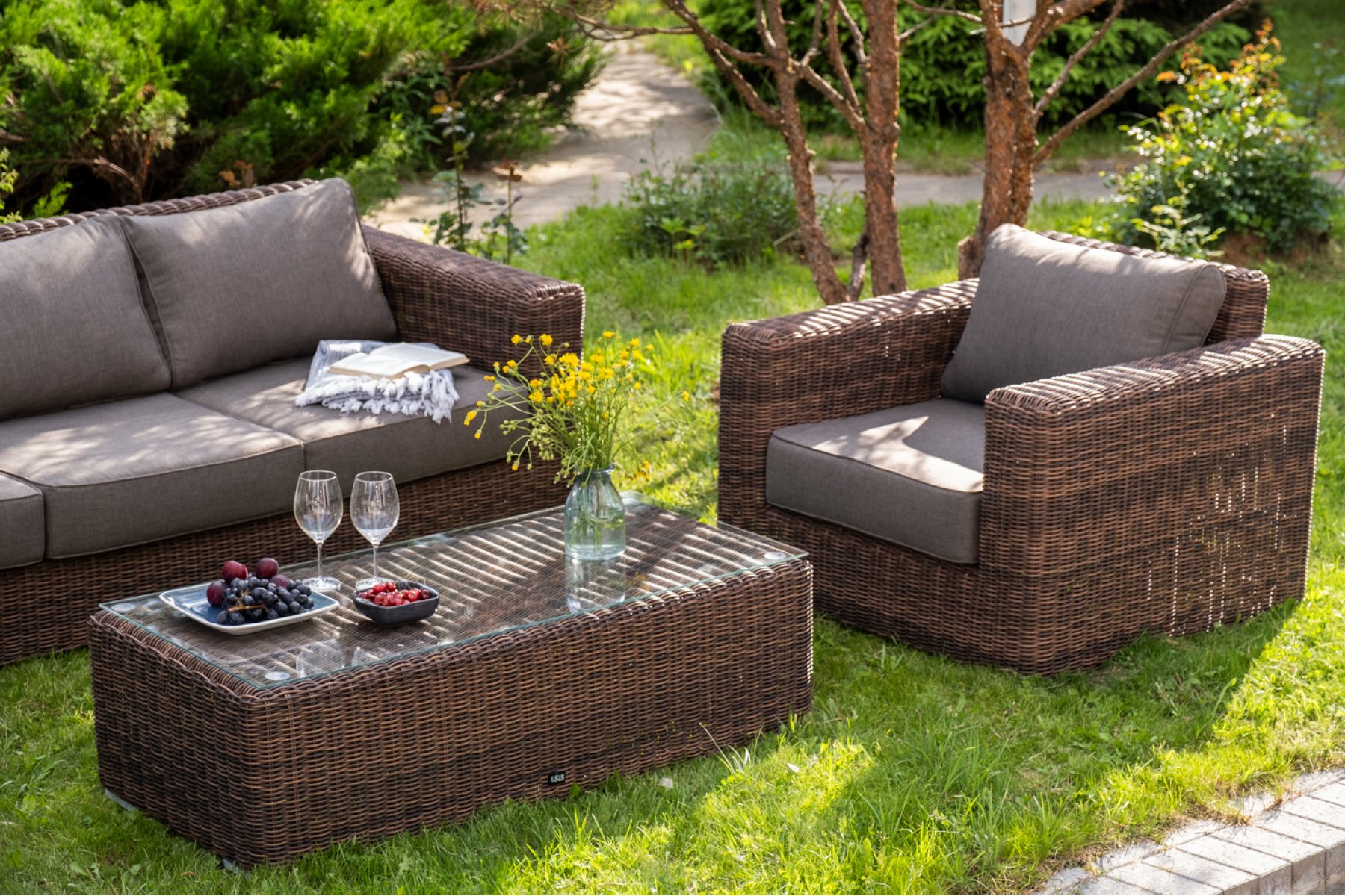 Комплект «Боно» с плетением из искусственного круглого ротанга для обустройства лаунж-зоны.