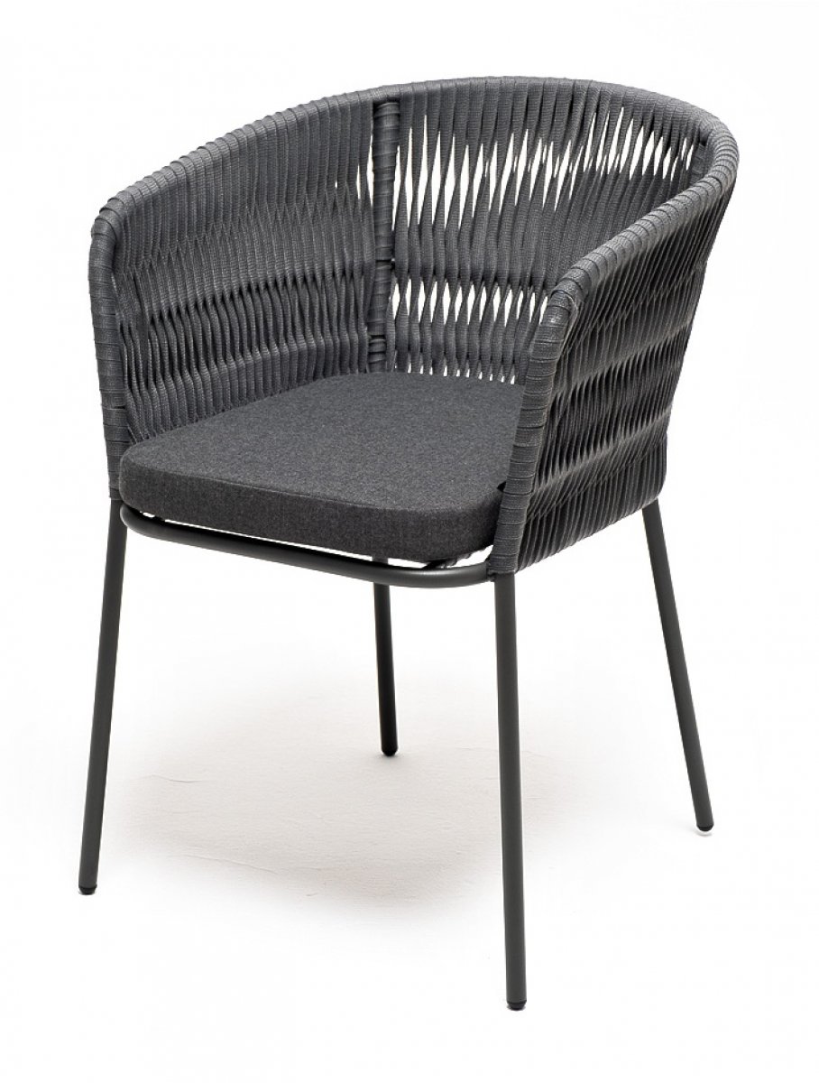 "Бордо" стул плетеный из роупа (колос), каркас алюминий темно-серый (RAL7024) муар, роуп серый 15мм, ткань темно-серая 027