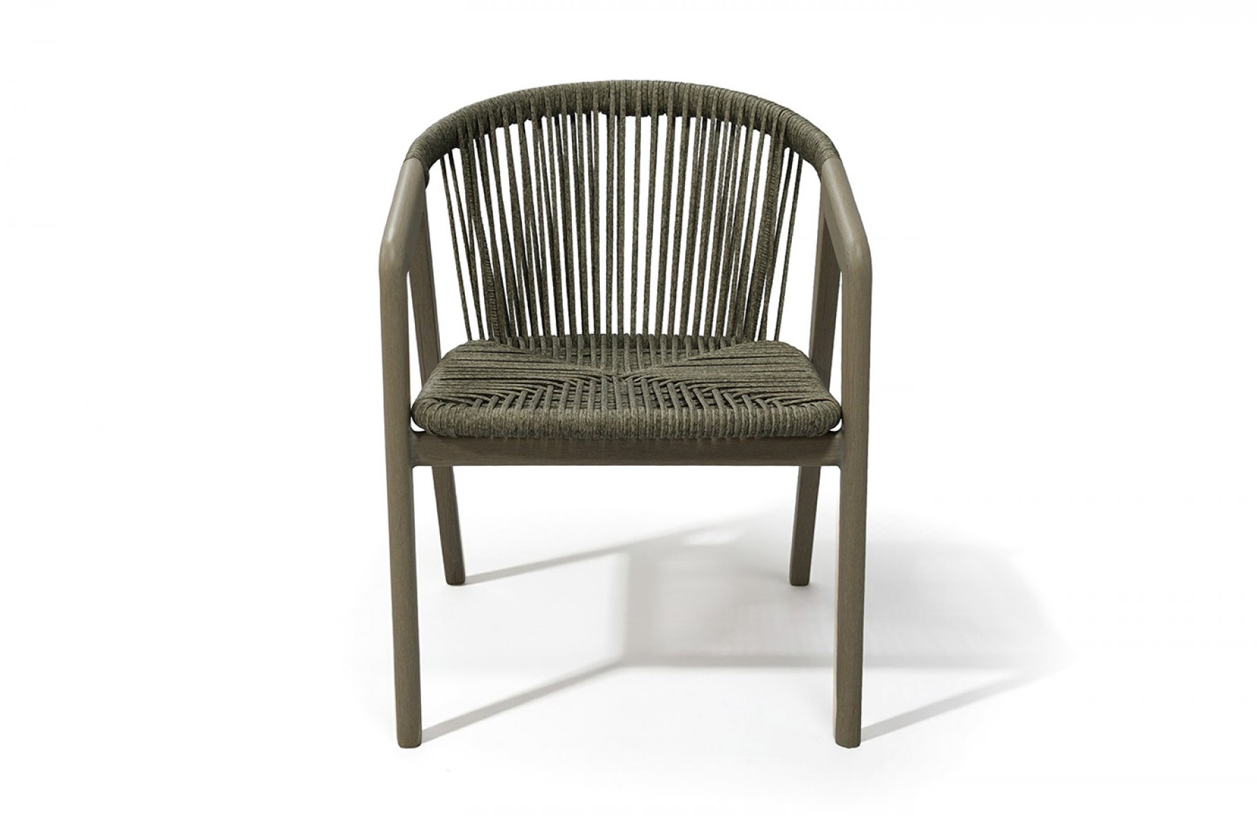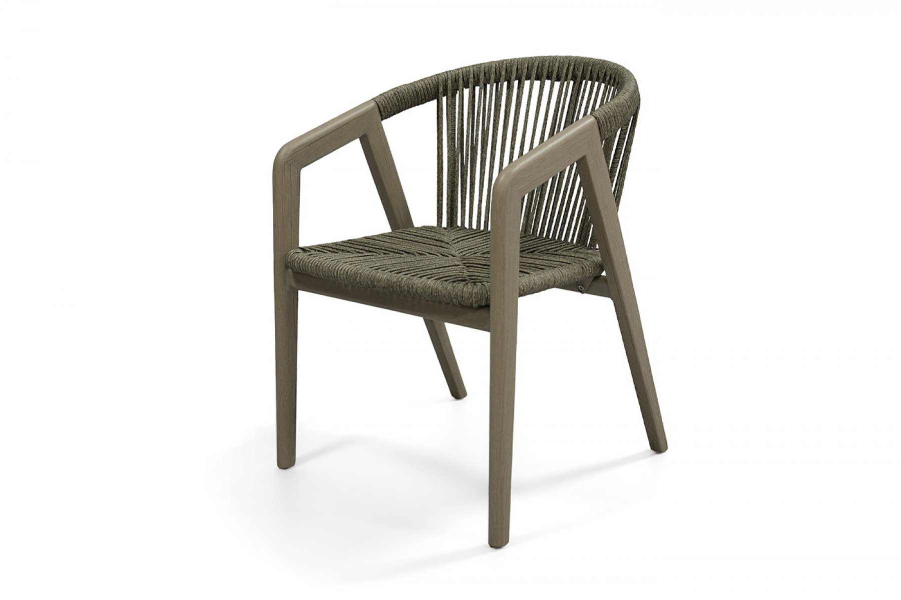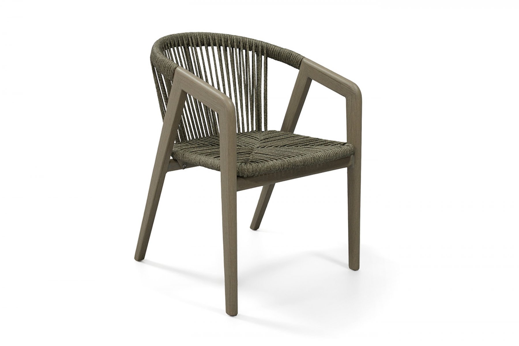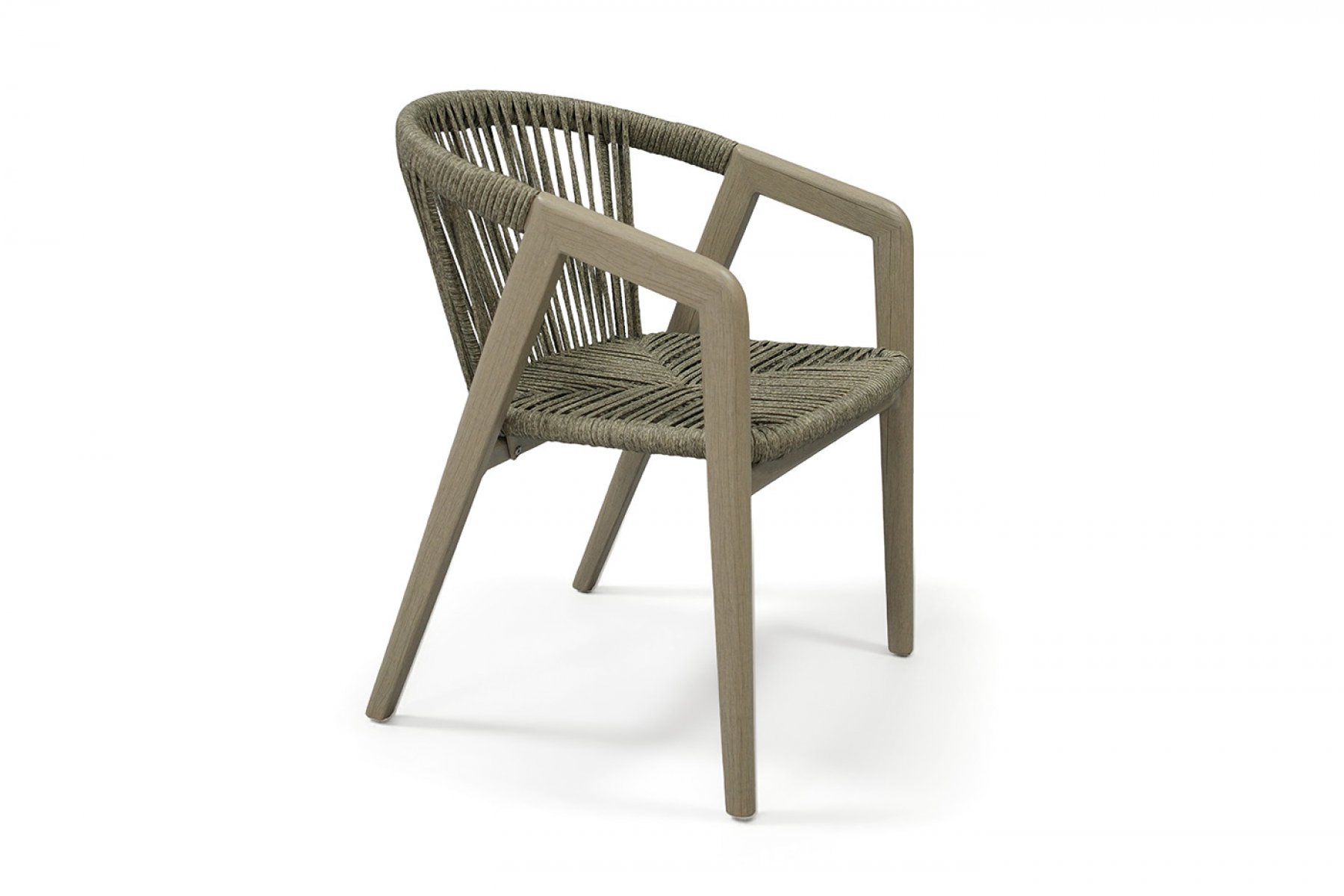 Стул выполнен из алюминиевого каркаса, который вручную оплетен круглым искусственным ротангом. Приятный на ощупь и напоминает шерстяное плетение. Цвет оплетки – серый. На ножках стула идут пластиковые наконечники (заглушки).