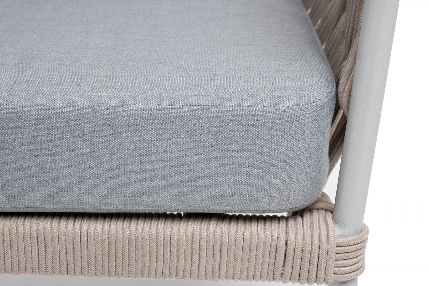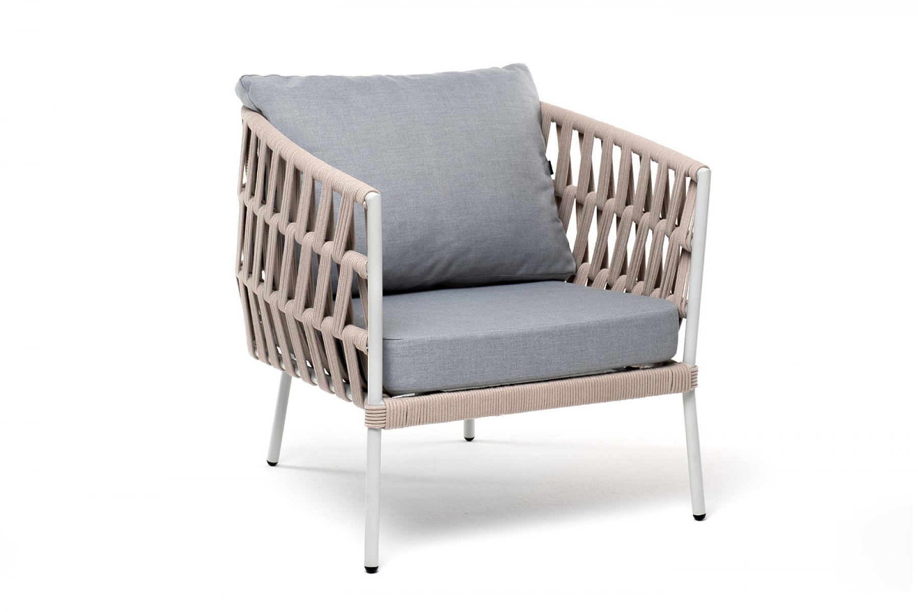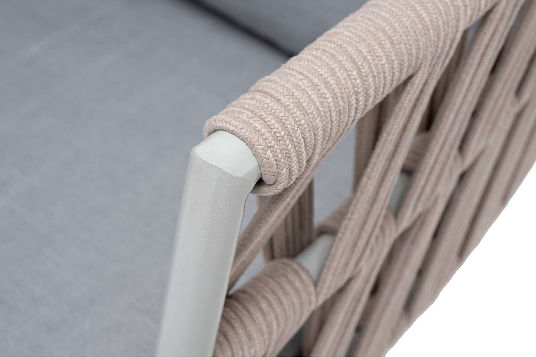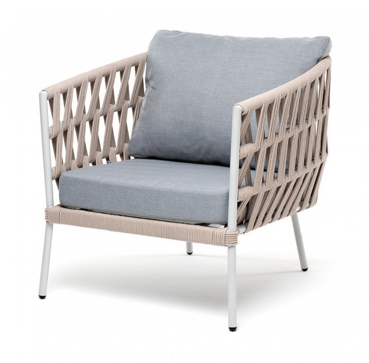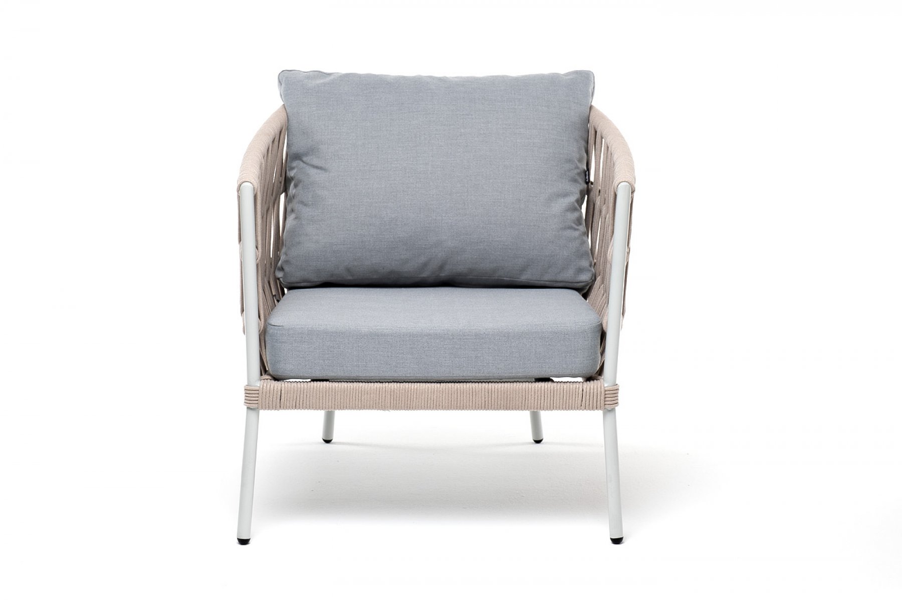 "Диего" кресло плетеное из роупа, каркас алюминий светло-серый (RAL7035) муар, роуп бежевый круглый, ткань светло-серая