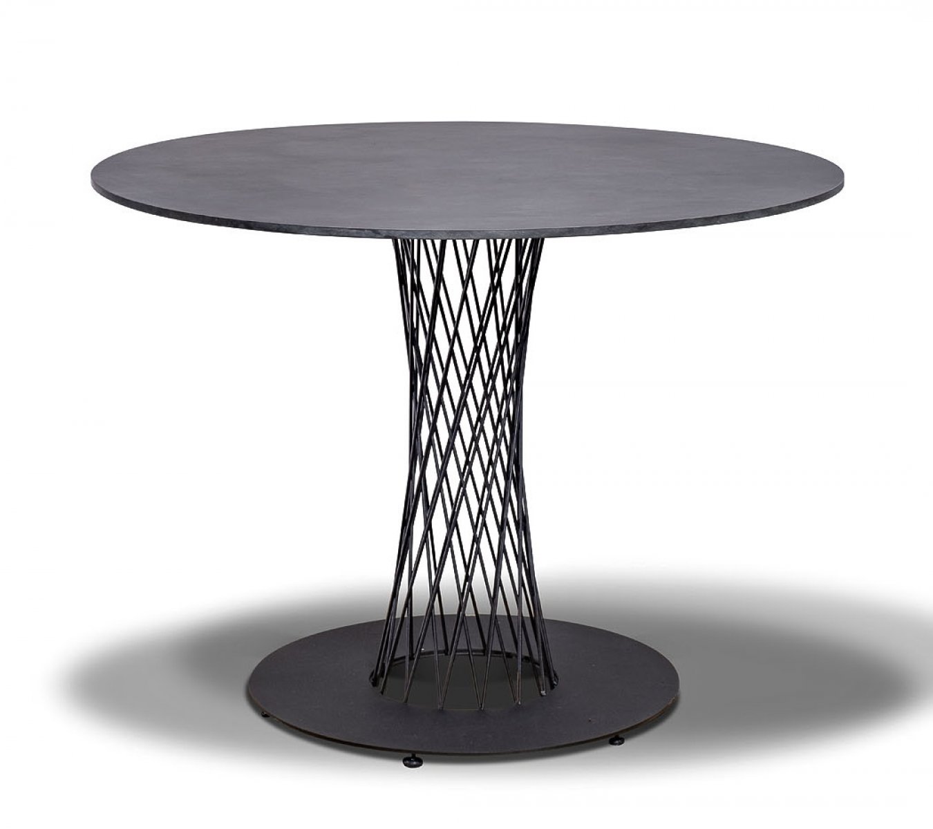 Обеденный стол «Диего» с изящной плетеной ножкой из прочного металла, окрашенного в черный цвет.