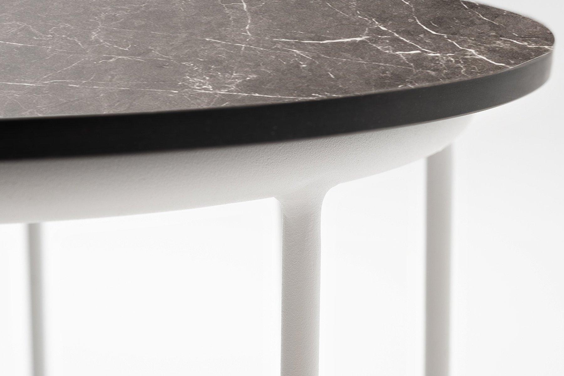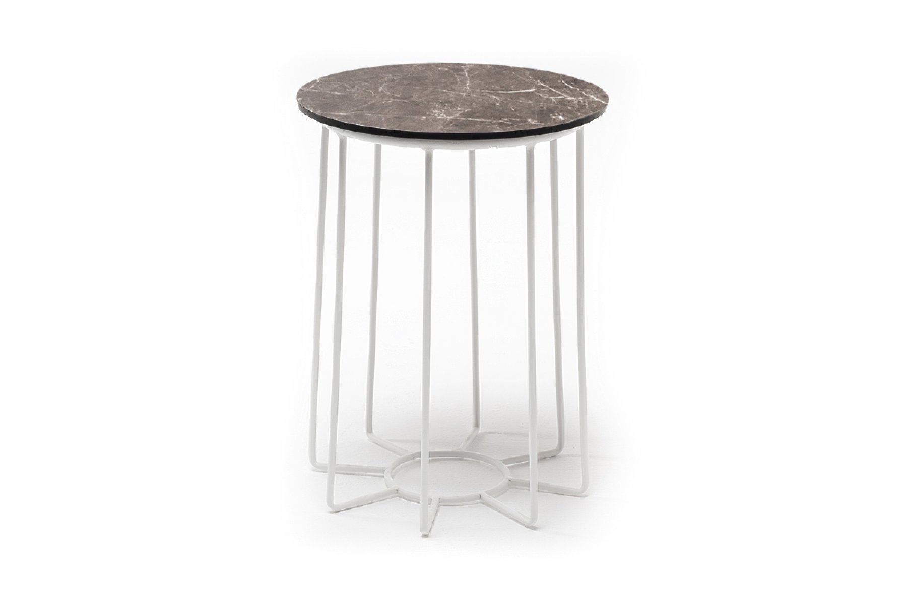 "Эквадор" журнальный стол из HPL круглый Ø40 H55, каркас из алюминия белый муар, цвет столешницы "серый мрамор"