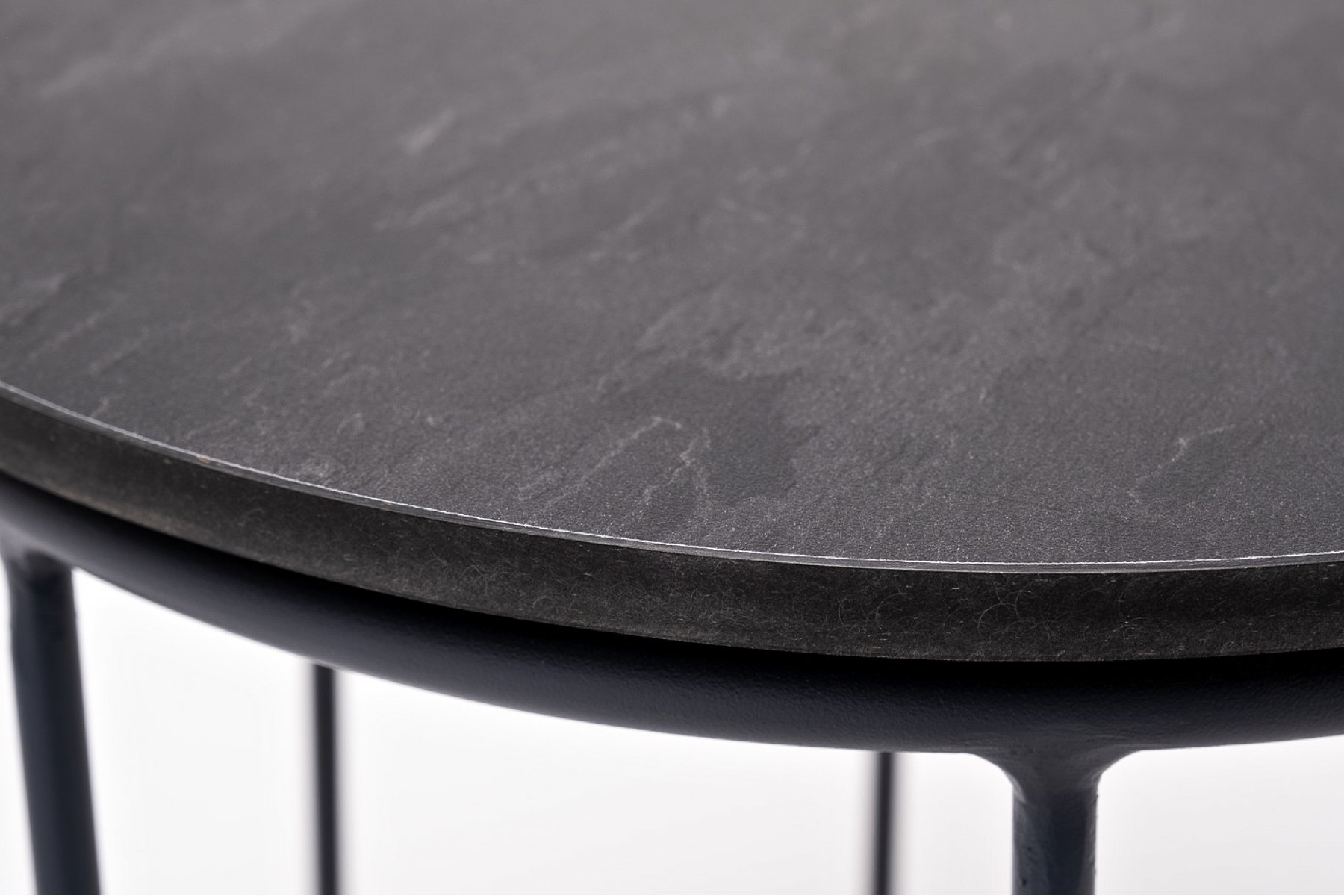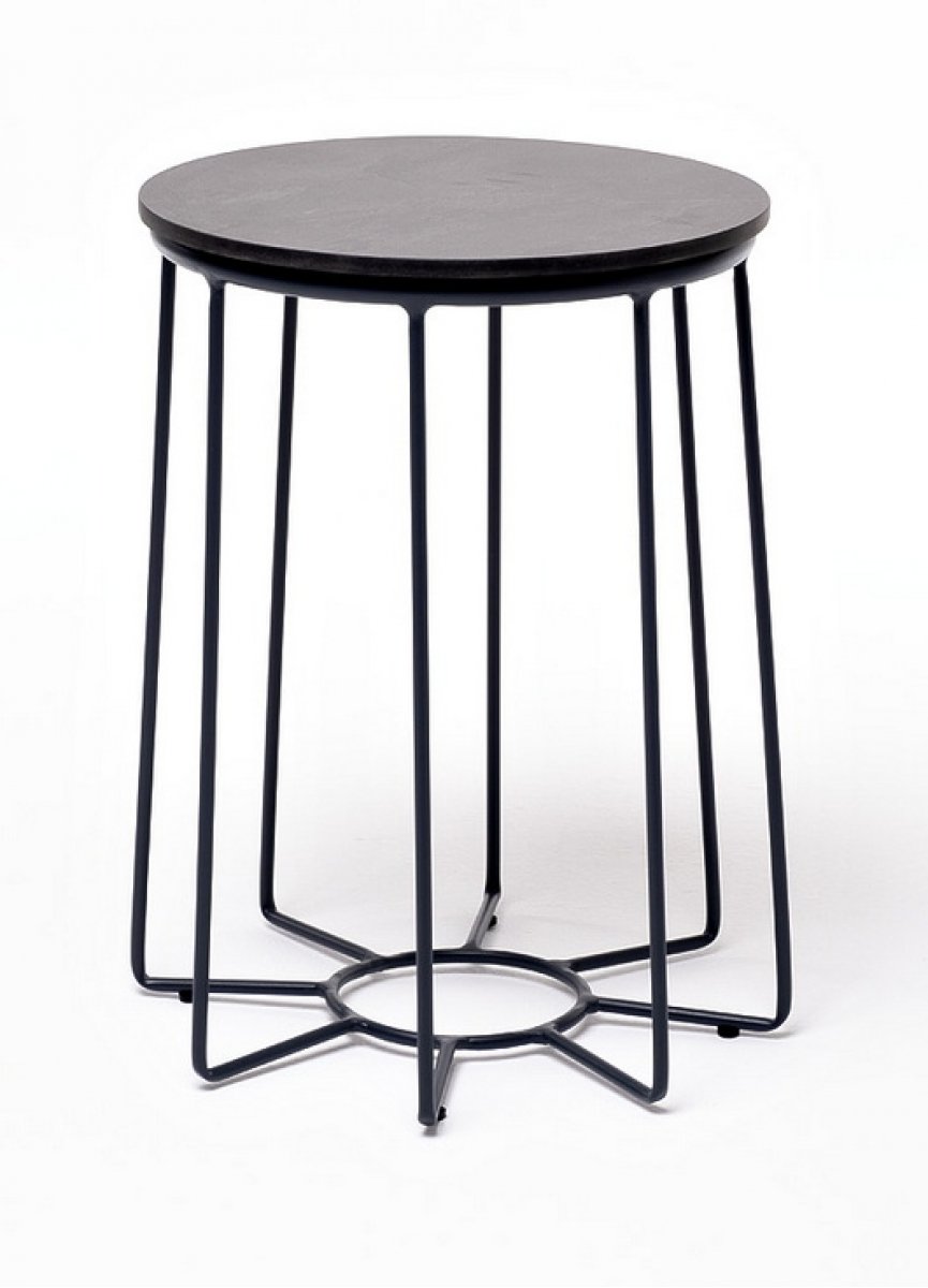 "Эквадор" журнальный стол из HPL круглый Ø40 H55, каркас из алюминия темно-серый (RAL 7024) муар, цвет столешницы "серый гранит"