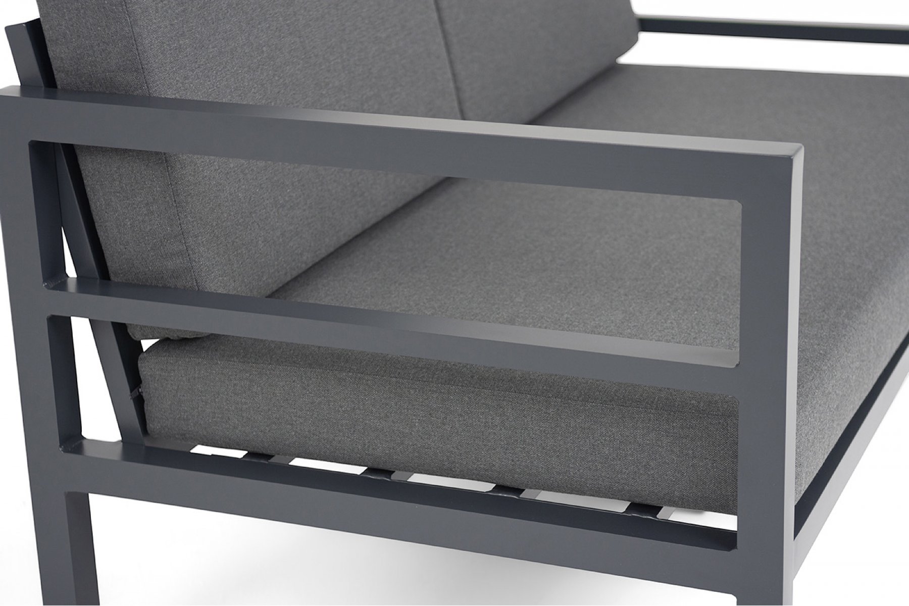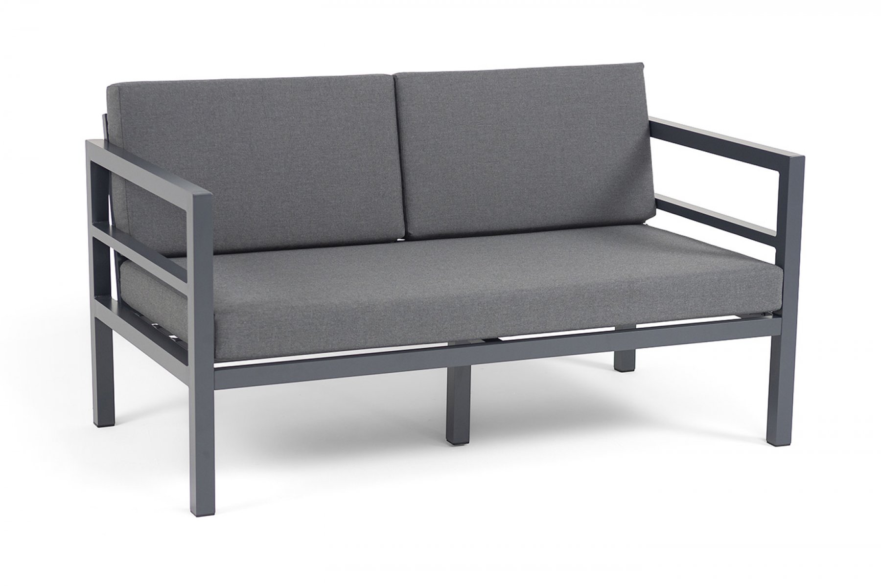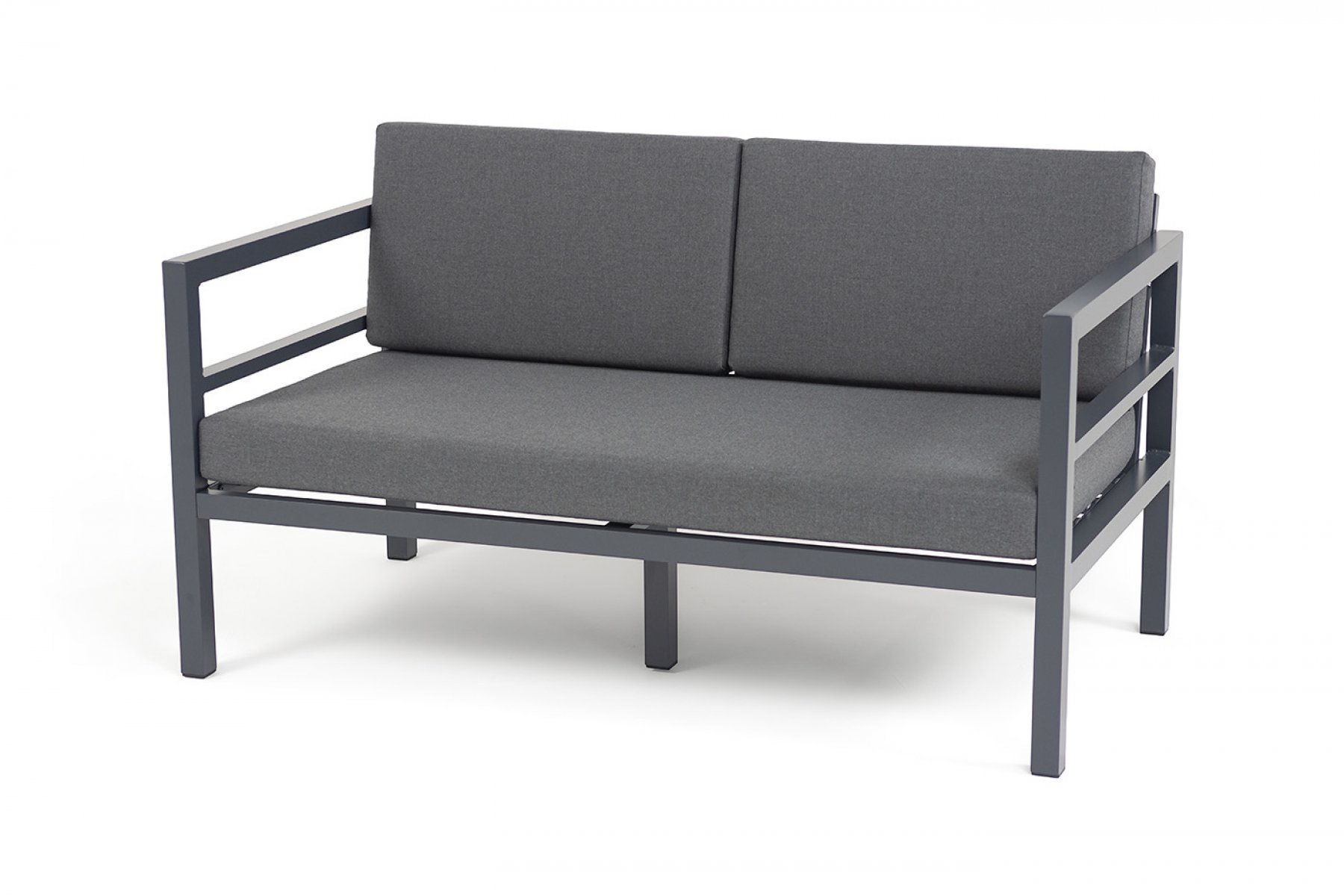 "Эстелья" диван 2-местный, каркас алюминий темно-серый (RAL7024) муар, ткань темно-серая 027