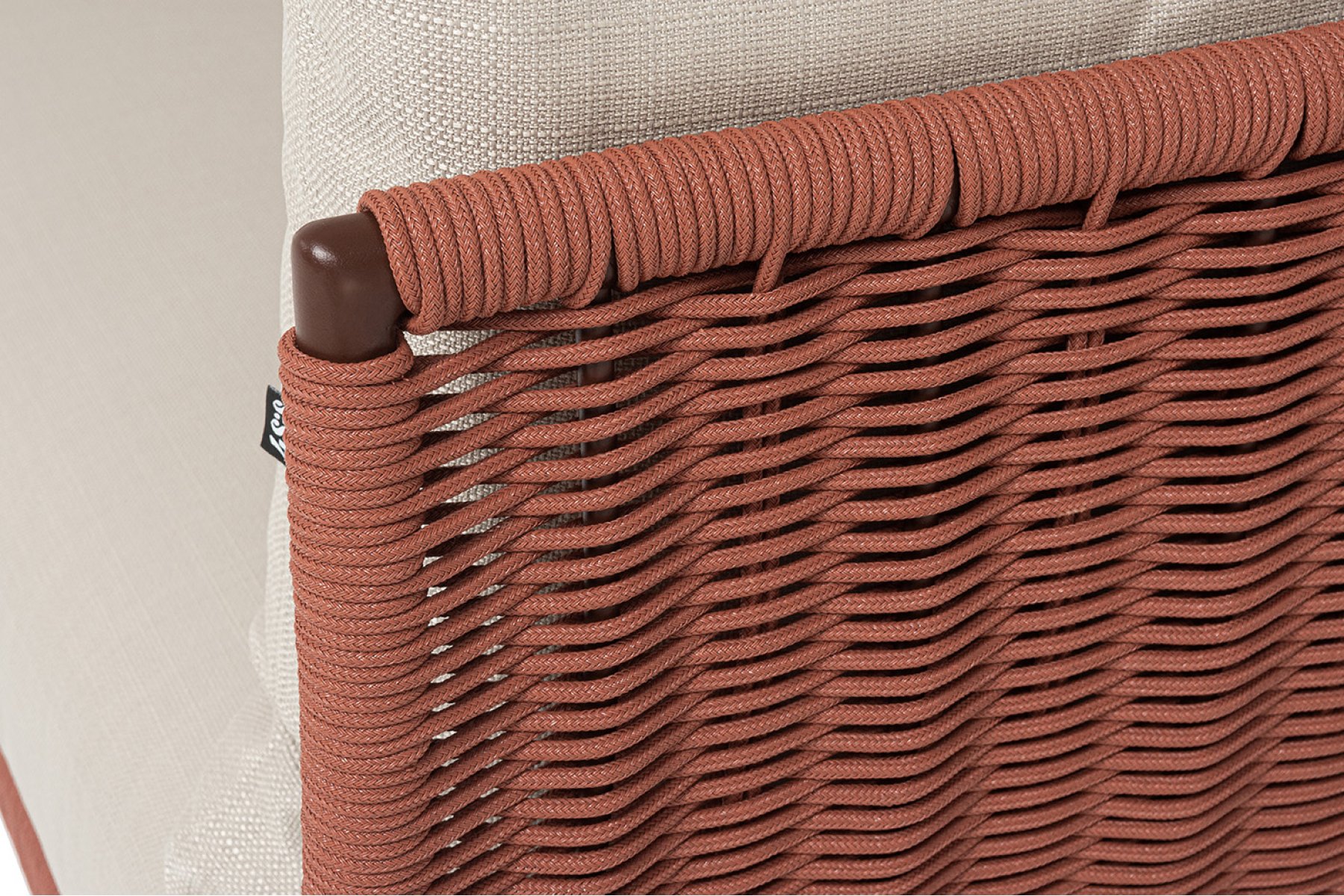 Каркас дивана выполнен из алюминия, окрашенного порошковой краской в благородный коричневый цвет (RAL8016). Легкость металла не уступает в прочности — конструкция устойчива к ежедневным нагрузкам и сохраняет форму годами.