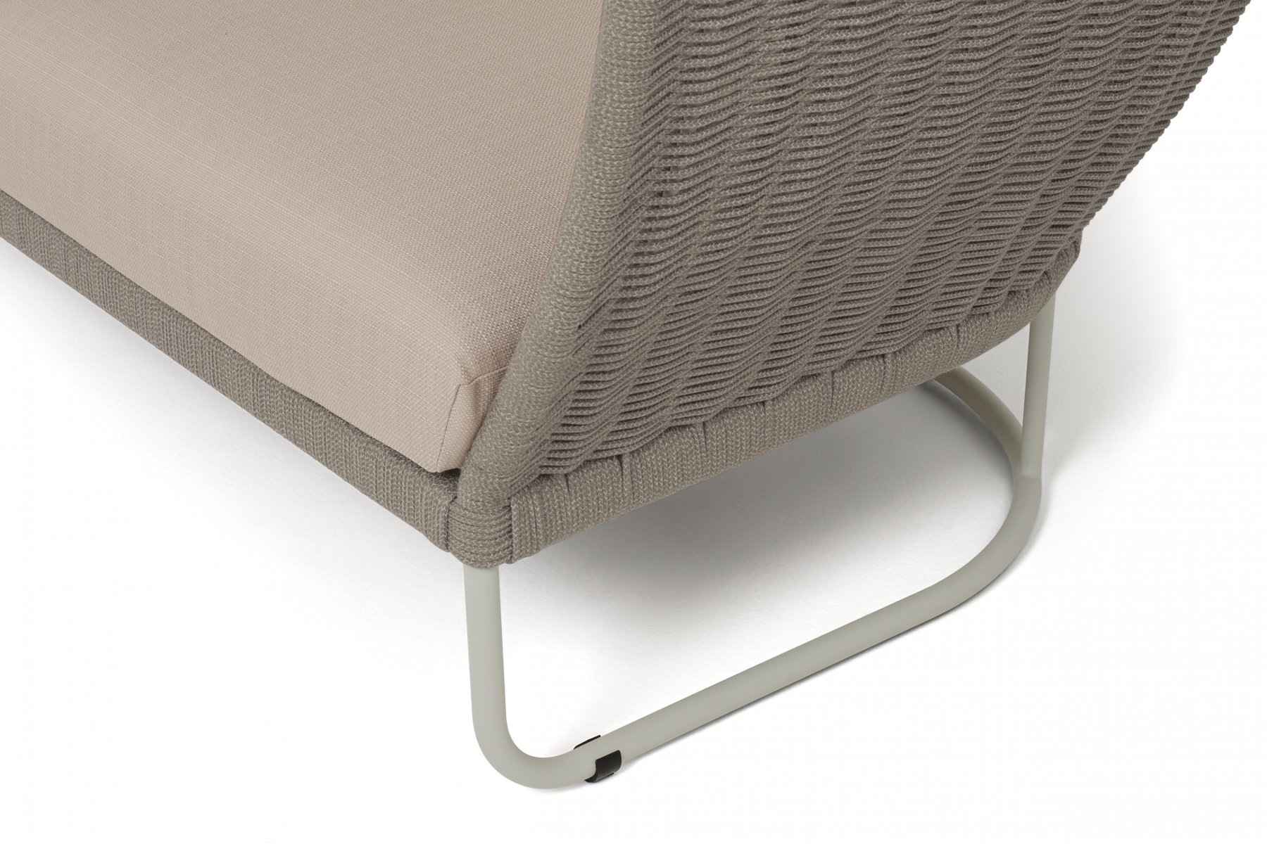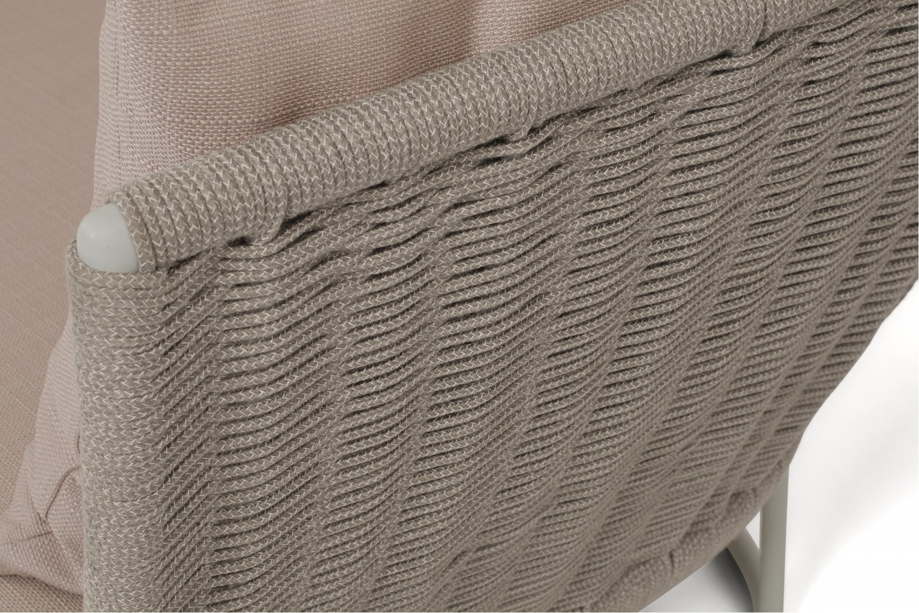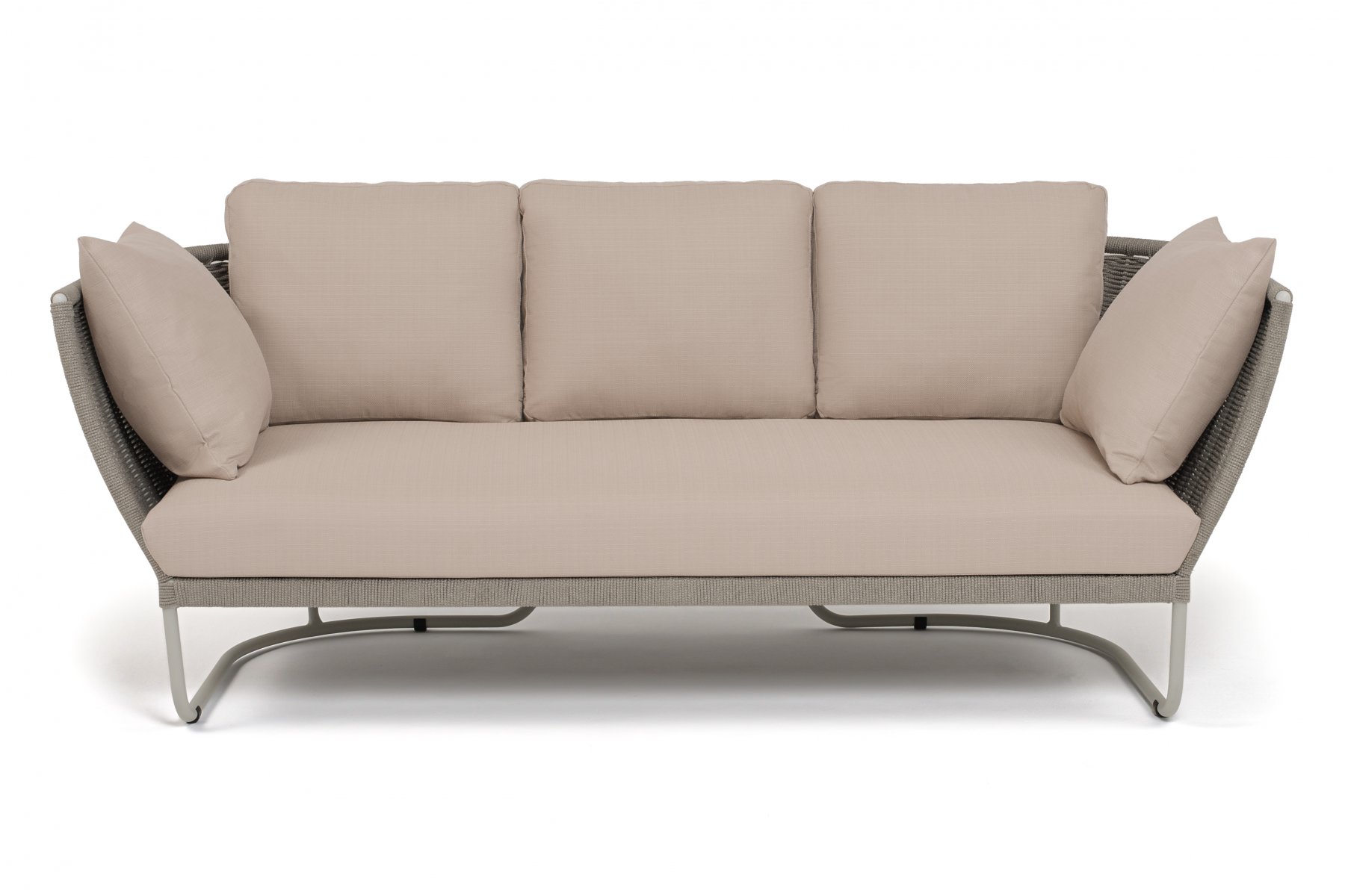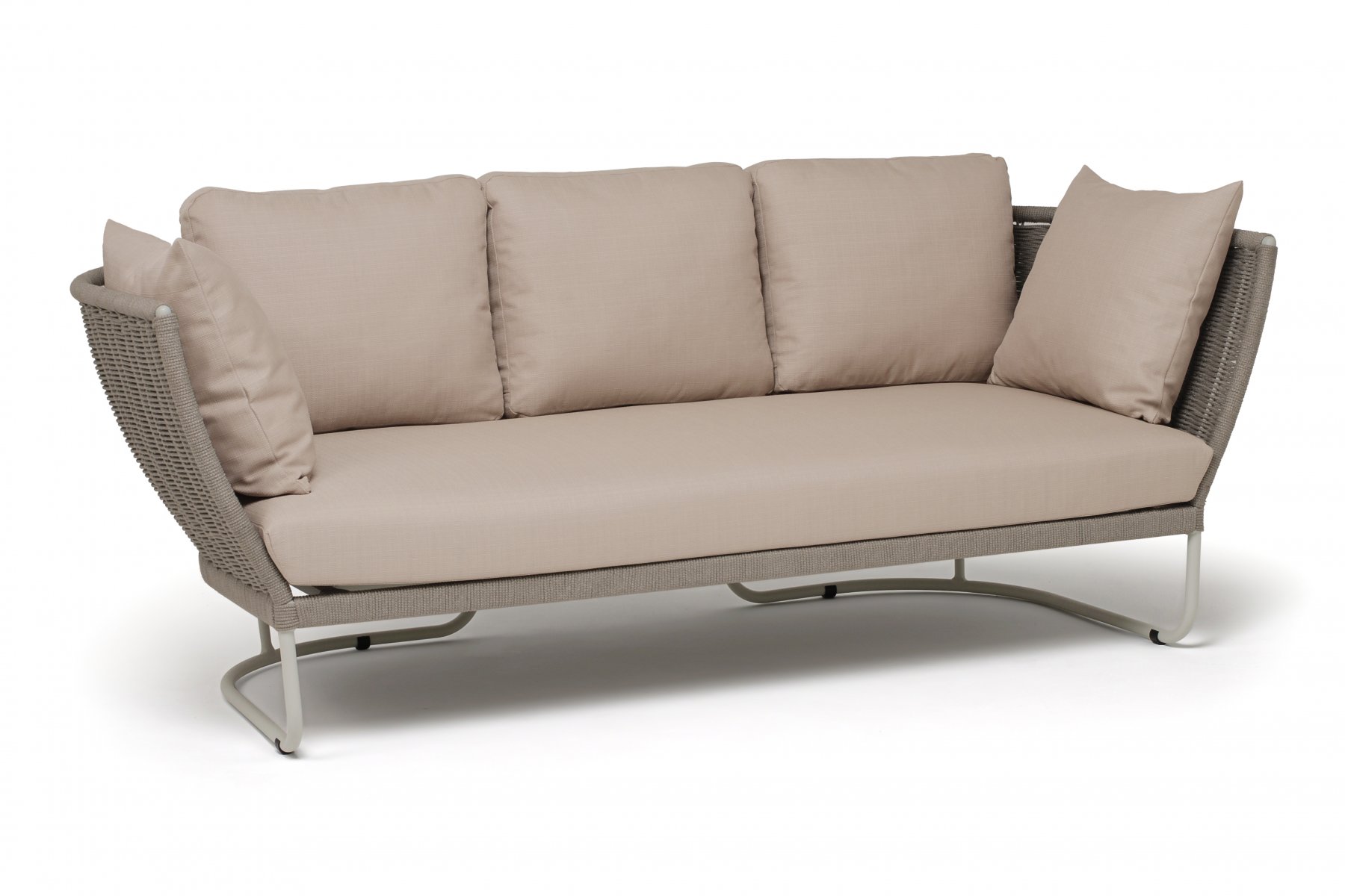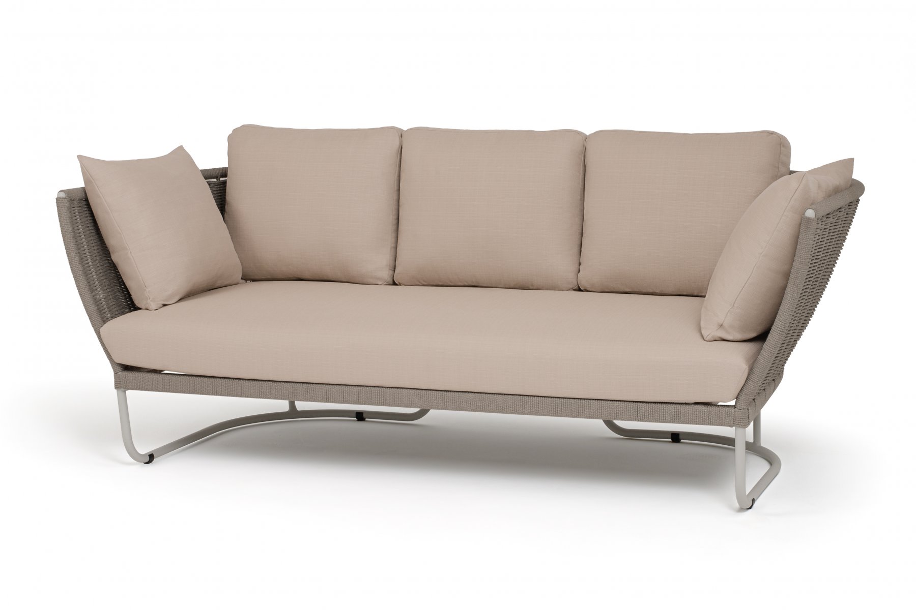 "Фиджи" диван 3-местный плетеный из роупа, каркас алюминий светло-серый (RAL7035) муар, роуп серый меланж круглый, ткань Mossle бежевая
