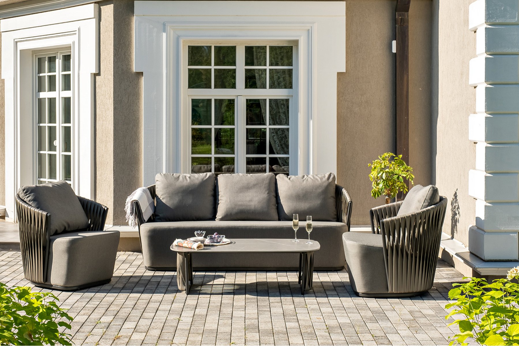 Плете "Флоренция" диван из искусственного ротанга трехместный, цвет графит 1шт. 2 210Х870Х815, "Флоренция" кресло из искусственного ротанга, цвет графит 2шт. 850Х870Х815, "Флоренция" столик журнальный из искусственного ротанга, цвет графит 1шт. 1 300Х770Х430,