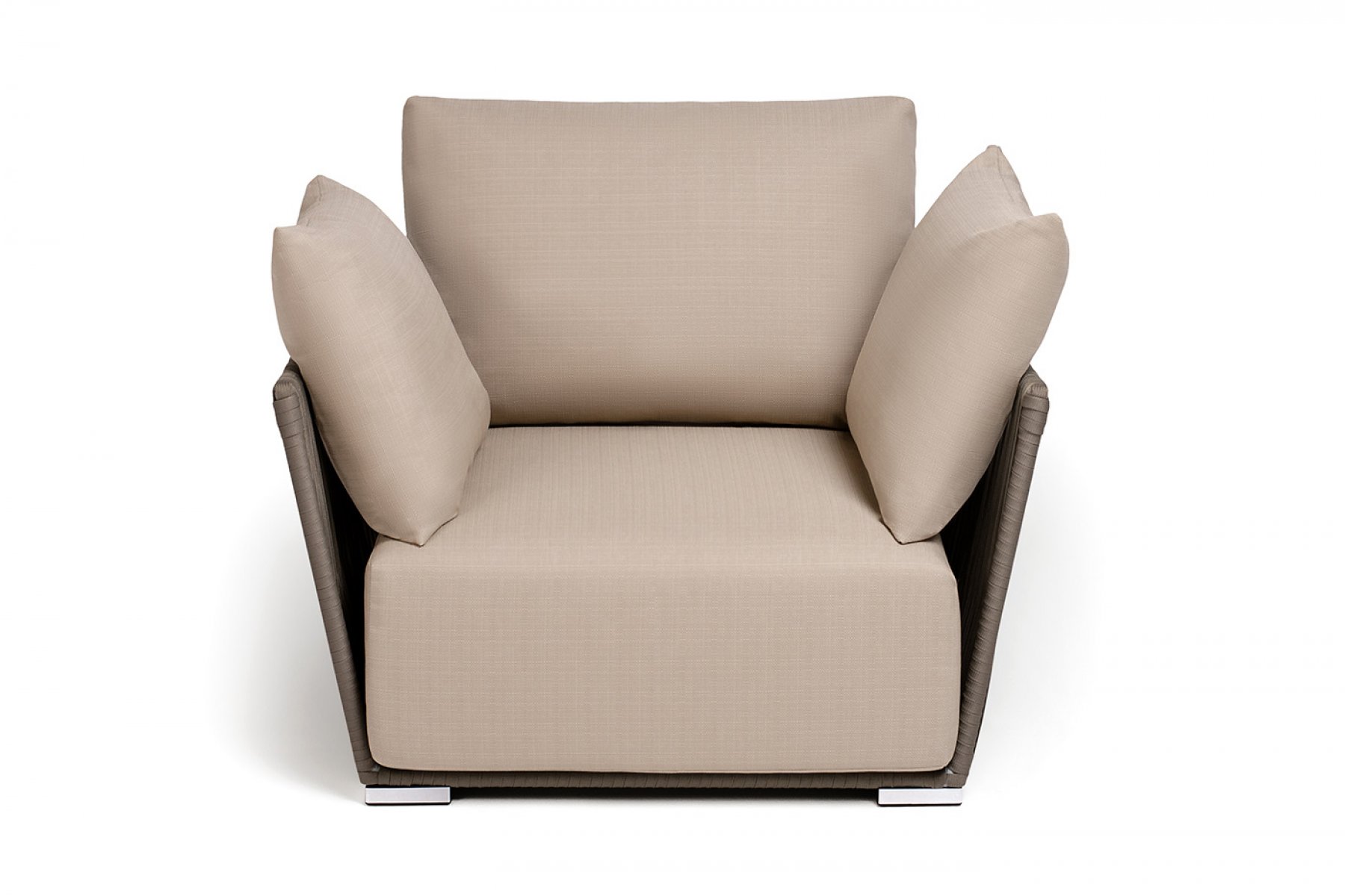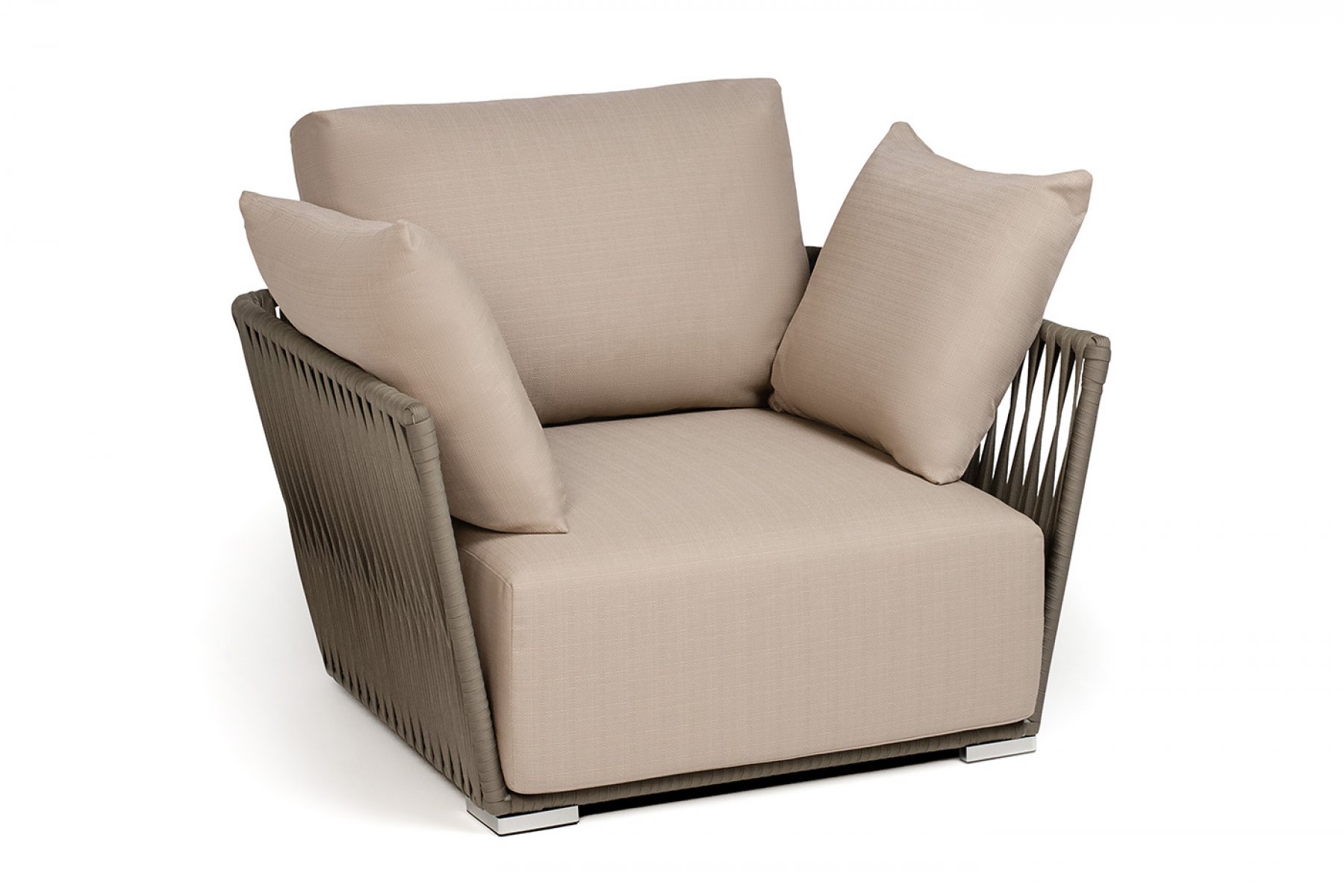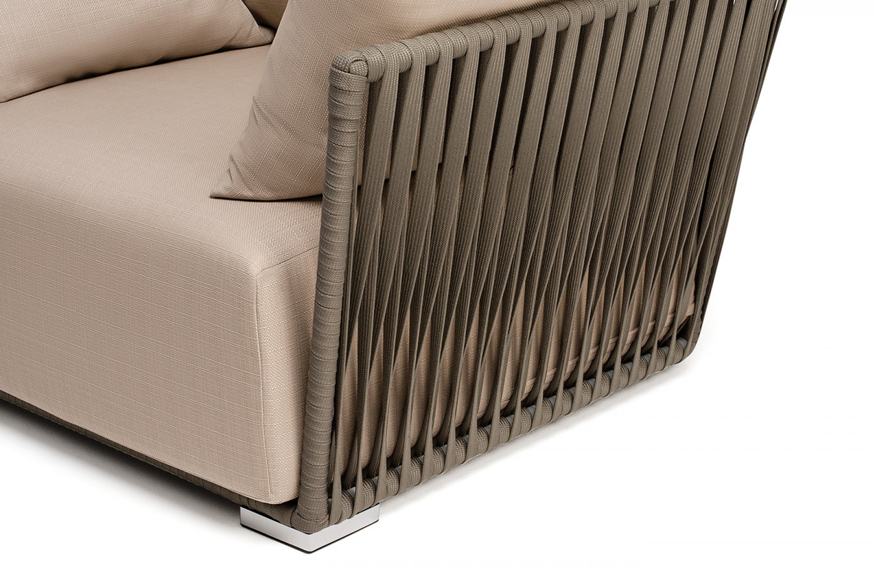 "Форли" кресло плетеное из роупа, каркас алюминий светло-серый (RAL7035) муар, роуп серо-коричневый 23мм, ткань Mossle бежевая