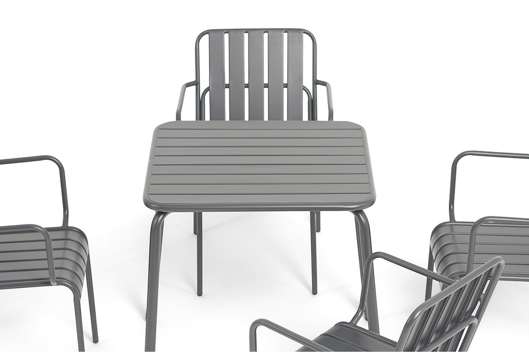 Стол квадратный стальной темно-серого цвета «Гелиос» — идеальное решение для улицы, веранды или террасы. Его яркий оттенок не только привлекает внимание, но и создает атмосферу уюта и радости в любом открытом пространстве.
