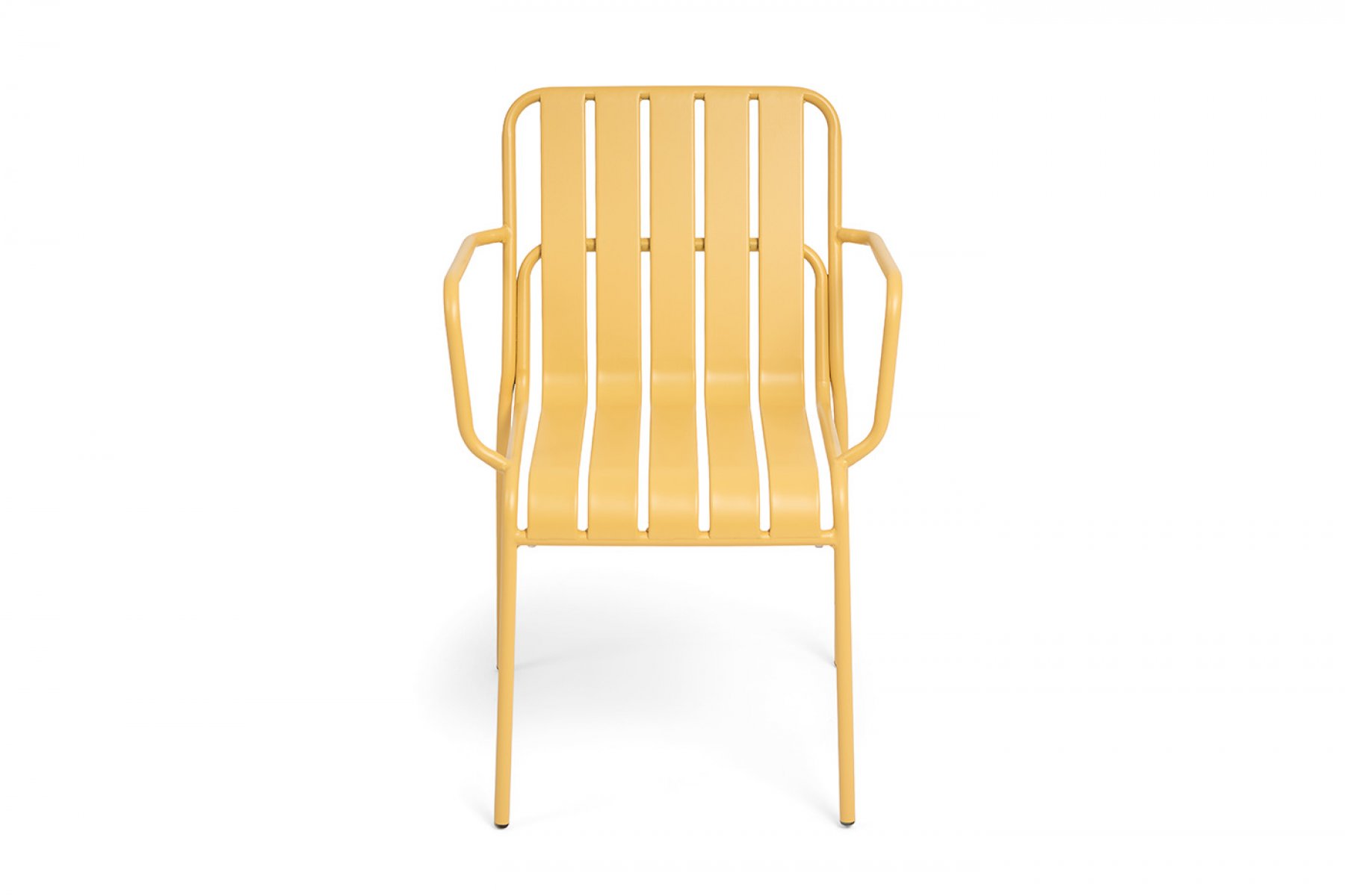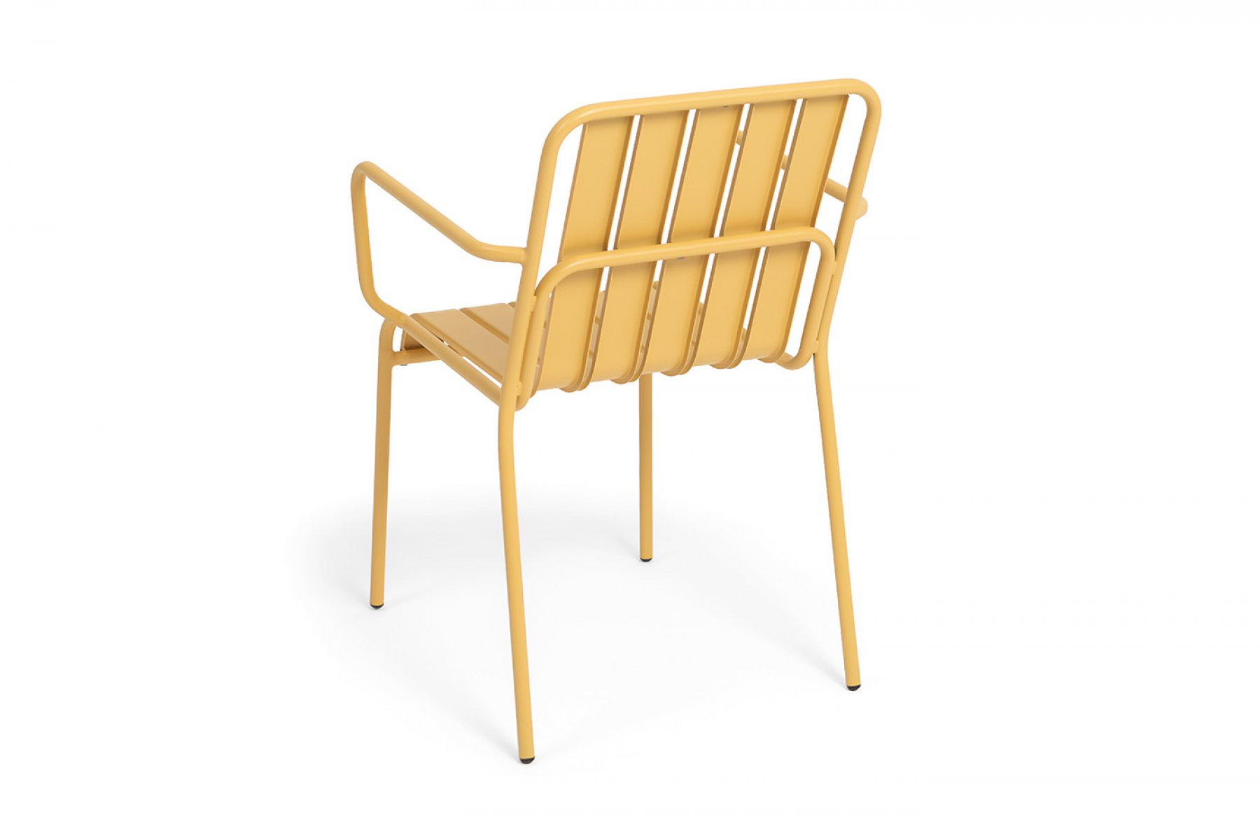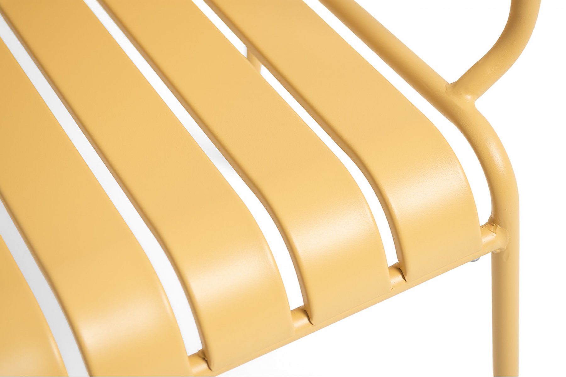 Стул стальной желтого цвета «Гелиос» — идеальное решение для улицы, веранды или террасы. Его яркий оттенок не только привлекает внимание, но и создает атмосферу уюта и радости в любом открытом пространстве.