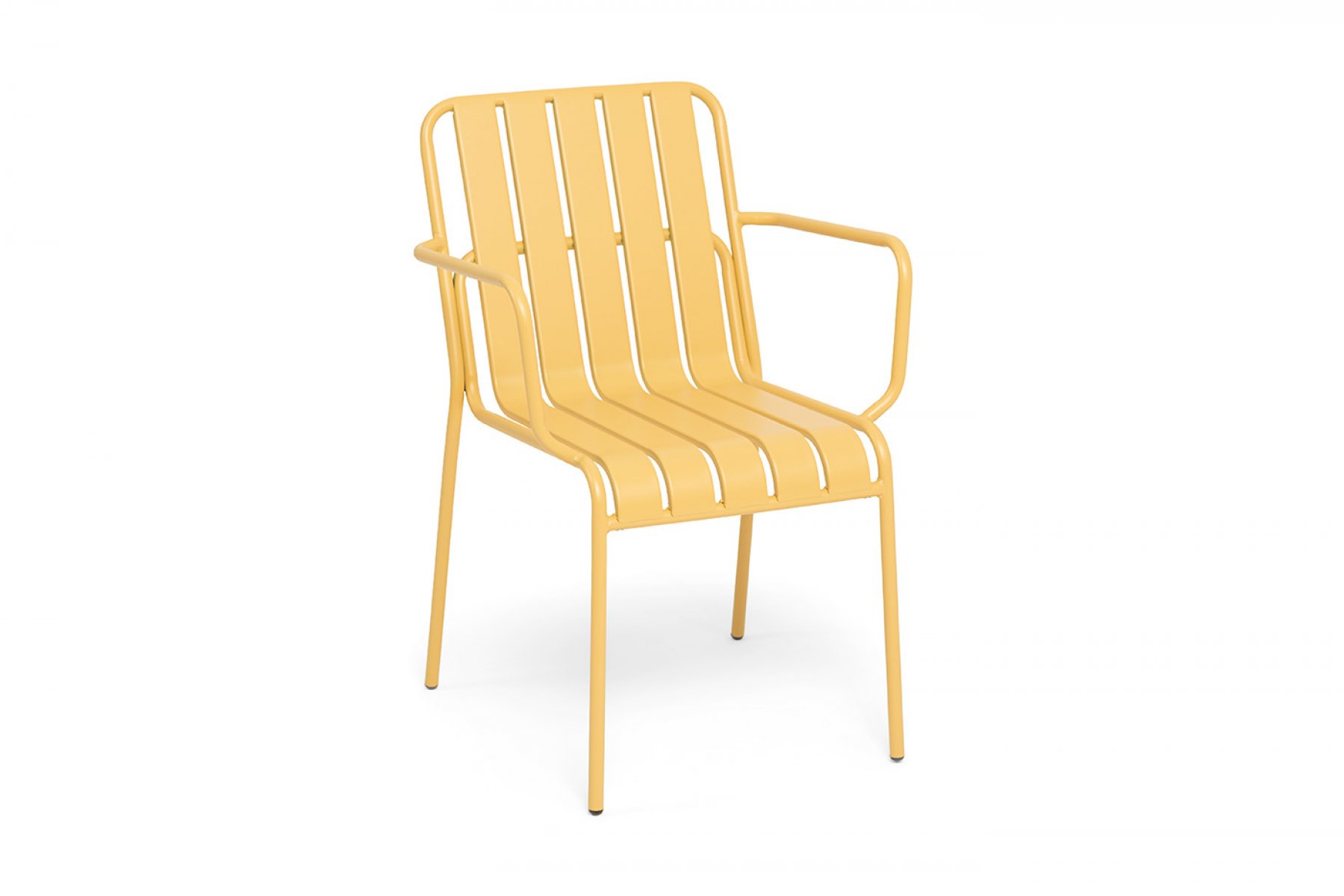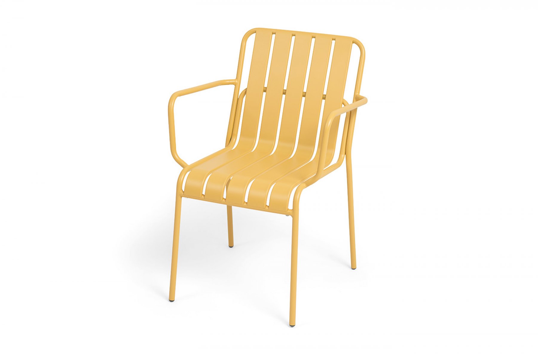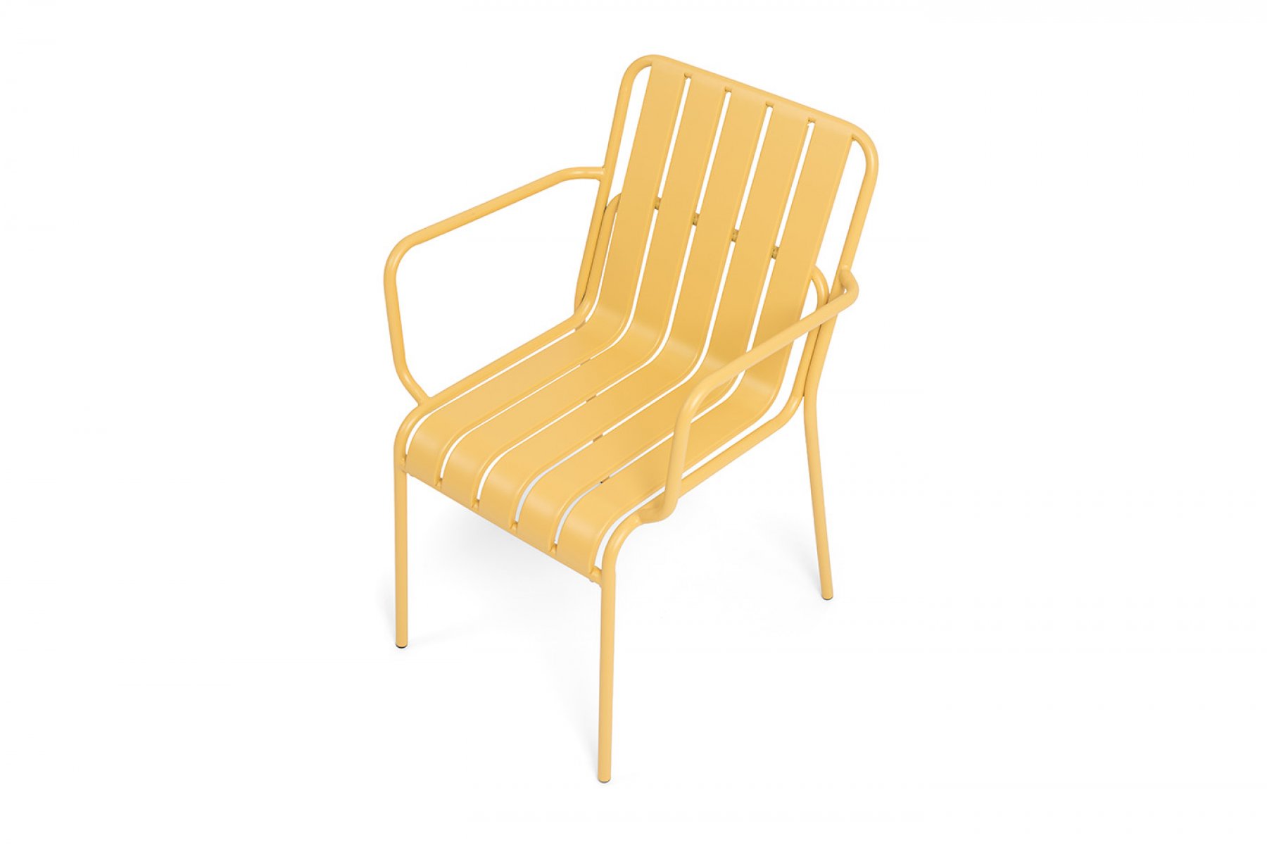Стул стальной желтого цвета «Гелиос» — идеальное решение для улицы, веранды или террасы. Его яркий оттенок не только привлекает внимание, но и создает атмосферу уюта и радости в любом открытом пространстве.