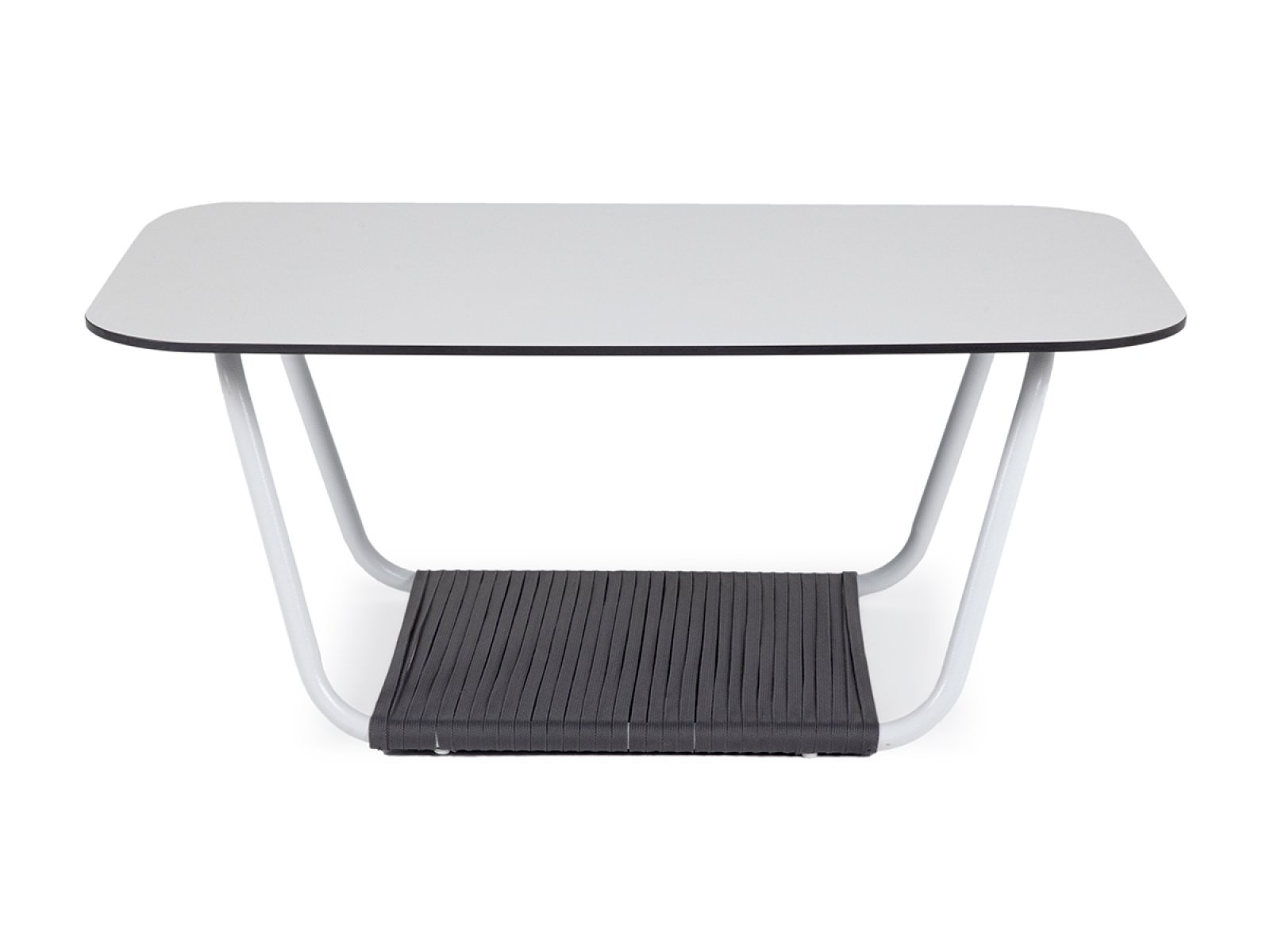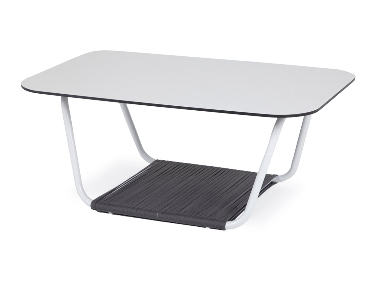 "Гранада" журнальный стол 90х60см из HPL, цвет "молочный", каркас белый муар, роуп темно-серый круглый