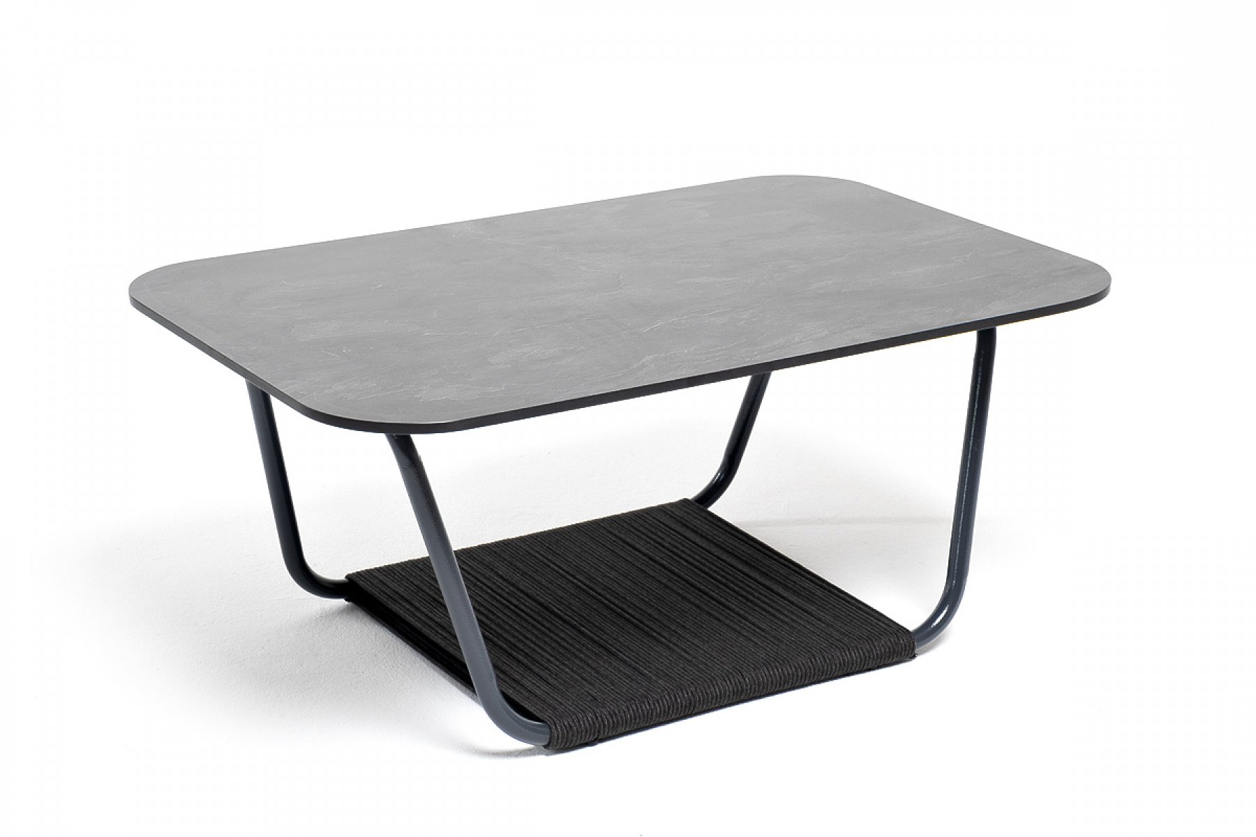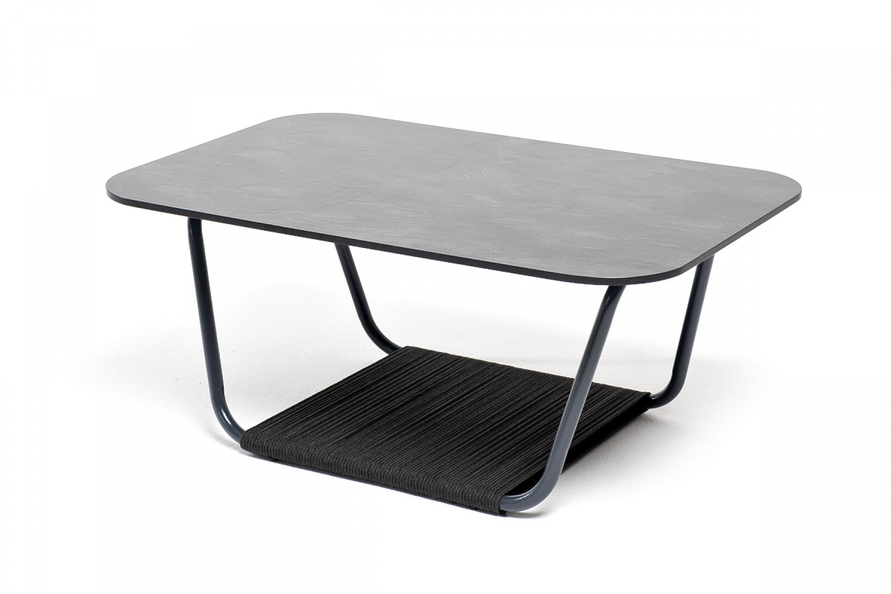 "Гранада" журнальный стол 90х60см из HPL, цвет "серый гранит", каркас темно-серый (RAL7024) муар, роуп темно-серый круглый