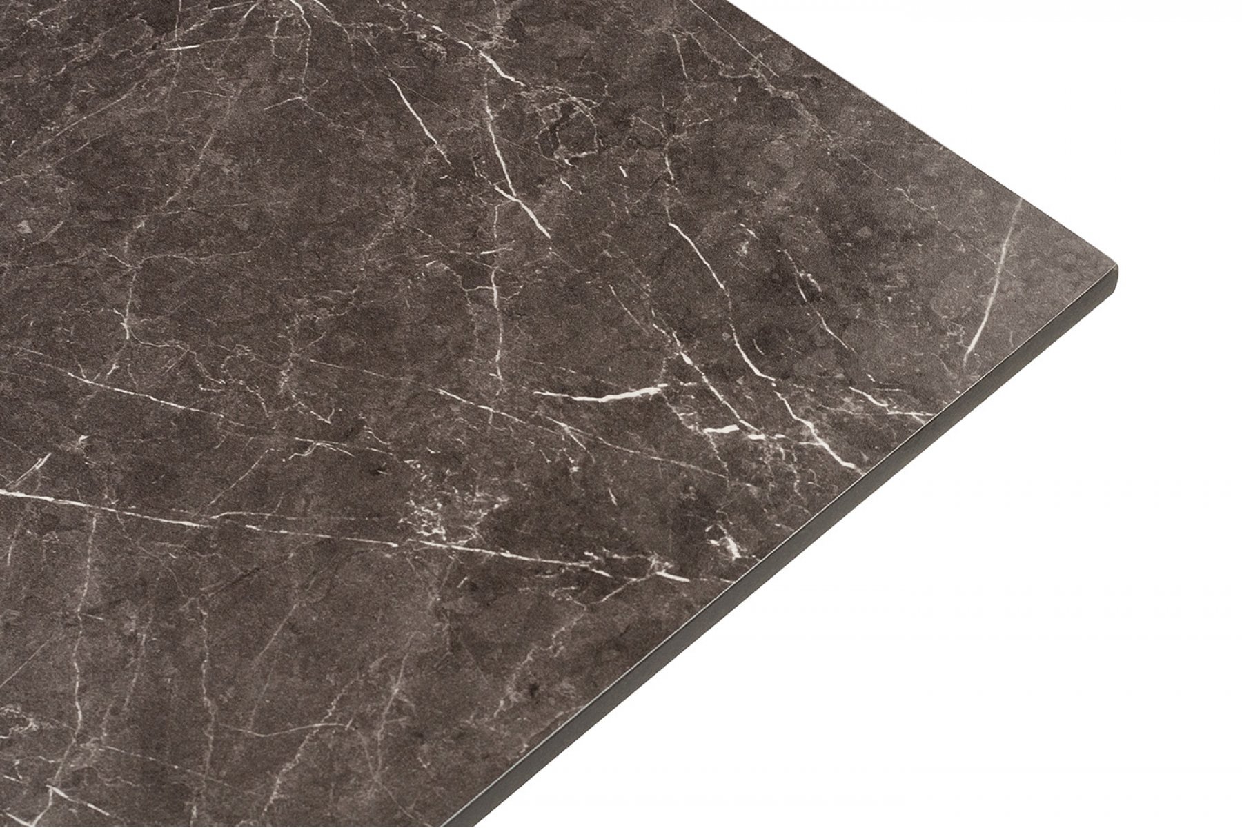 Квадратный стол «Каффе» со столешницей из HPL в цвете «серый мрамор». Это высококачественный ударопрочный компакт-пластик, обладающий низкой пористостью, что предотвращает впитывание жидкостей, поэтому столы из HPL идеально подходит для обеденных зон. Толщина столешницы – 12 мм.