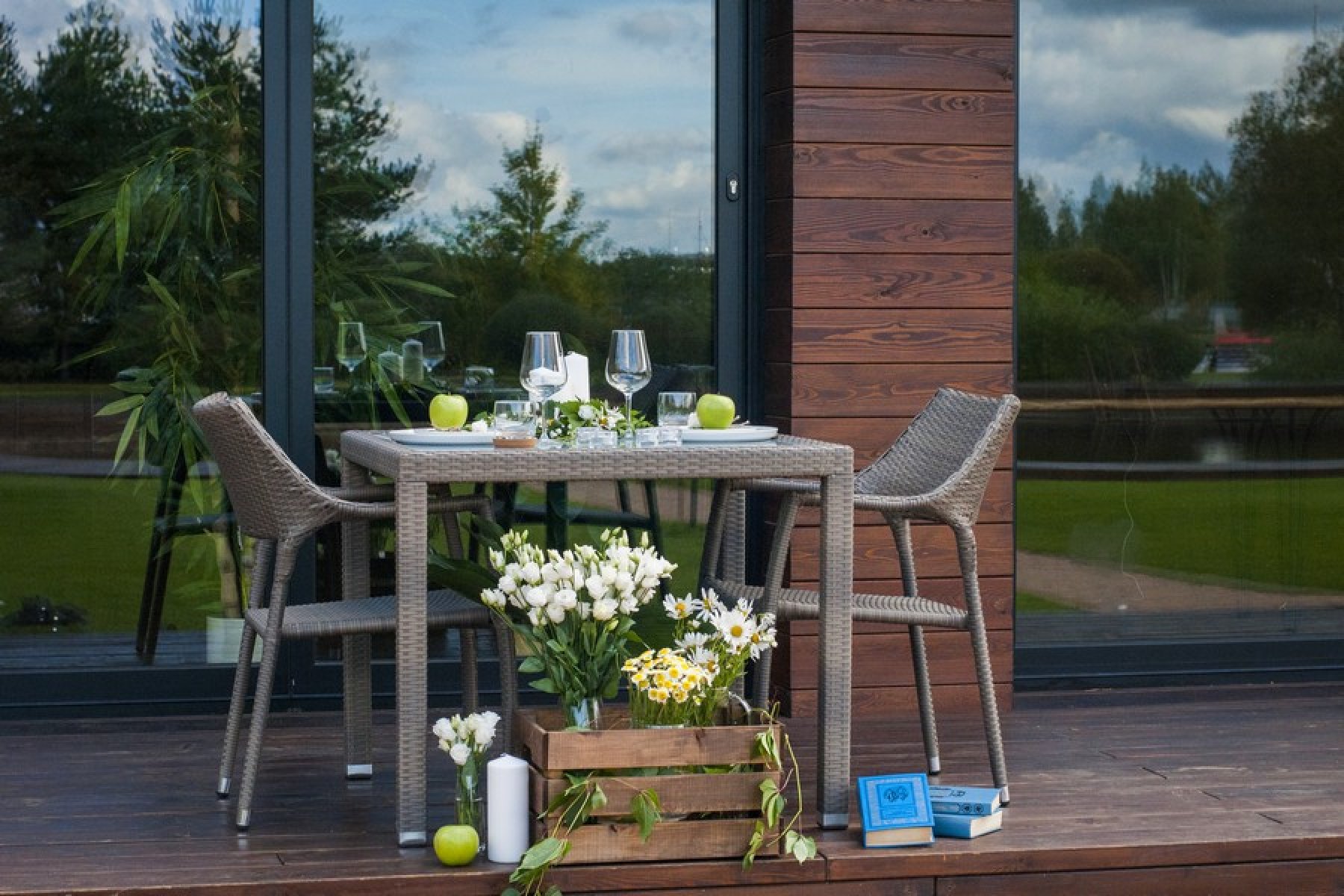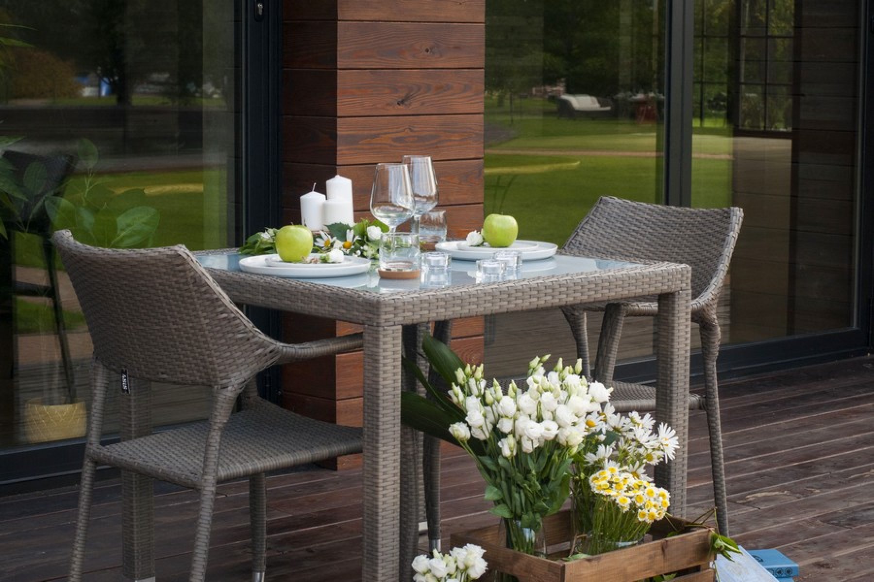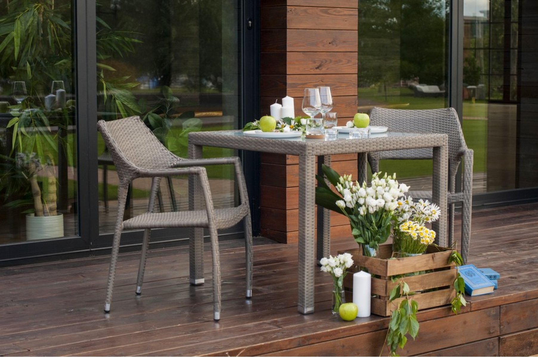 - Подушки выполнены из водостойкой полиэфирной ткани для защиты мебели от дождя и солнца
