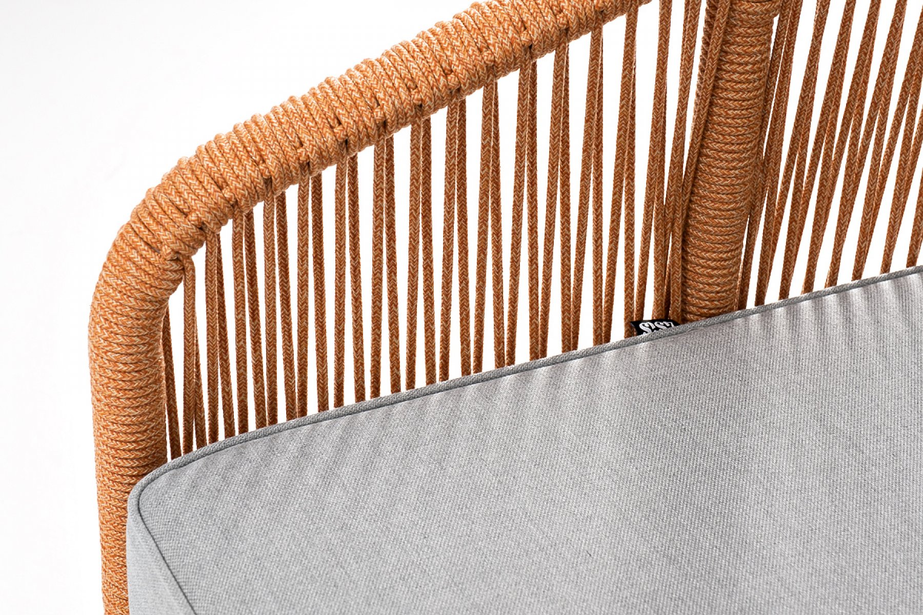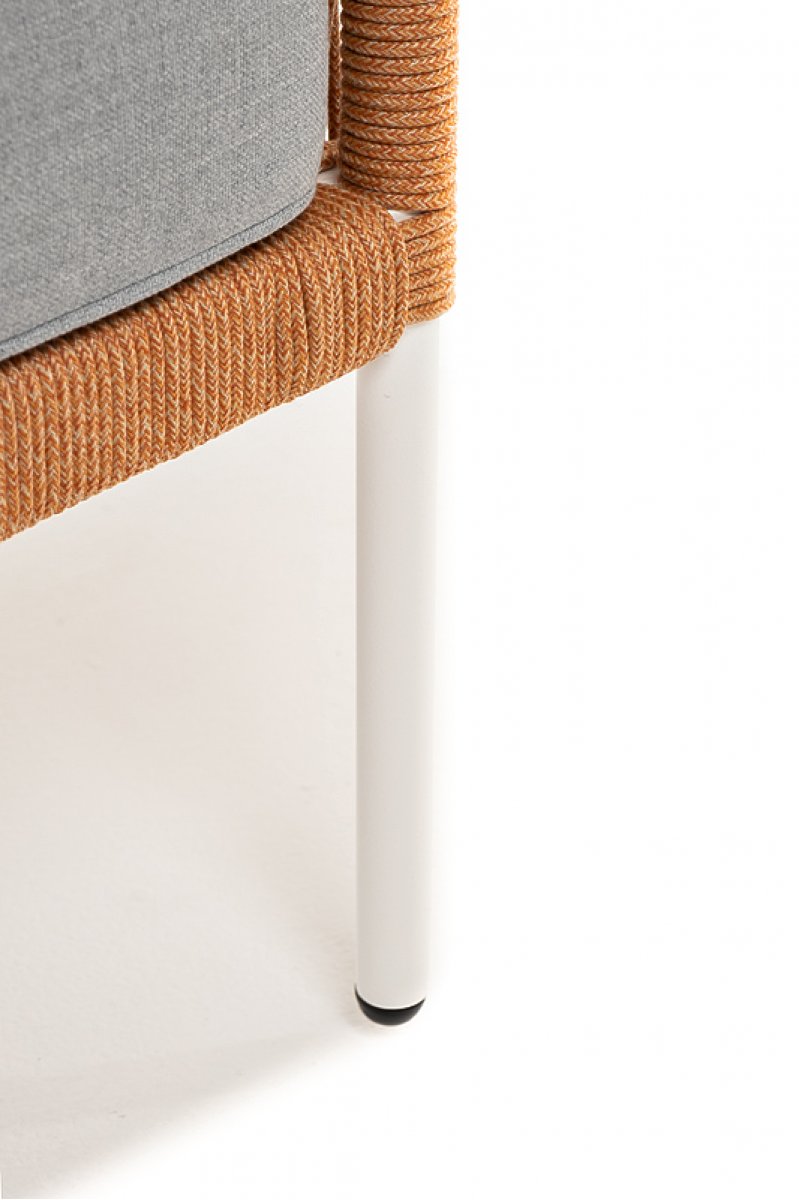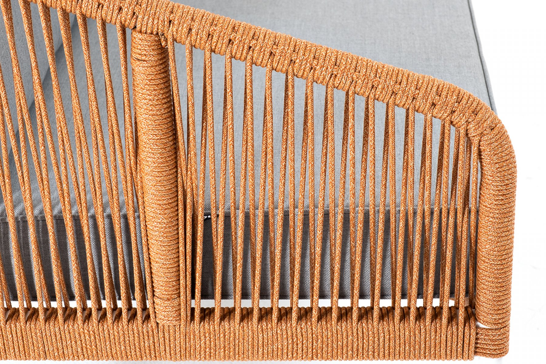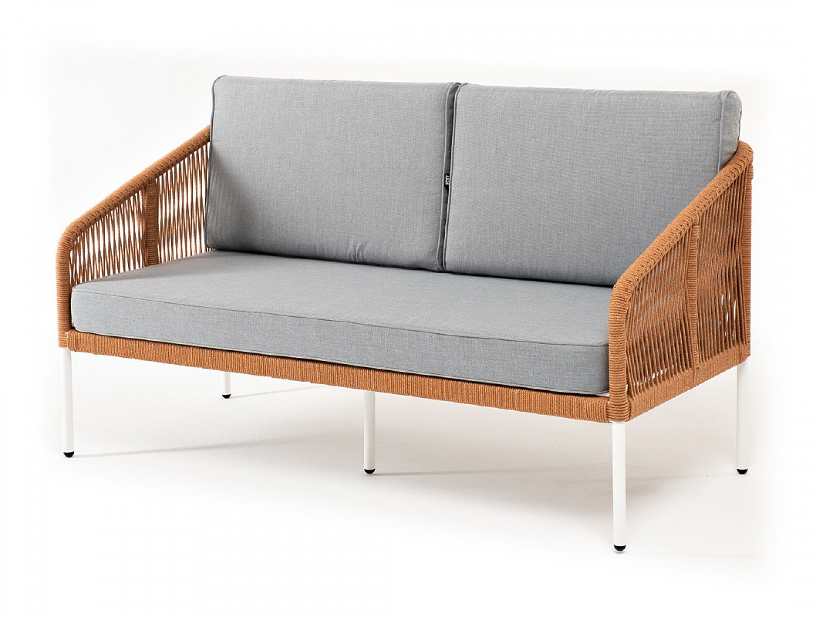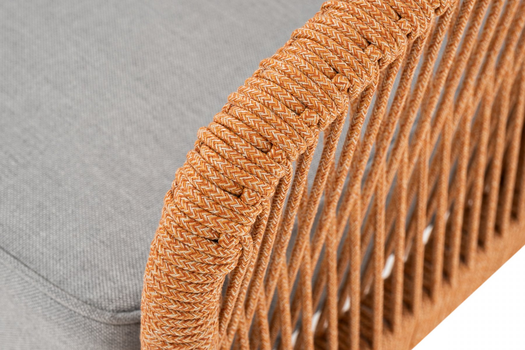 "Канны" диван 2-местный плетеный из роупа, каркас алюминий светло-серый (RAL7035) муар, роуп оранжевый меланж круглый, ткань светло-серая