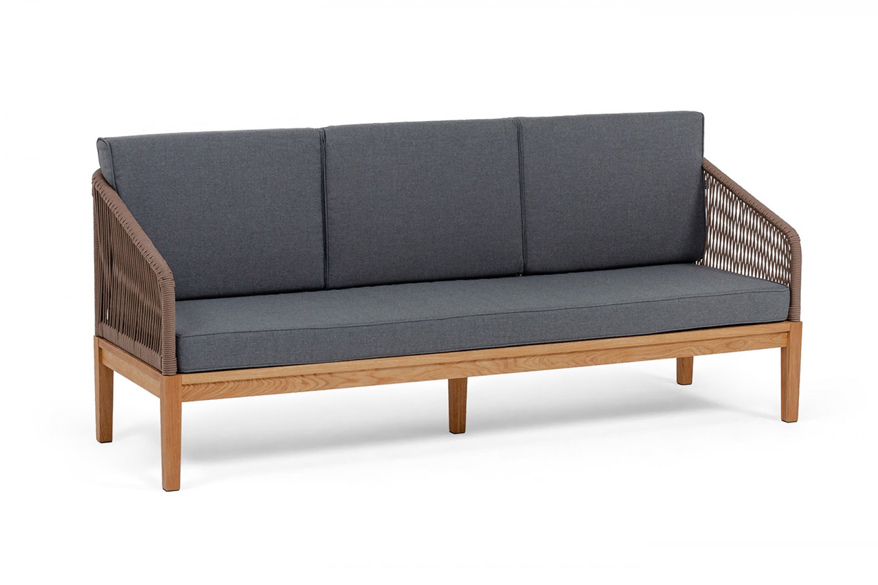 Трехместный диван «Канны» - отличный выбор для создания уютной атмосферы на террасе, в саду или на веранде. Выполнен из круглого роупа (эластичные ленты) в коричневом цвете, который придает ему роскошный вид.