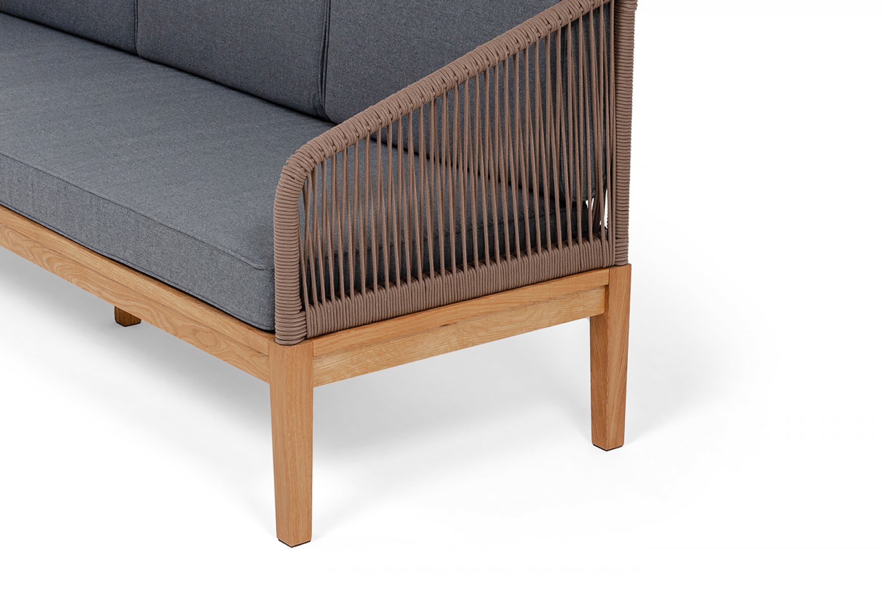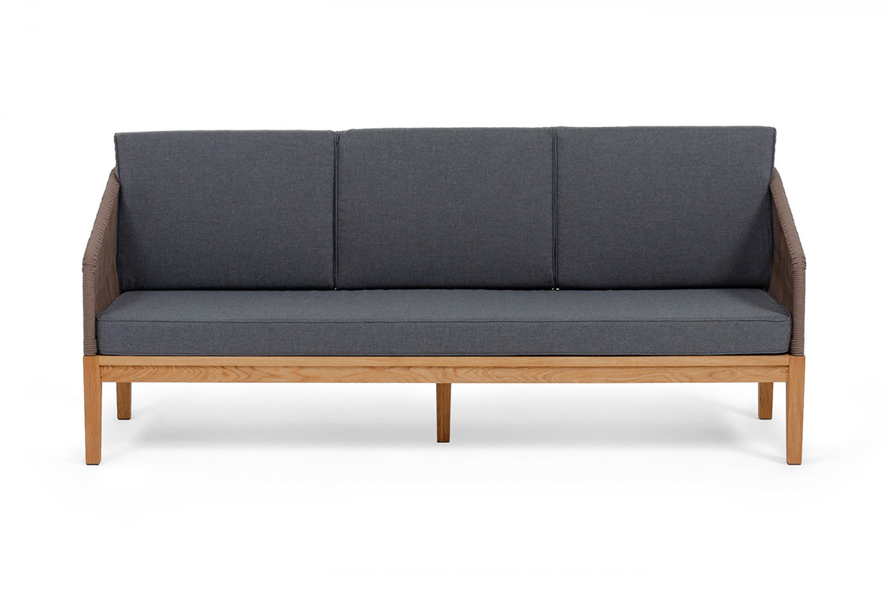 "Канны" диван 3-местный плетеный из роупа, основание дуб, роуп коричневый круглый, ткань темно-серая 027
