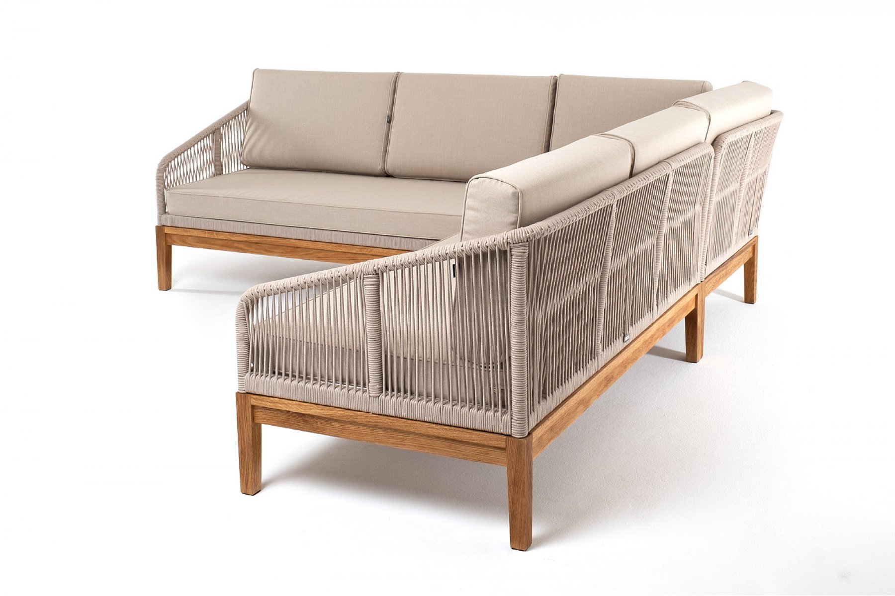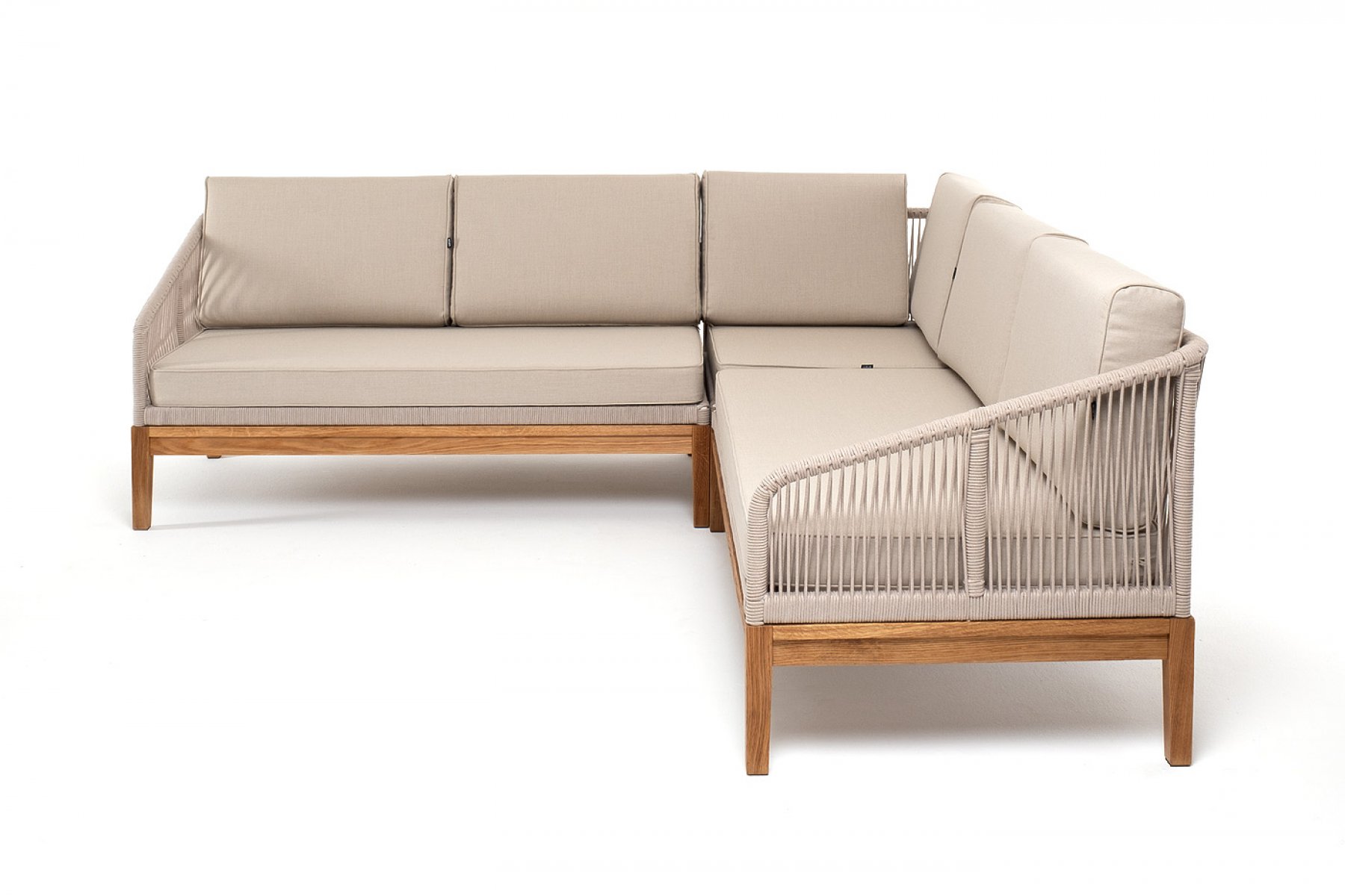 "Канны" диван модульный плетеный из роупа, основание дуб, роуп бежевый круглый, ткань бежевая 15052