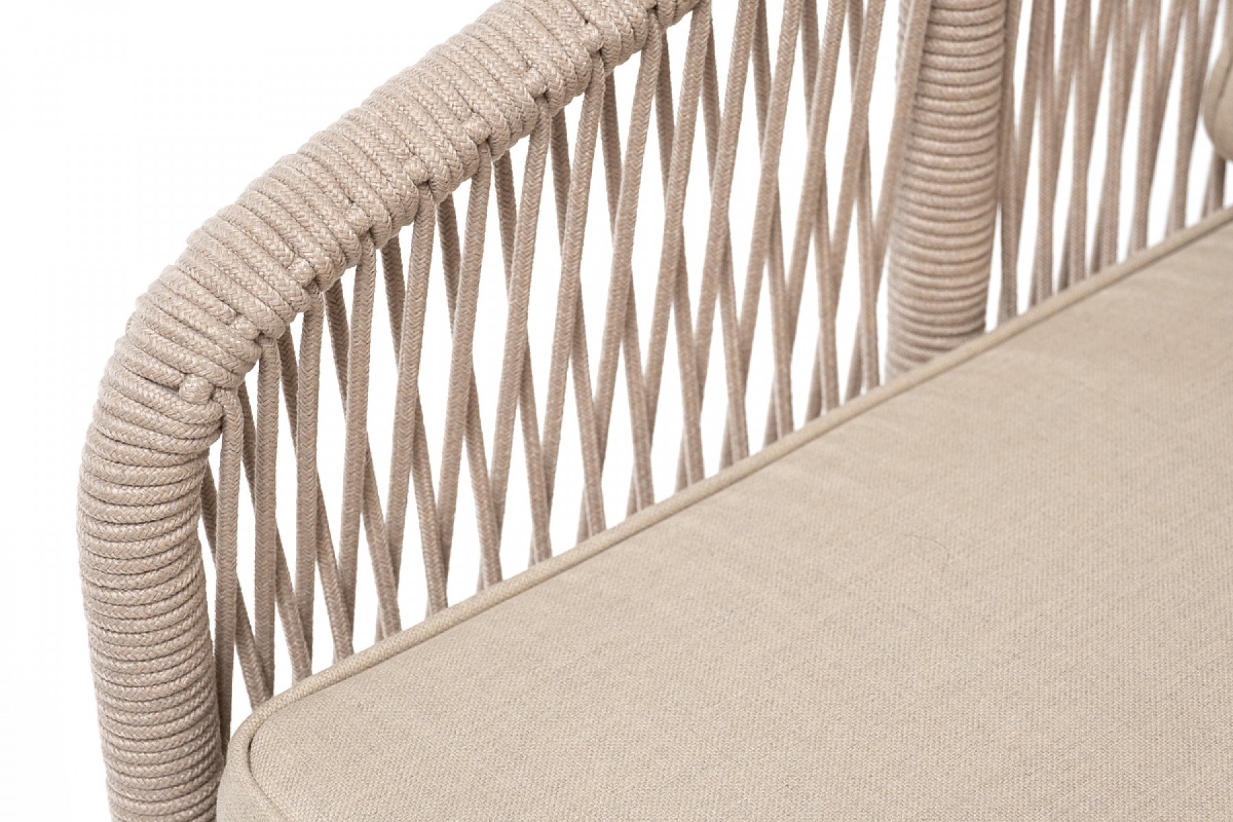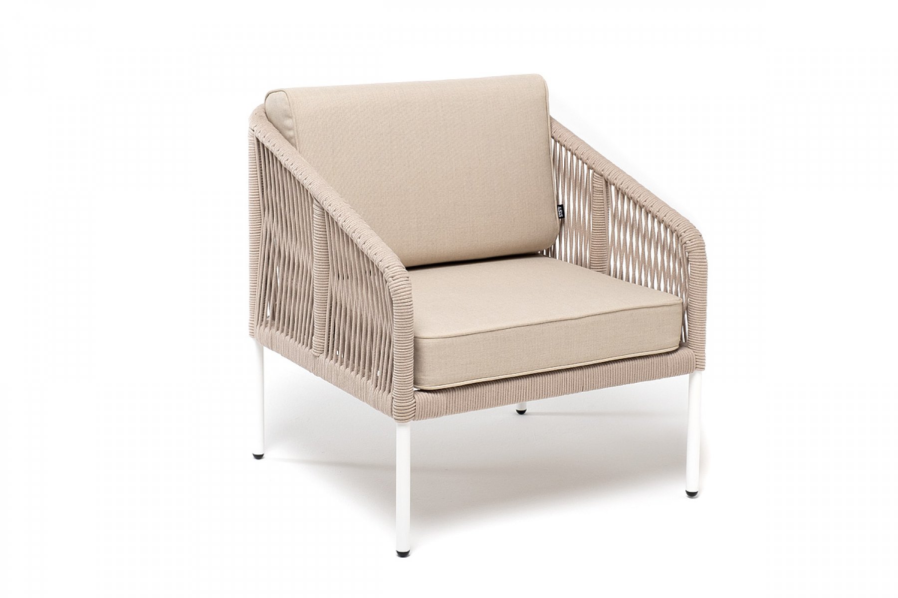 "Канны" кресло плетеное из роупа, каркас алюминий белый, муар, роуп бежевый круглый, ткань бежевая 052