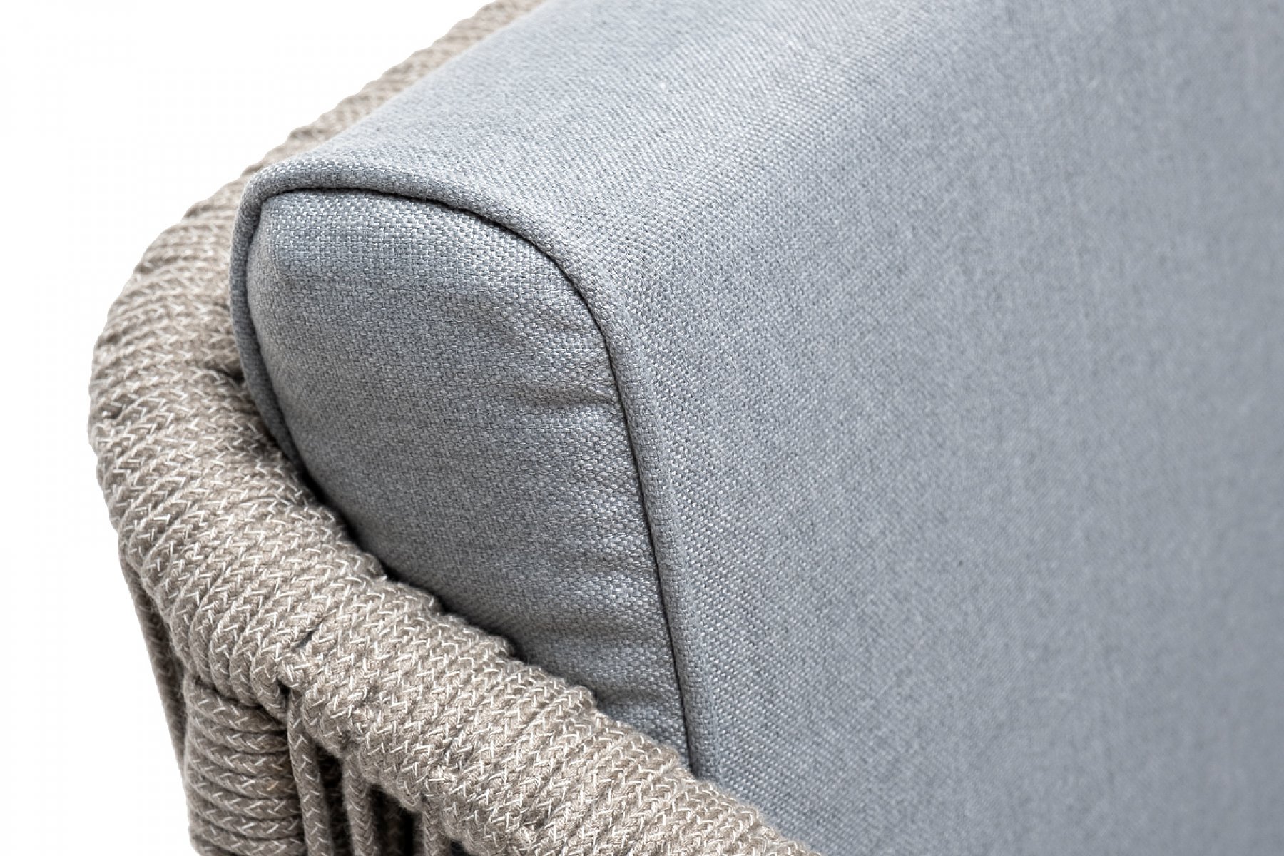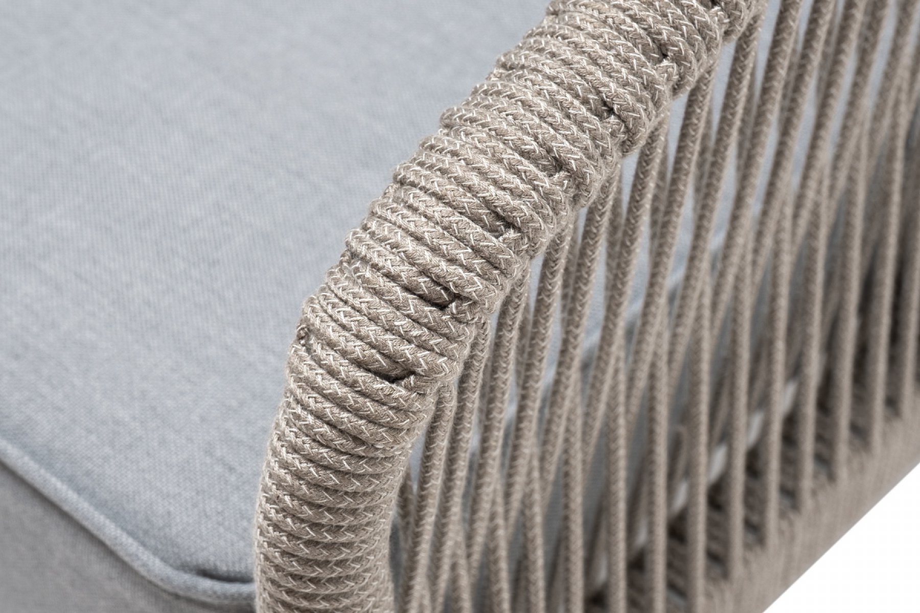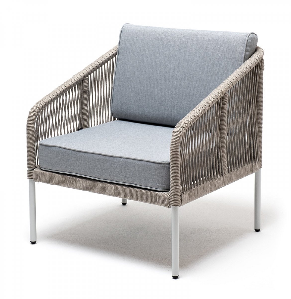 "Канны" кресло плетеное из роупа, каркас алюминий светло-серый (RAL7035) муар, роуп серый меланж круглый, ткань светло-серая