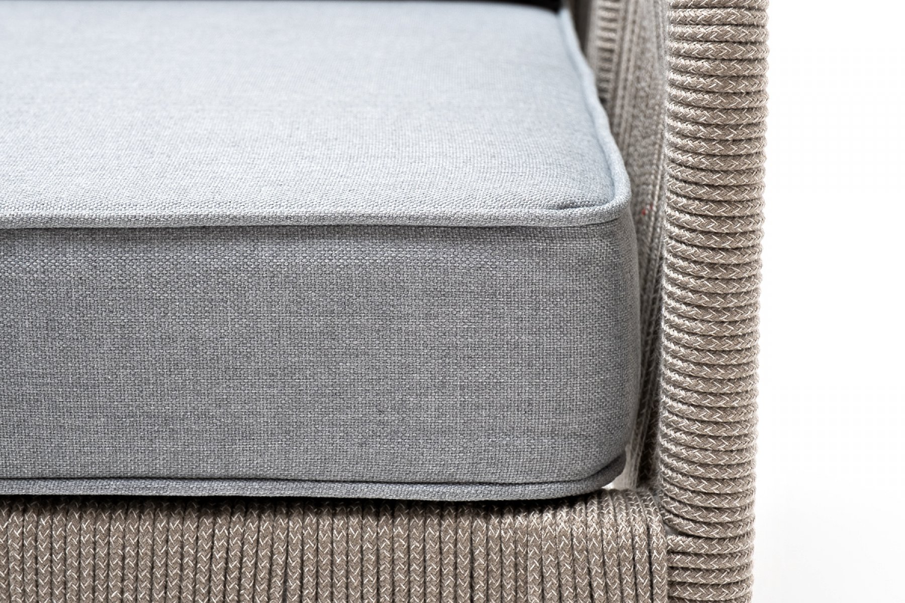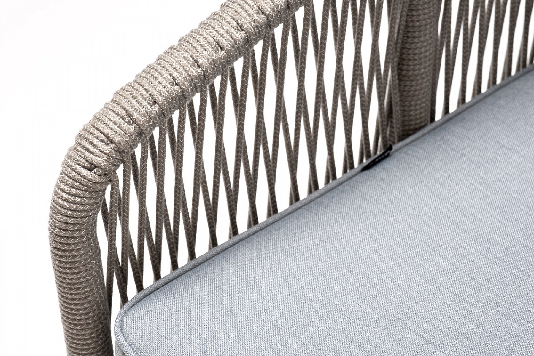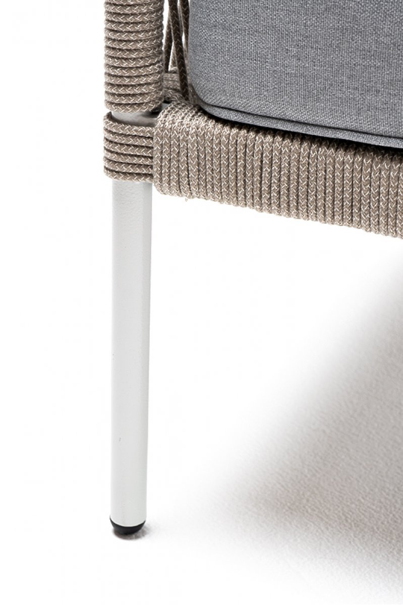 "Канны" кресло плетеное из роупа, каркас алюминий светло-серый (RAL7035) муар, роуп серый меланж круглый, ткань светло-серая