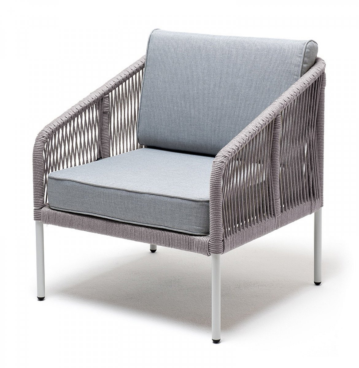 "Канны" кресло плетеное из роупа, каркас алюминий светло-серый (RAL7035) муар, роуп светло-серый круглый, ткань светло-серая