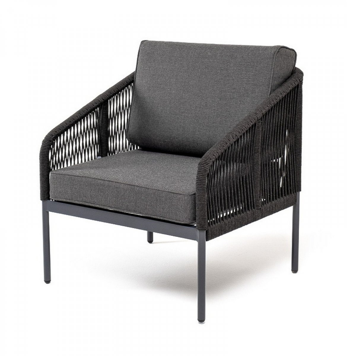 "Канны" кресло плетеное из роупа, каркас алюминий темно-серый (RAL7024) муар, роуп темно-серый круглый, ткань темно-серая 027, высота посадки